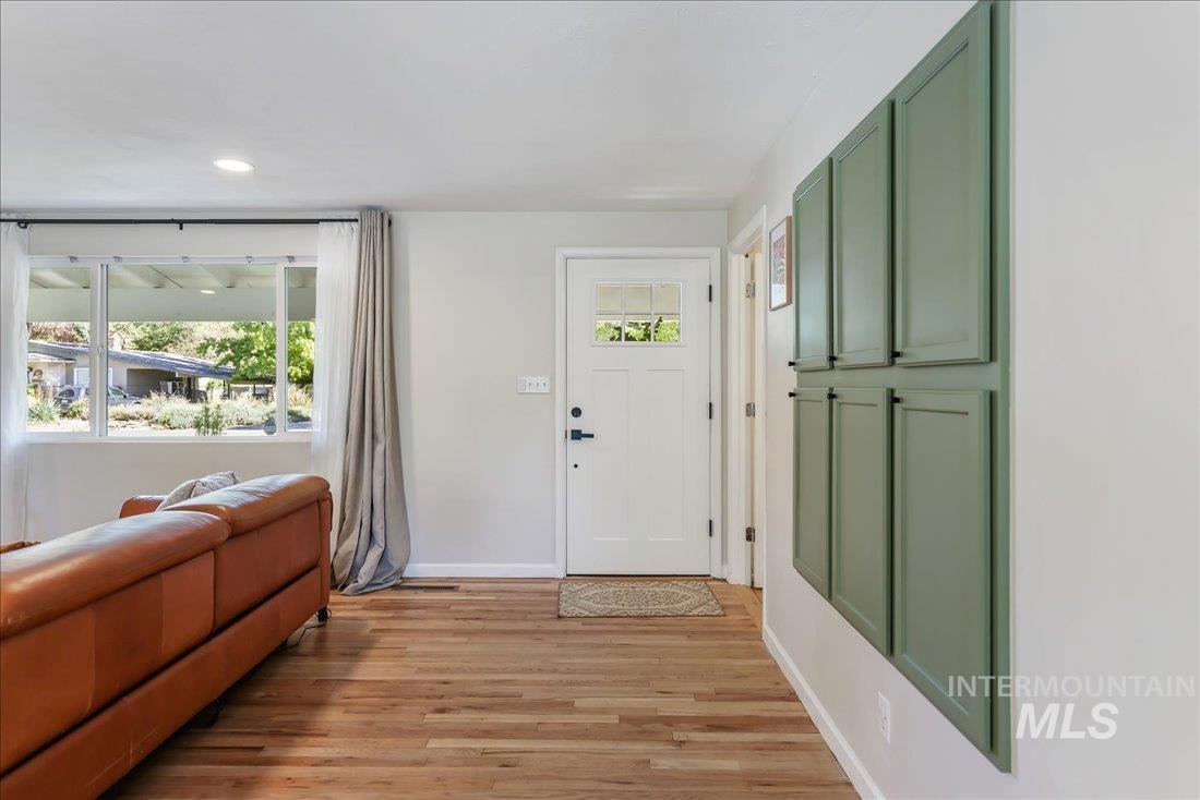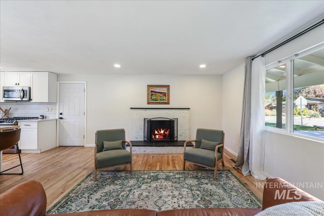 CHARMING & RENOVATED HOME + SPECTACULAR NEIGHBORHOOD! This beautiful home checks all the boxes: Close-in, nearby schools & parks, sparkling new Kitchen & Baths, upgraded systems, & a lot of heart & soul! Featuring refinished original, solid oak hardwood floors, Quartz + Stainless + White Shaker Kitchen in an large, open concept Great Room; new exterior doors (+ new garage door & opener); new HVAC (both furnace & A/C) & water heater; new windows. The bonus 2 bedrooms + a large family room in the basement all have plush new carpet & top of the line pad. New Pex plumbing lines (+ room to add shower stall in basement bath). The private yard has a brand new, concrete patio. Interested in homesteading & gardening? This place is ready: a massive, custom built Chicken Coop (incl. 6 chickens if you want), a Greenhouse, multiple raised garden beds, landscape curbing, gravel/rock, cut flower garden, perennials, RV Parking & more. You`re only 2-minutes walk to both Mountain View Park & school. Local amenities & a great coffee bar are in the neighborhood. Downtown Boise, I-84, & The Village are each only 10 minutes away! The Boise River, Greenbelt, & Garden City events are even closer! No HOA. This meticulous home & its coveted, secret neighborhood are both rare finds!