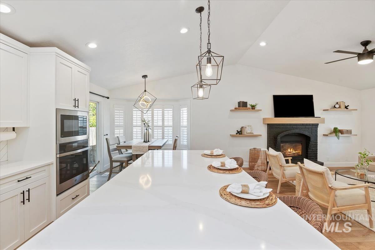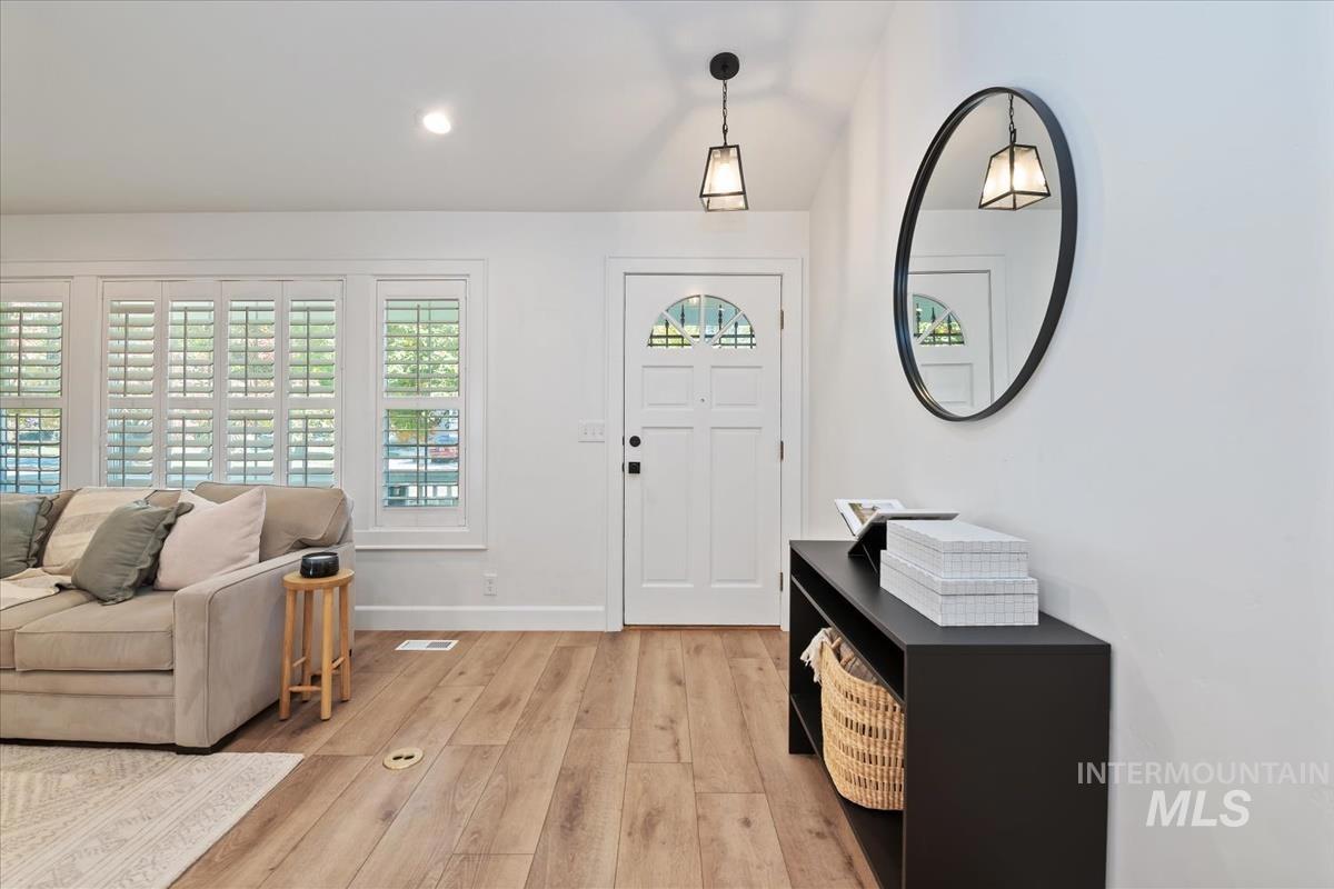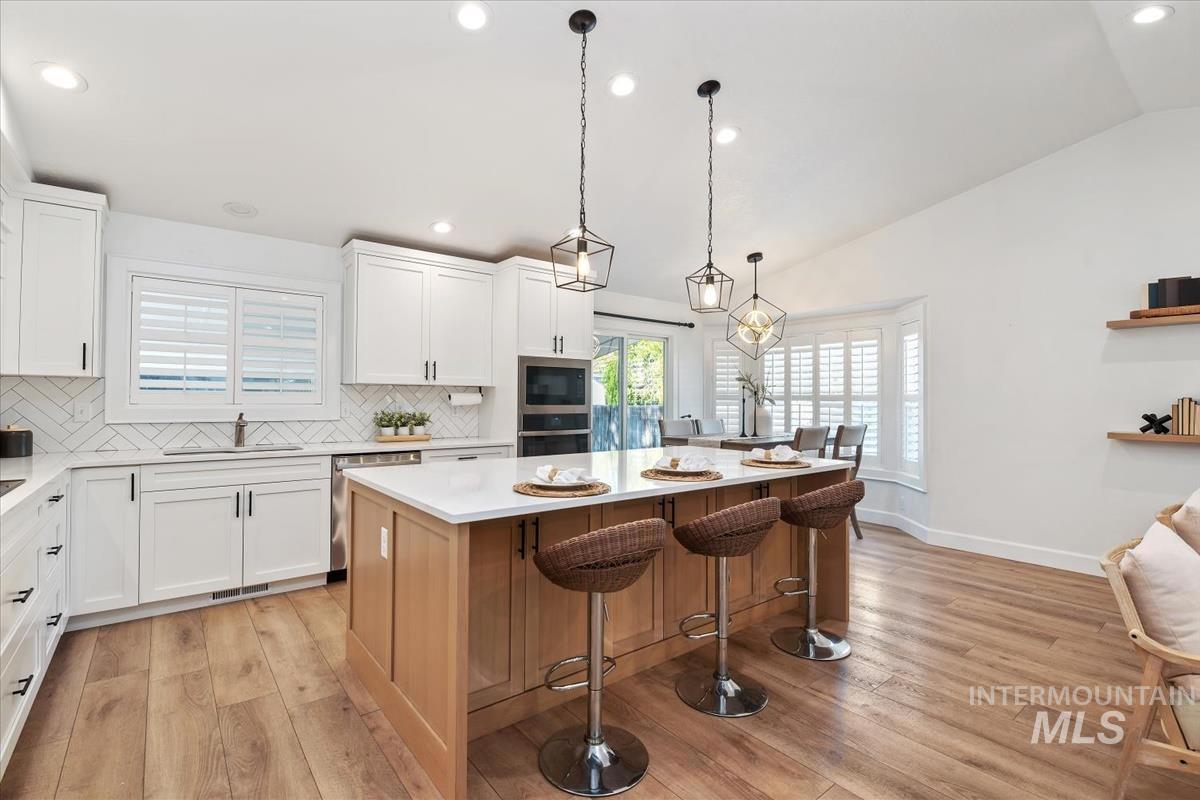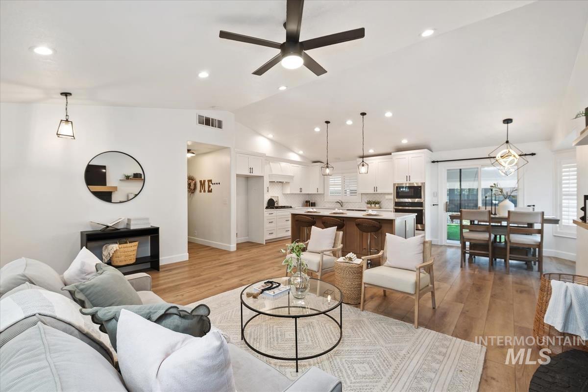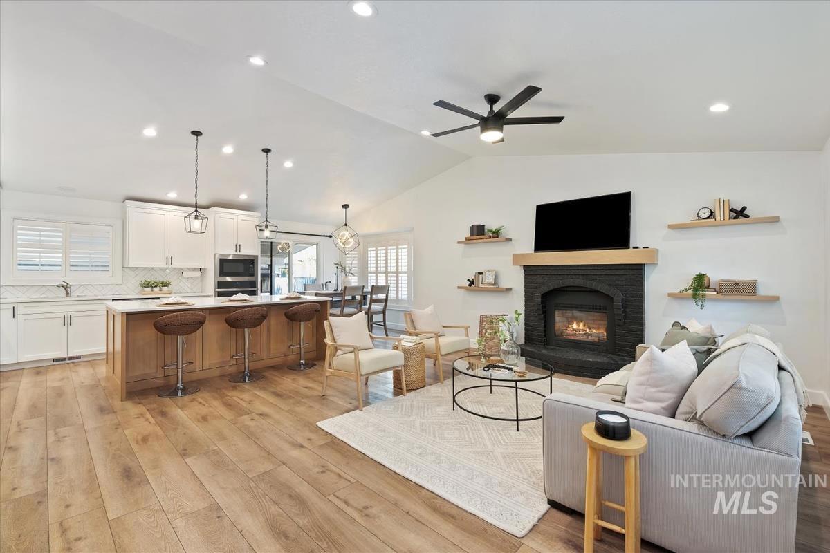 Welcome to this beautifully renovated single-level home in a highly desirable central Boise location. Step inside to an inviting great room with vaulted ceilings and a cozy fireplace, perfect for relaxing or entertaining. A spacious dining area, while the updated kitchen features a large island, new quartz counters, stainless steel appliances, new cabinetry, ample workspace, and a breakfast bar. Throughout the home, you’ll find plantation shutters, new LVP flooring, fresh paint, updated fixtures, and beautifully remodeled bathrooms with quartz countertops. The primary suite includes room for a sitting area, a large walk-in closet, and a private ensuite bath. Enjoy outdoor living in the lush backyard with mature landscaping, electric patio shades, and an insulated shed with drywall, paint, and power. Major updates include new HVAC, furnace, roof, and sprinkler system (2021). A stunning home — and nothing like it in th