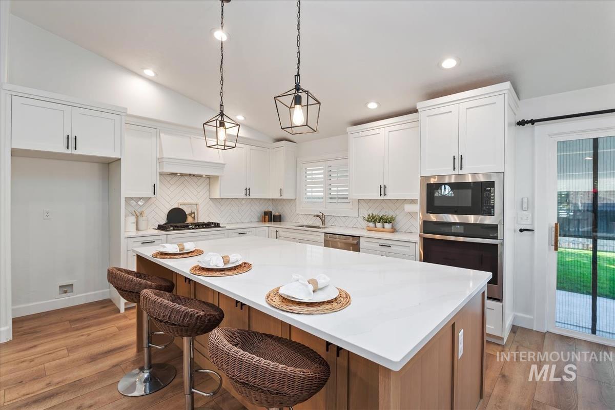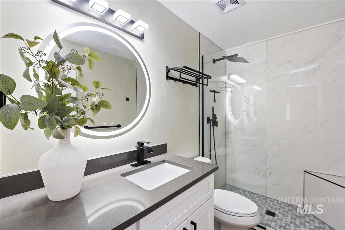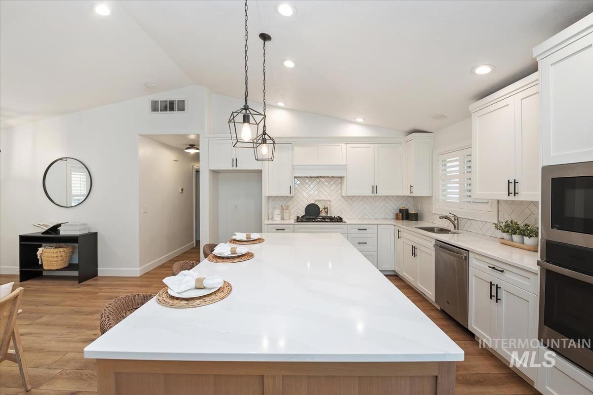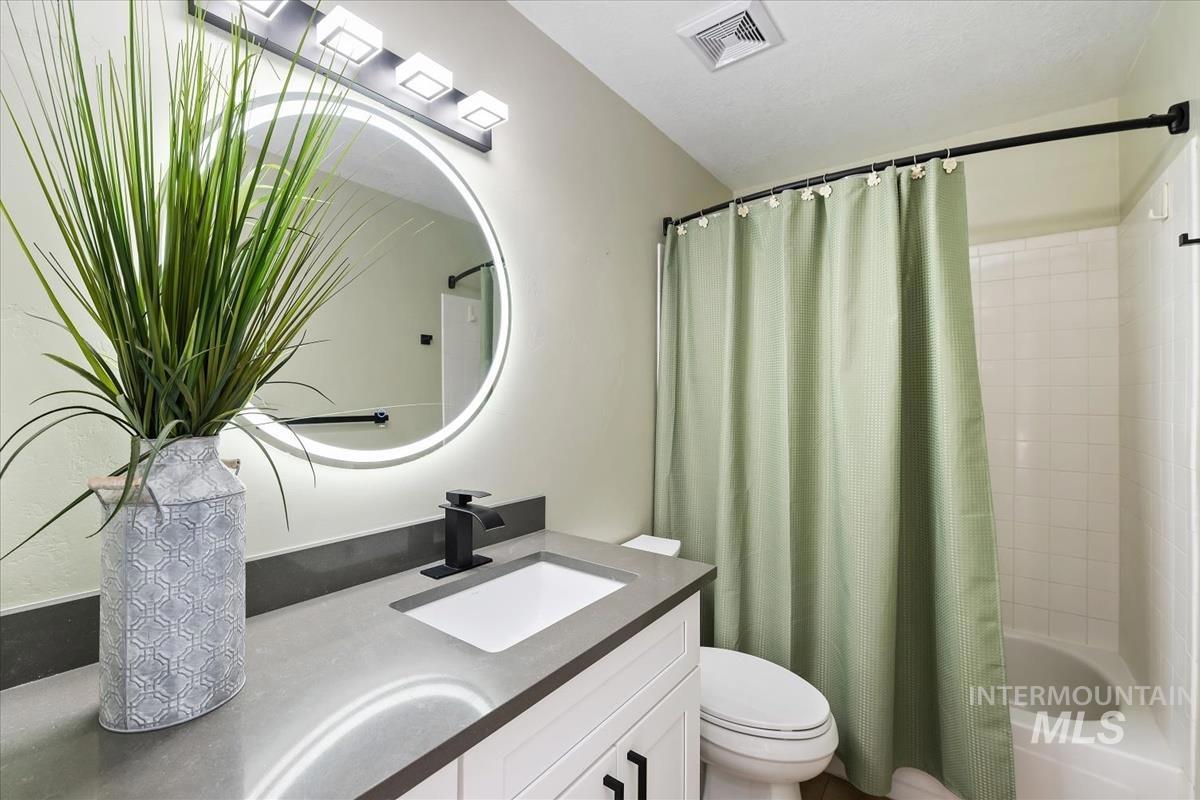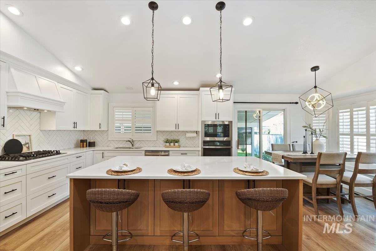 Welcome to this beautifully renovated single-level home in a highly desirable central Boise location. Step inside to an inviting great room with vaulted ceilings and a cozy fireplace, perfect for relaxing or entertaining. A spacious dining area, while the updated kitchen features a large island, new quartz counters, stainless steel appliances, new cabinetry, ample workspace, and a breakfast bar. Throughout the home, you’ll find plantation shutters, new LVP flooring, fresh paint, updated fixtures, and beautifully remodeled bathrooms with quartz countertops. The primary suite includes room for a sitting area, a large walk-in closet, and a private ensuite bath. Enjoy outdoor living in the lush backyard with mature landscaping, electric patio shades, and an insulated shed with drywall, paint, and power. Major updates include new HVAC, furnace, roof, and sprinkler system (2021). A stunning home — and nothing like it in th