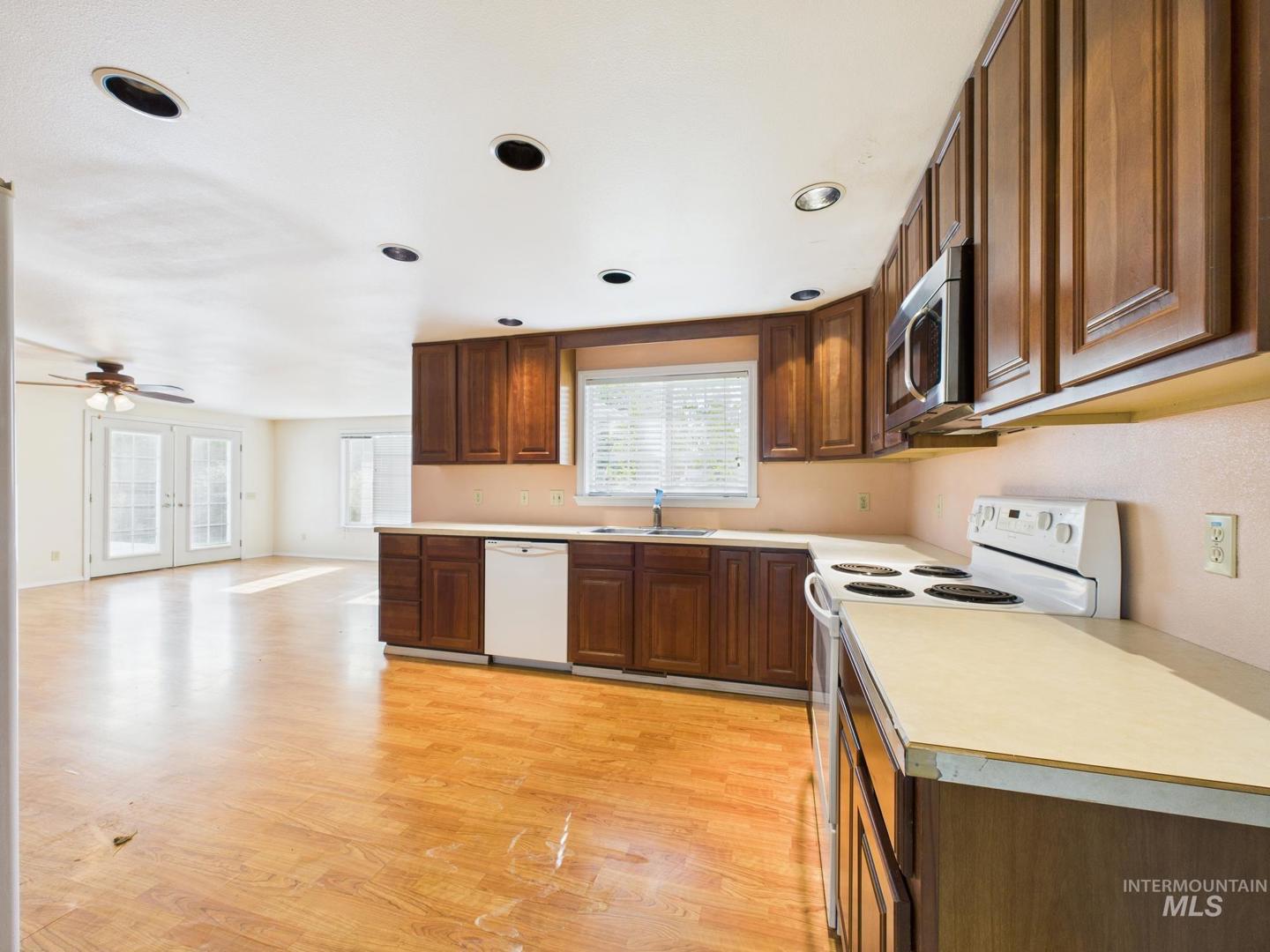 First time on the market since built in 1973. 1800 sq ft 3 bedroom 2 bath home with spacious open family room and separate living room/dining room. Vinyl windows.sonar tubes in some rooms, updated main bathroom.French doors open onto trex deck with fully landscaped backyard, including waterfall. .27 acres located in the city (100x119 lot). Chain link fully fenced yard. Oversized 2 car garage plus workshop. Covered RV pad carport on the east side of the home. 10x10 storage shed. Property is on an individual well and not connected to city water. SO much potential!! Needs some updating. Sold as is.
