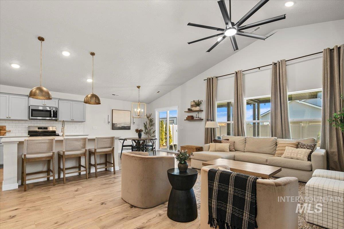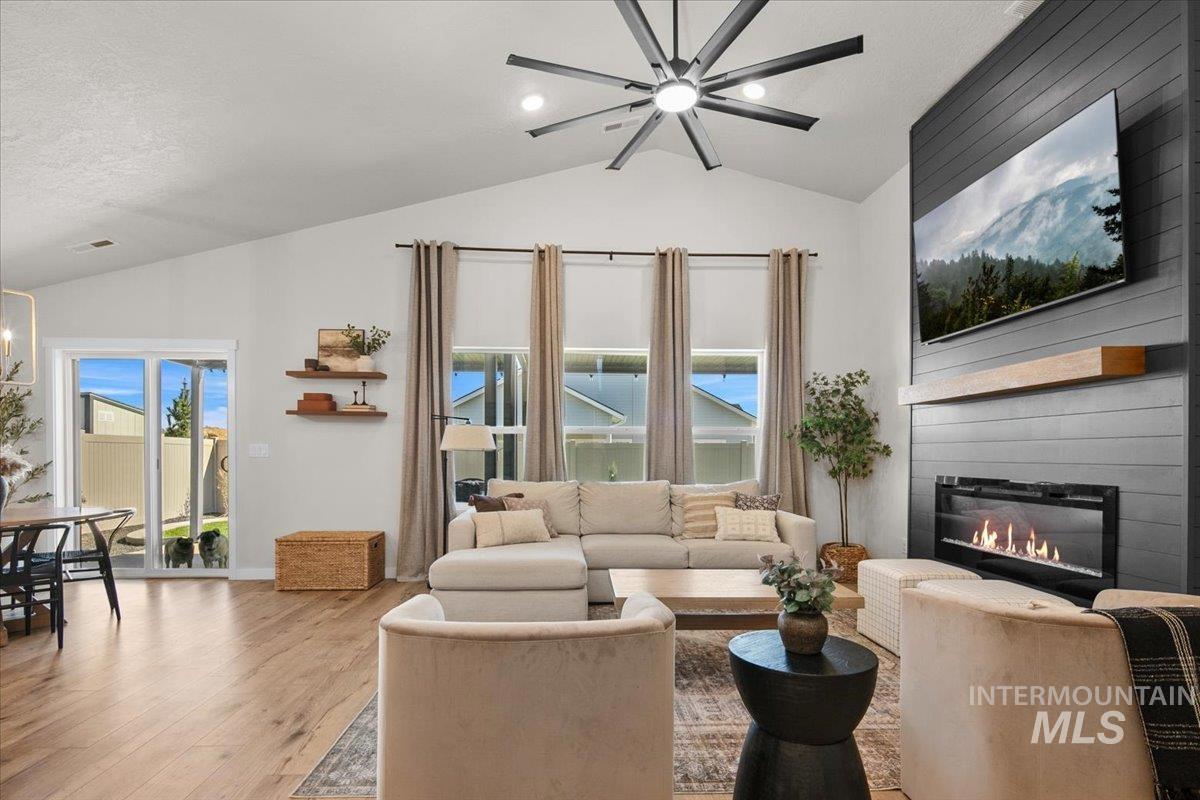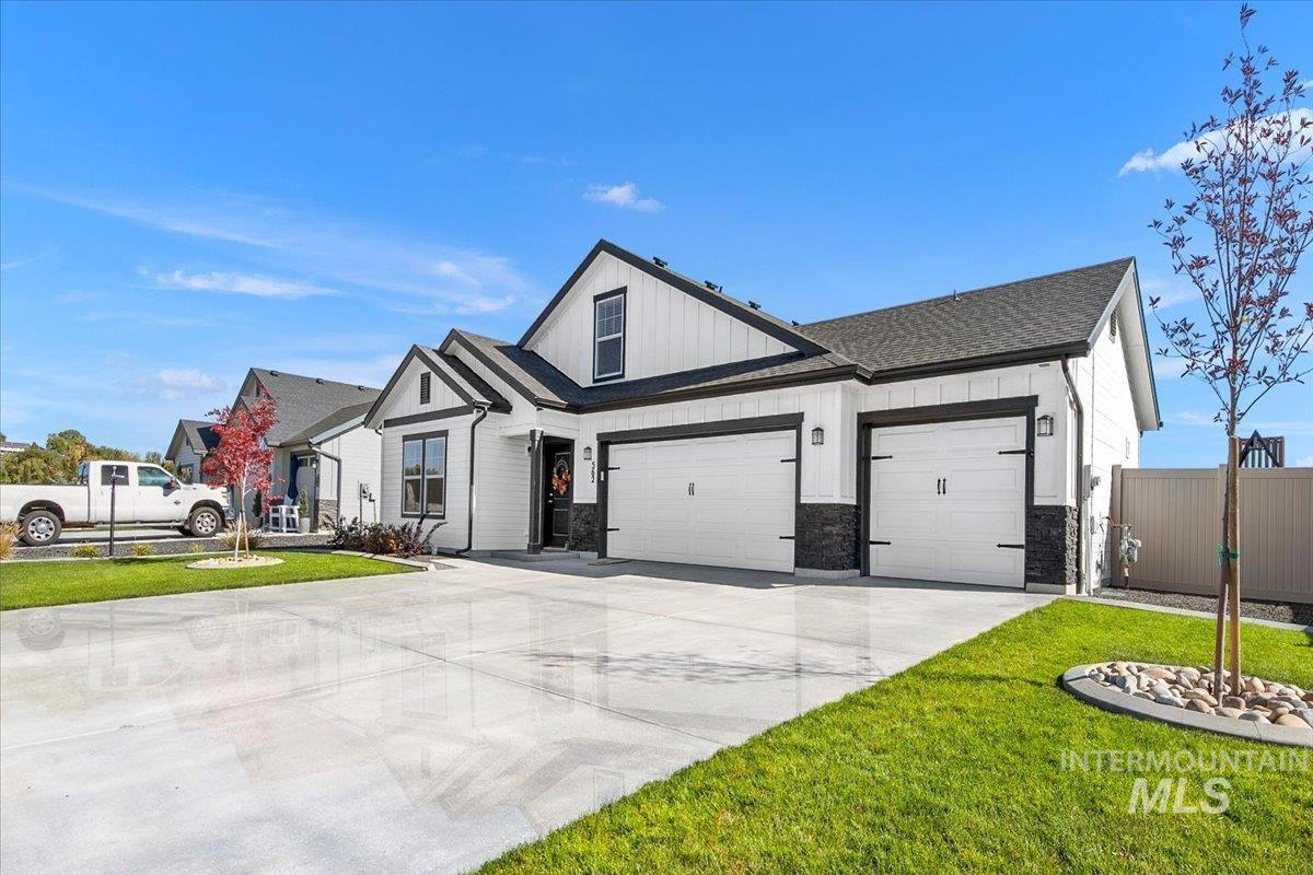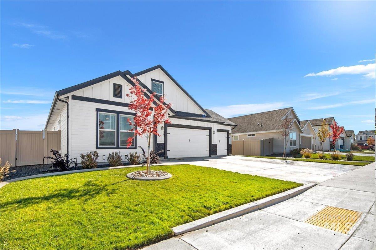 Welcome to this barely one-year-old, better-than-new home in Middleton. With 3 bedrooms, a private office, and an enclosed upstairs bonus room that can serve as a fourth bedroom or flex space. This 2,279 sq. ft. home offers modern but warm design and thoughtful function throughout. The open-concept floor plan feels bright and inviting, centered around a cozy shiplap fireplace and a spacious great room. The kitchen and dining area connect seamlessly, creating an easy flow for everyday living and entertaining. The split-bedroom layout provides privacy, with a generous primary suite set apart from the secondary bedrooms. Step outside to an extended covered patio, perfect for relaxing year-round, and enjoy the upgraded landscaping that adds beauty and curb appeal. The property also includes RV parking, ideal for storing your camper, boat, or trailer. Located in a desirable and family friendly Middleton neighborhood, this home’s location combines small-town charm with convenient access to nearby parks, schools, and downtown amenities — just minutes from the heart of the Treasure Valley.