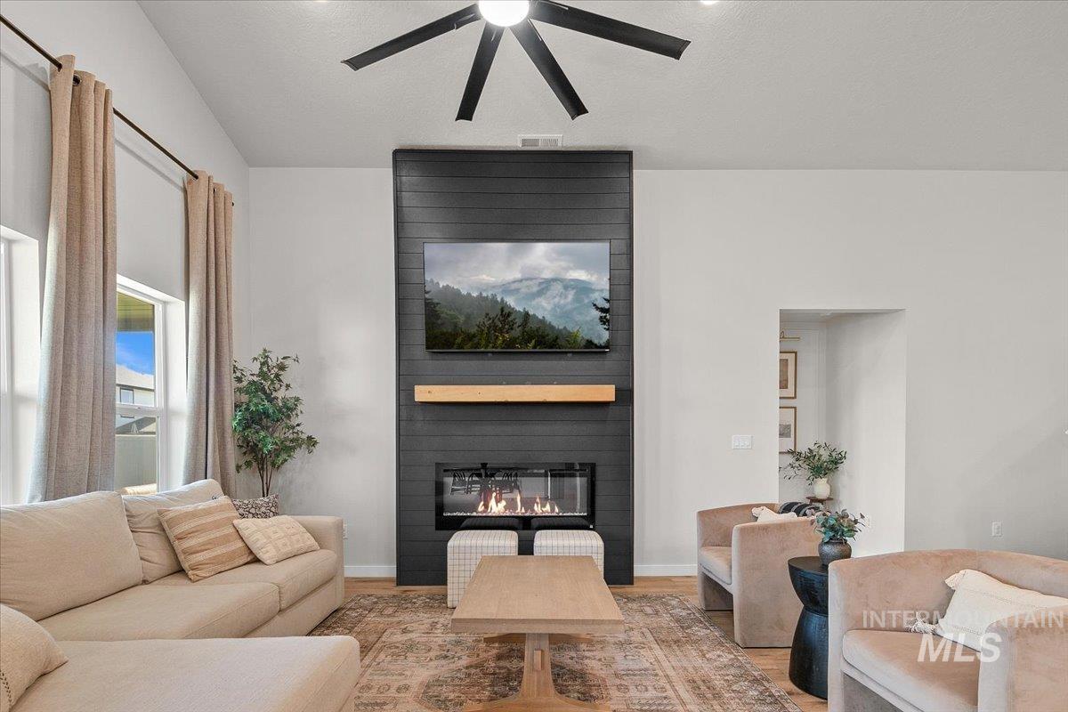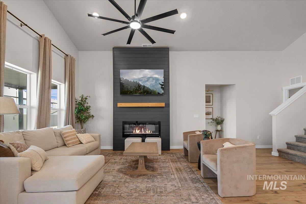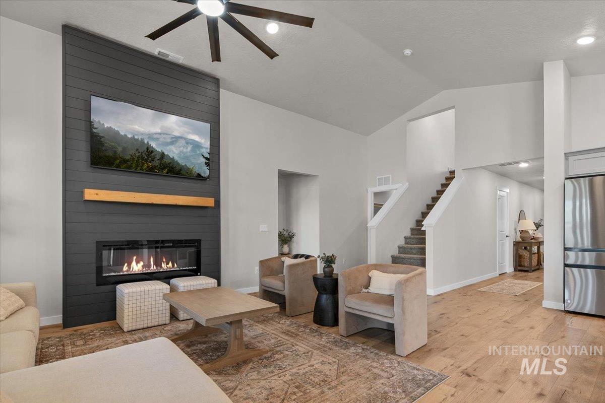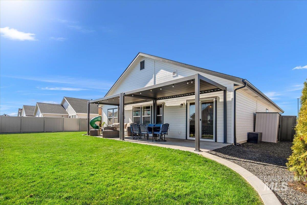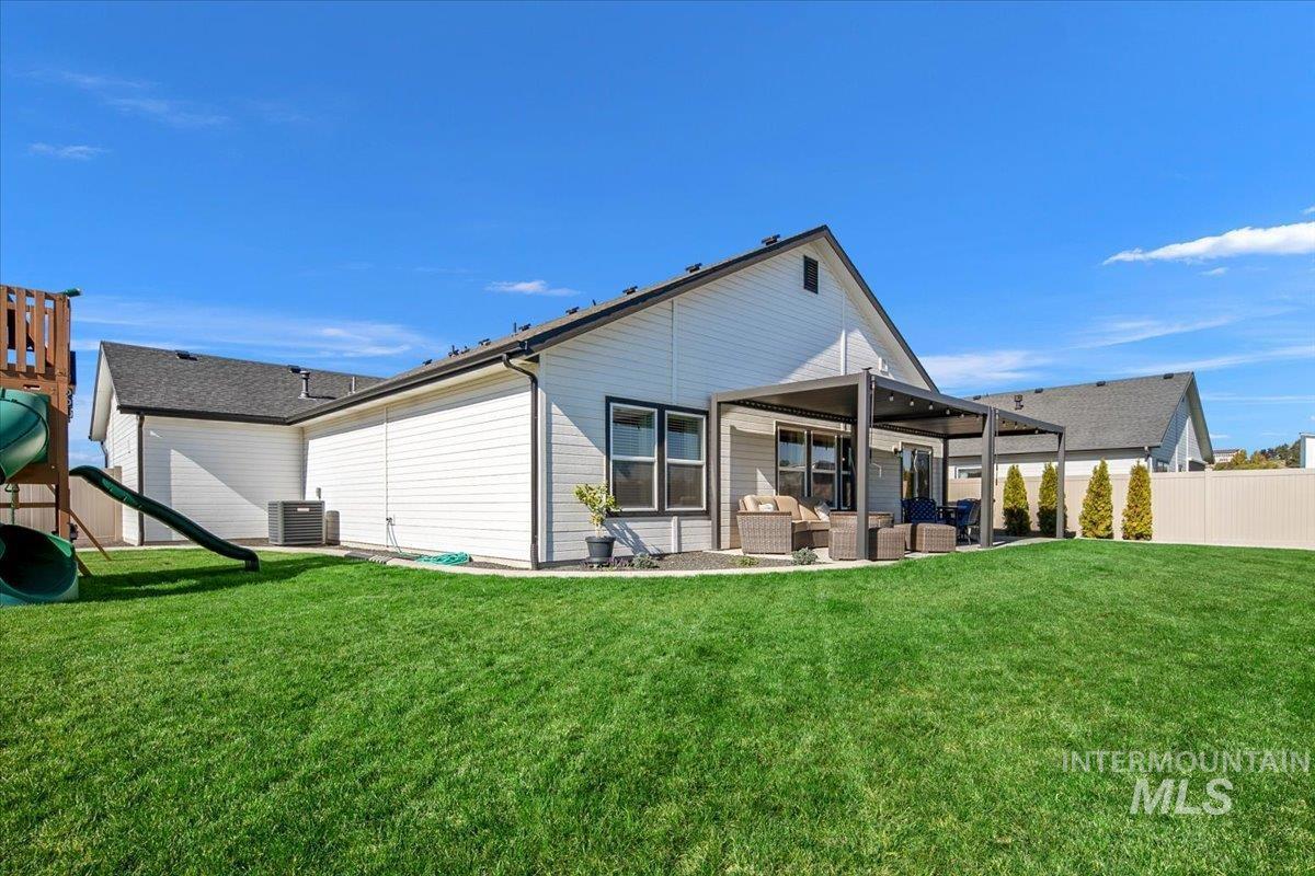 Welcome to this barely one-year-old, better-than-new home in Middleton. With 3 bedrooms, a private office, and an enclosed upstairs bonus room that can serve as a fourth bedroom or flex space. This 2,279 sq. ft. home offers modern but warm design and thoughtful function throughout. The open-concept floor plan feels bright and inviting, centered around a cozy shiplap fireplace and a spacious great room. The kitchen and dining area connect seamlessly, creating an easy flow for everyday living and entertaining. The split-bedroom layout provides privacy, with a generous primary suite set apart from the secondary bedrooms. Step outside to an extended covered patio, perfect for relaxing year-round, and enjoy the upgraded landscaping that adds beauty and curb appeal. The property also includes RV parking, ideal for storing your camper, boat, or trailer. Located in a desirable and family friendly Middleton neighborhood, this home’s location combines small-town charm with convenient access to nearby parks, schools, and downtown amenities — just minutes from the heart of the Treasure Valley.