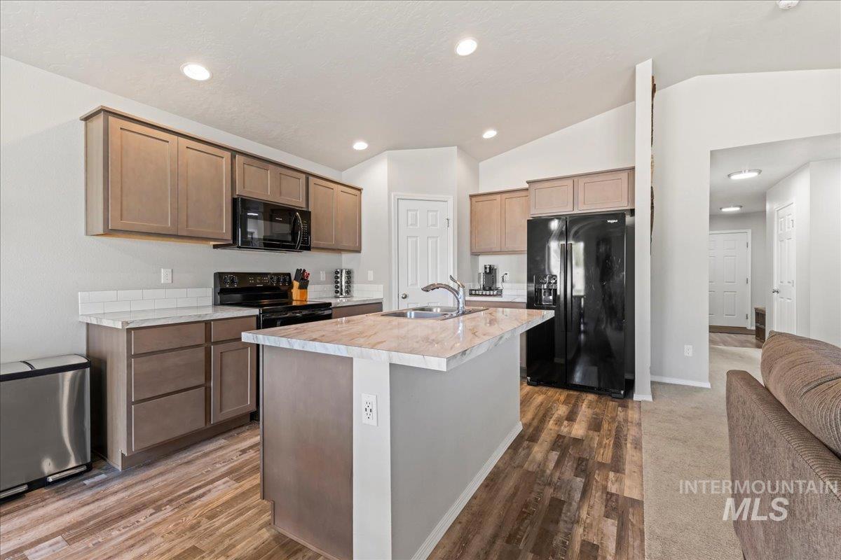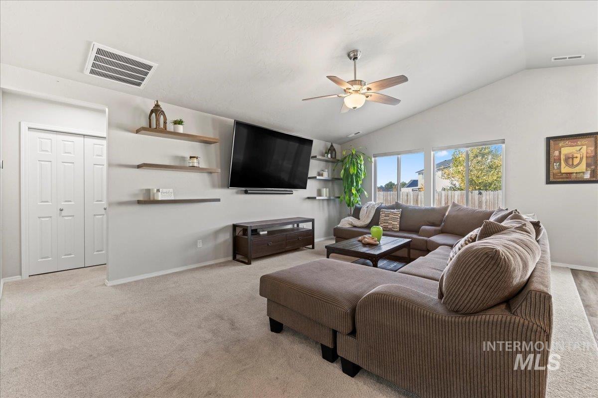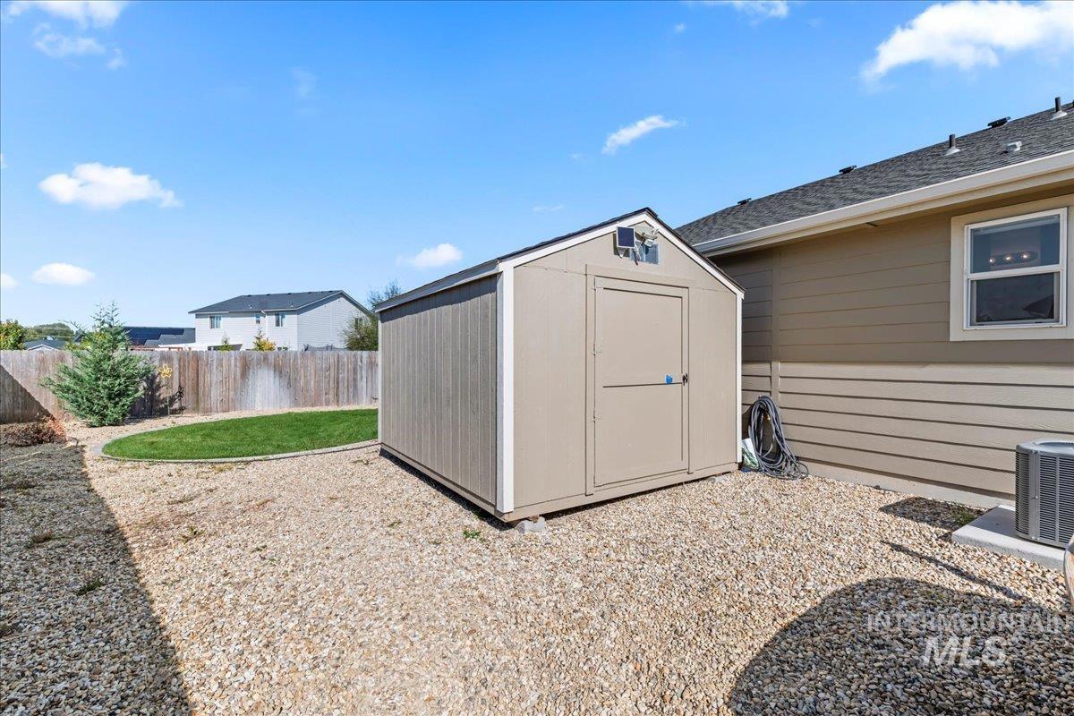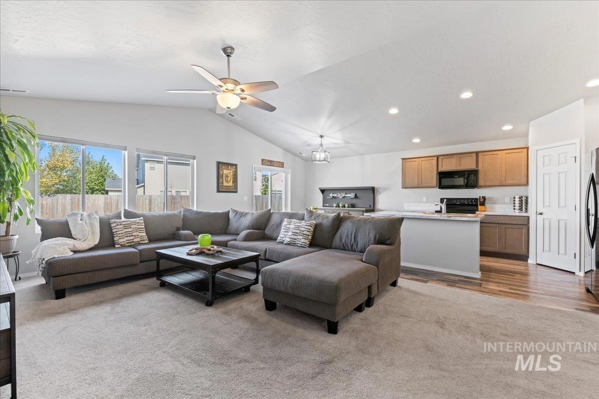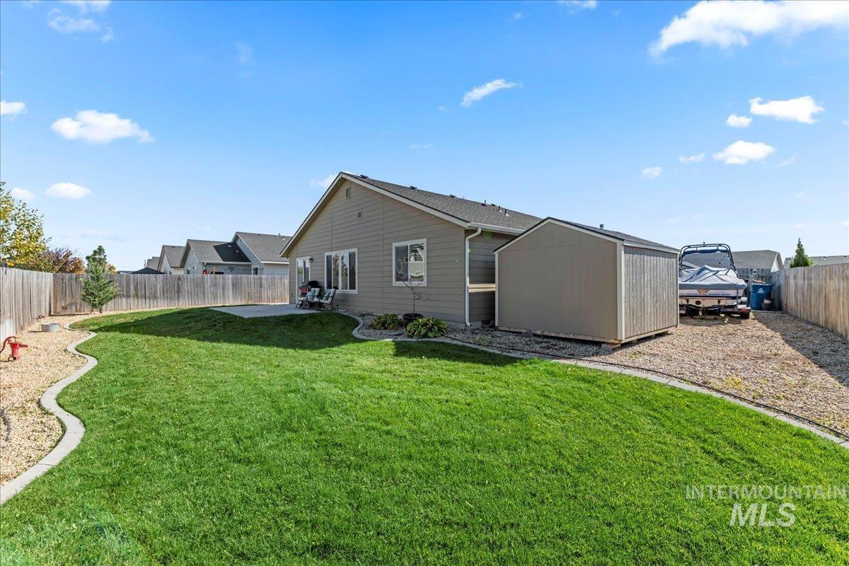 Find your space to unwind in this inviting Caldwell, Idaho single-level home with 3 bedrooms, 2 baths, and a bright open floor plan with vaulted ceilings. Natural light fills the great room and flows seamlessly into the kitchen and dining area—perfect for everyday living or entertaining guests. The split-bedroom layout provides privacy for the primary suite while two additional bedrooms offer flexible space for family, guests, or a home office. Step outside to a north-facing backyard designed for easy maintenance and upscale appeal, featuring sculpted landscape beds with concrete curbing for a clean, modern look. Enjoy RV parking, an extended driveway pad, and a 10x12 storage shed ideal for tools or garden gear. The side yard offers additional room for garden beds or outdoor projects. Currently a successful short-term rental, this home presents excellent investment potential or a turnkey move-in opportunity close to parks, schools, and shopping—perfect for those seeking comfortable living with everyday convenience.