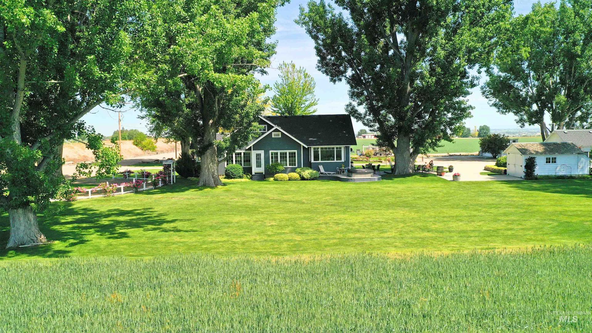 Must see!! Step back in time with this beautifully maintained 1929 farmhouse, where historic charm meets modern comfort. Nestled on ± 5.133 fully irrigated acres with animal rights and no CC&Rs, this property offers freedom, function, and timeless country appeal. Inside, you’ll find inviting living spaces filled with natural light, vintage craftsmanship, and charming details. The main floor features a welcoming kitchen, dining area, large living room, and a cozy porch sun room ideal for hobbies, or relaxing. Three cute bedrooms full of charm upstairs, while the basement includes an office, game room, and storage, providing flexible space for work or creativity. Outside, the property truly shines. The gorgeous 3-story red barn is a showpiece complete with a heated room and bathroom, perfect for an office space or guest overflow. Upstairs, you’ll find a wide-open floor with beautiful views, ideal for weddings, or events! The barn also includes its own game room, septic and RV dump. A large insulated shop with four 14` x 11` doors provides ample space for vehicles, toys, RV`s, or equipment. Excellent Vallivue Public & Greenleaf Friends Academy Private schools serve the area. Enjoy wide-open skies, mature trees, and the tranquility of Idaho country living while soaking in your patio hot tub just minutes from town! Please call to schedule your private showing!!