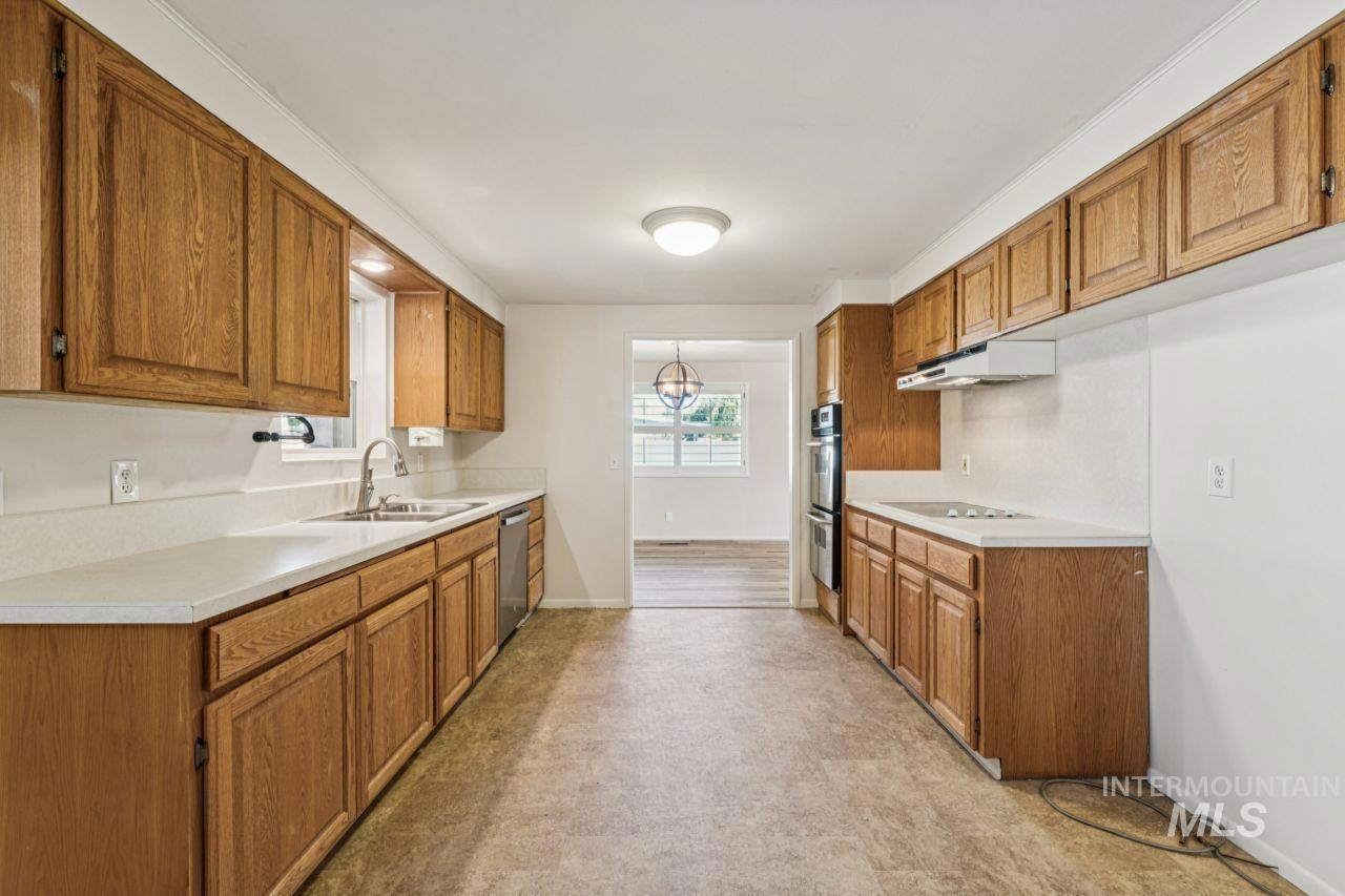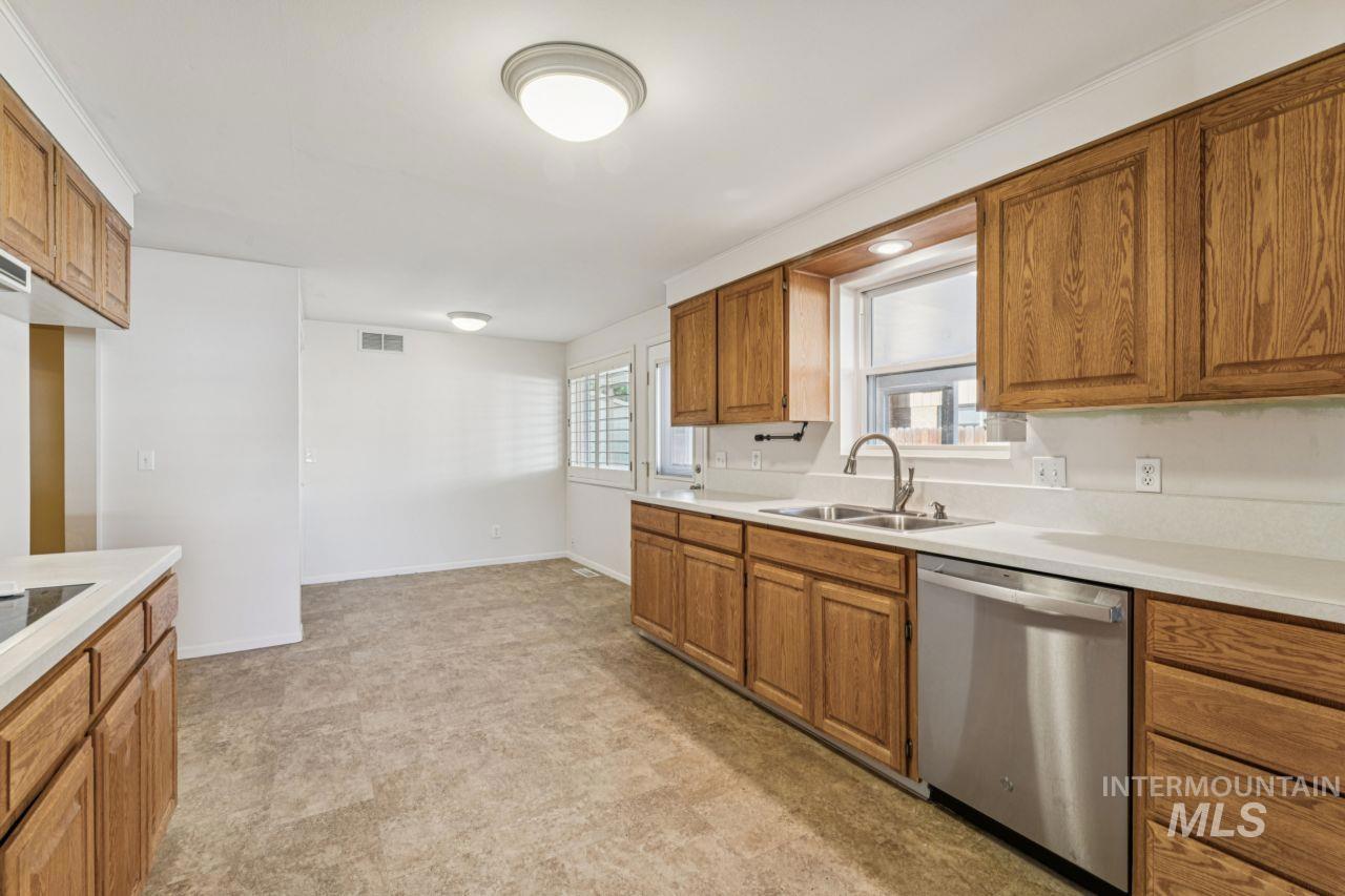 Spacious Single level home in a nice neighborhood. 3 large bedrooms and one regular sized., two updated bathrooms. 20.6 x 21 recreation room with wood stove, bar and several cupboards. Small storage room off of rec room and also has a door to the carport. Two covered parking spaces and two uncovered parking spaces. Fully fenced with partial vinyl and partial wood on the back side. Covered and enclosed screened in patio. Easy access to downtown and the freeway. Numerous restaurants nearby.