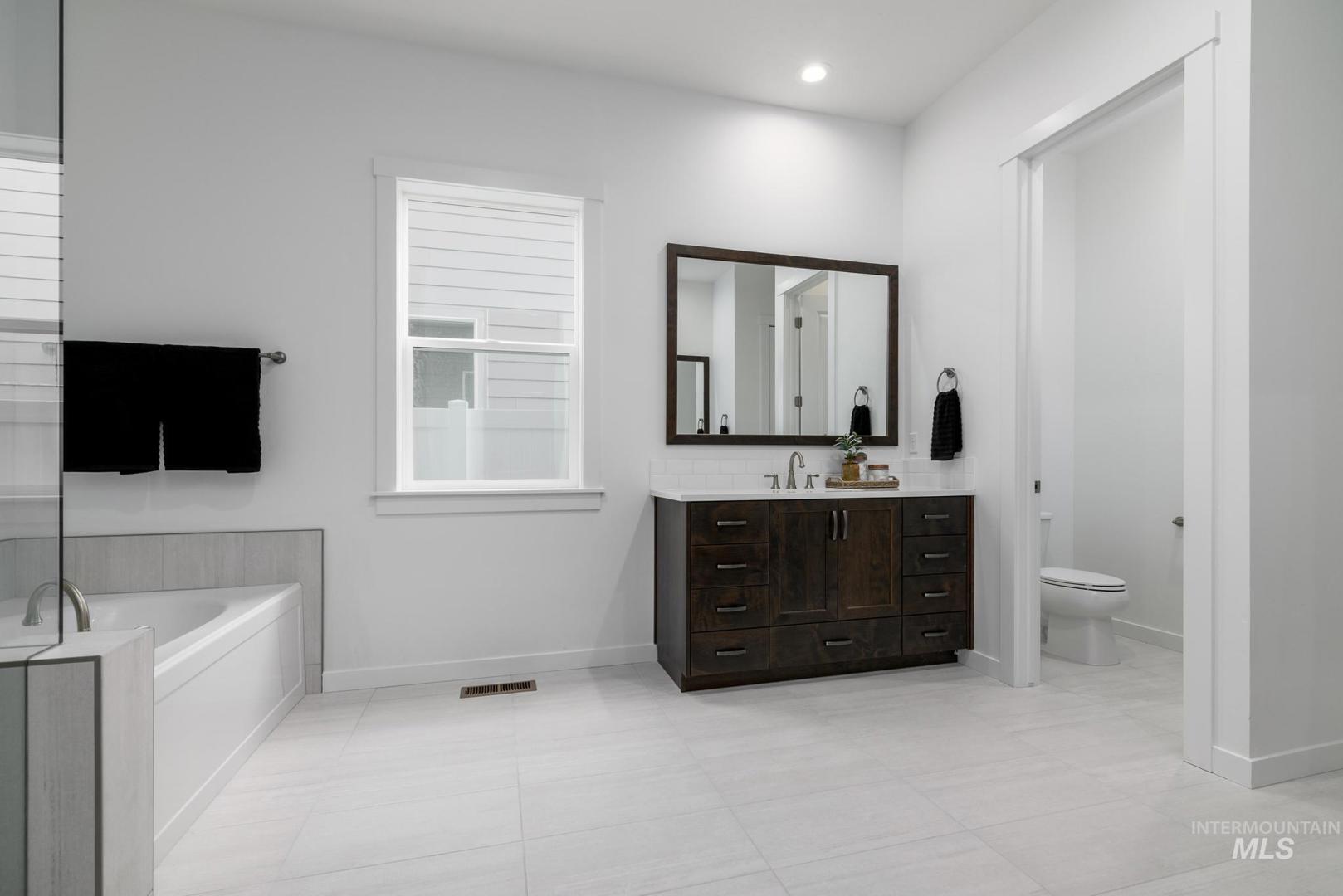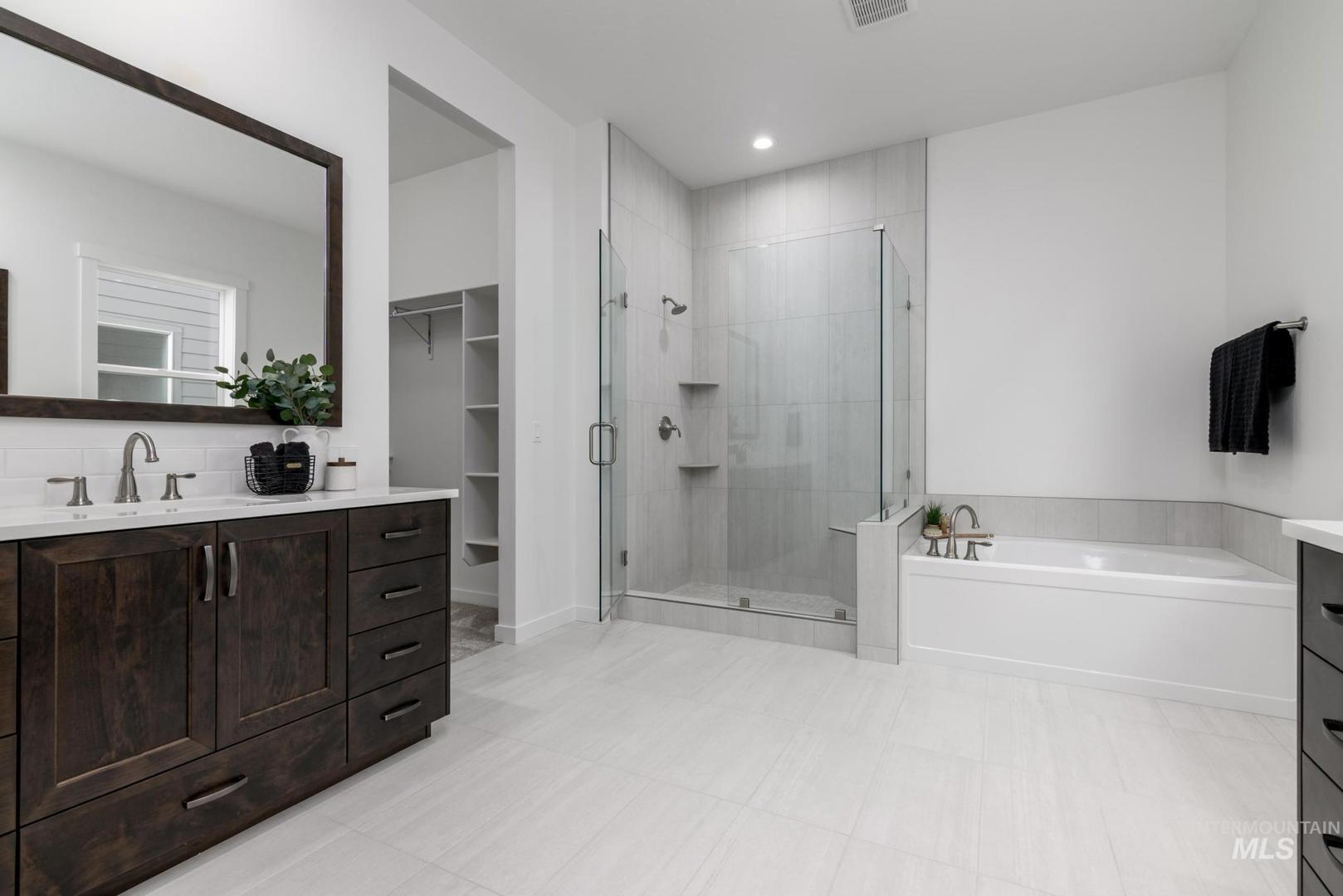 "The Forest." Stunning single story home presents with a charming front porch. Inside the foyer, an impressive great room warmly welcomes guests and offers easy access to the casual dining area and kitchen with a center island - perfect for entertaining. Additionally, the home features a flex room adjacent to the main living spaces, ideal for versatile use as an office or intimate formal dining space. Highlighting community spaces of the home is a covered patio accessed from the casual dining via beautiful sliding glass doors that provide plenty of natural light. Primary bedroom suite includes a luxurious en-suite bath featuring private water closet, separate soaking tub, dual vanities, and a tile surround shower with semi-frameless enclosure. Large 4 car tandem garage. Front and rear landscape included. Home is under construction. Photos are similar. BTVAI