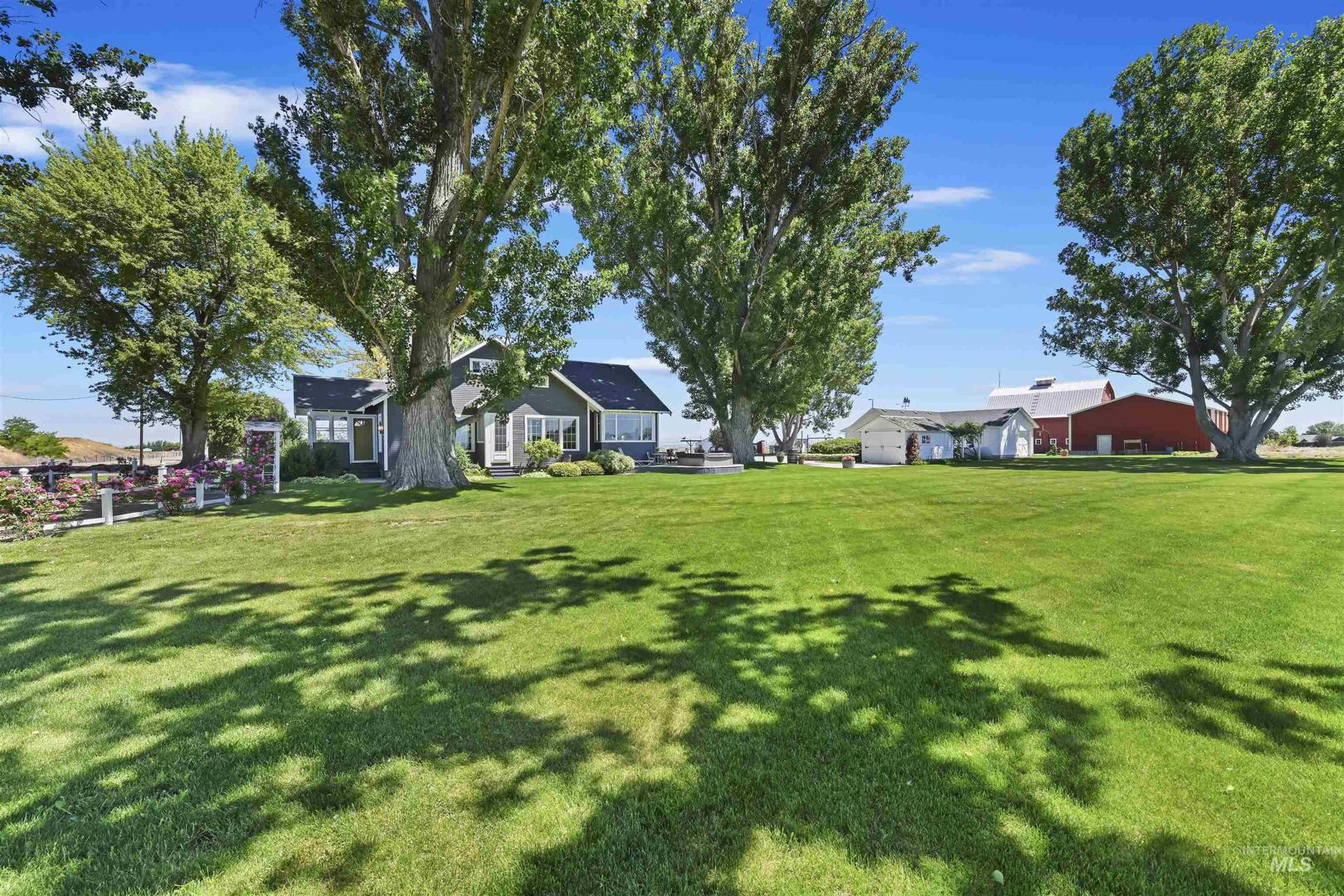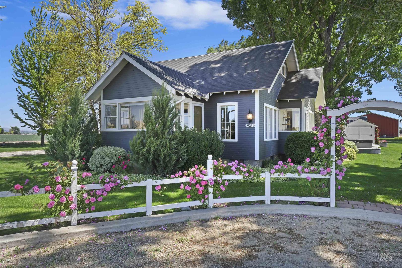 Must see!! Step back in time with this beautifully maintained 1929 farmhouse, where historic charm meets modern comfort. Nestled on ± 5.133 fully irrigated acres with animal rights and no CC&Rs, this property offers freedom, function, and timeless country appeal. Inside features a kitchen, dining area, large living room, and cozy sunroom porch perfect for relaxing or hobbies. Three cute bedrooms upstairs and a basement with office, game room, and storage provide flexible space for work or creativity. The gorgeous 3-story red barn includes a heated room, bathroom, game room, and wide-open loft, ideal for weddings or events with its own septic and RV dump. A large insulated shop with four 14` x 11` doors offers room for vehicles, toys, RVs, or equipment. Excellent Vallivue Public and Greenleaf Friends Academy Private schools serve the area. Enjoy wide-open skies, mature trees, and peaceful Idaho living—just minutes from town! Schedule your private showing today!