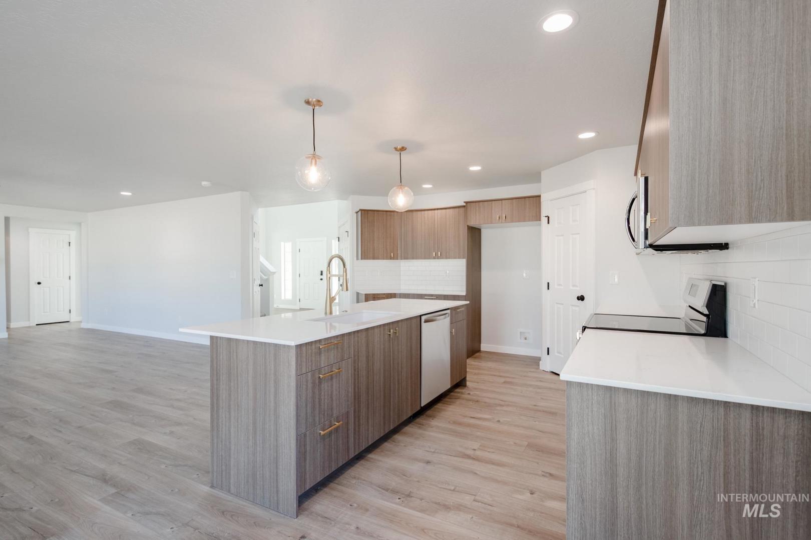 Fall in Love with Low Rates! Promotional rate as low as 2.99%. This brand new home located in vibrant Nampa, Idaho welcomes you with open arms. Prepare yourself for modern splendor in the Milano 3250. Experience pure delight as you encounter the modern kitchen area, dining room, and spacious living room, complete with a cozy gas burning fireplace. The kitchen comes with stainless steel appliances and stylish solid surface countertops, adding both functionality and aesthetics to the kitchen. A main level bedroom and adjacent full bath offer a perfect guest suite or an office space. Head upstairs to find a central loft flooded with natural light and 3 additional bedrooms. Double doors lead you into the primary suite, where the larger than life primary suite and oversized en suite bathroom guarantee a luxurious oasis of relaxation. The primary suite features a walk-in shower & separate soaker tub! Photos are of the actual home!