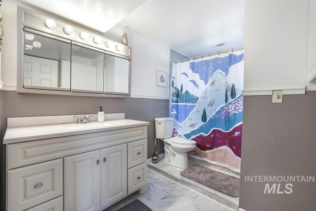 Nearly ONE ACRE on a quiet dead end road in Twin Falls. This spacious home offers 5 bedrooms, 3 full bathrooms, plus a bonus room through the primary suite that can be the 6th bedroom, office, or nursery. Enjoy the open kitchen, two living areas, a large laundry room, and a mudroom off the garage. ALL bedrooms are legal bedrooms. Step outside to TWO walk out decks perfect for taking in Idaho`s sunsets and sunrises one facing the west and one facing the east. With RV PARKING, NO HOA, newer roof (2019) and HVAC system, this home has the space, location, and freedom to bring your toys, animals, garden, and your whole family.