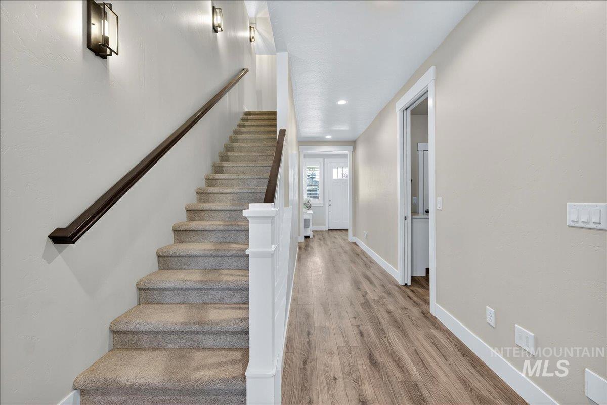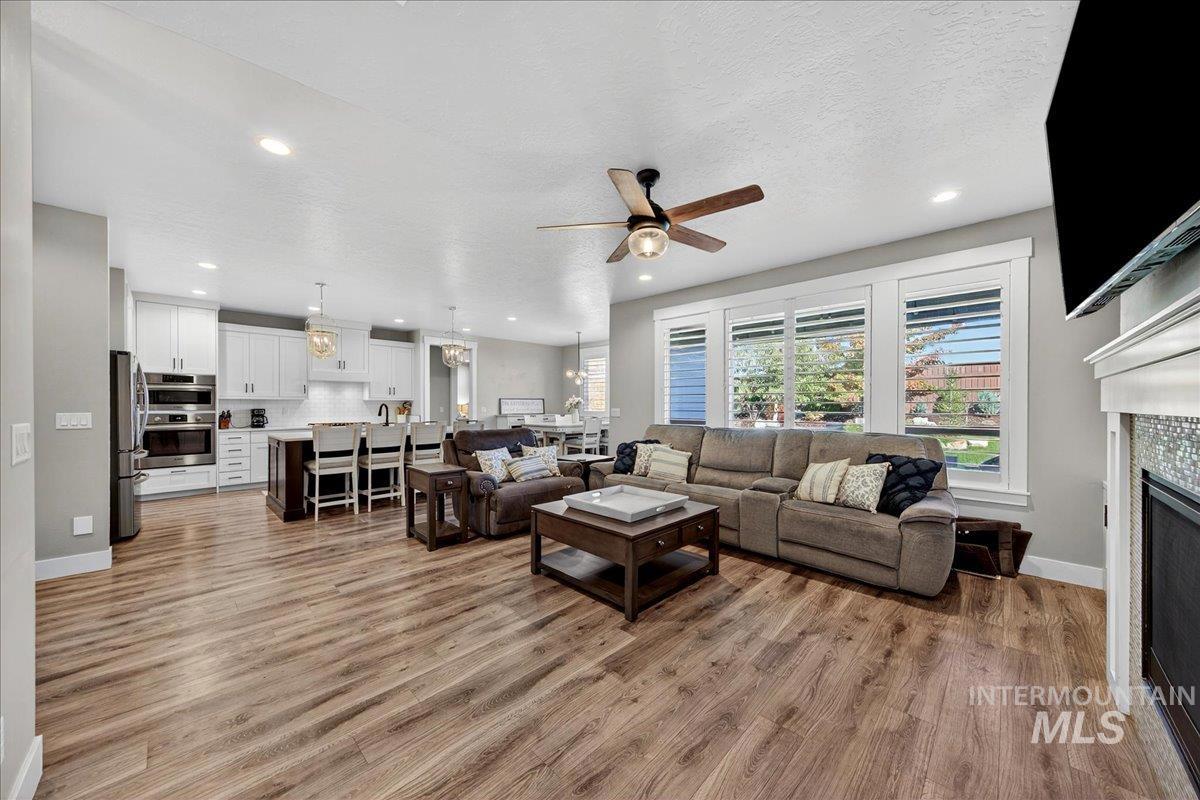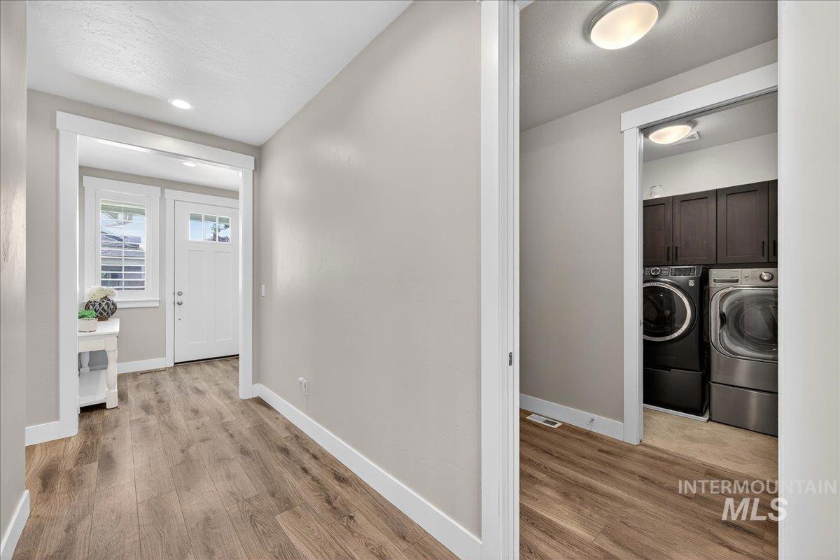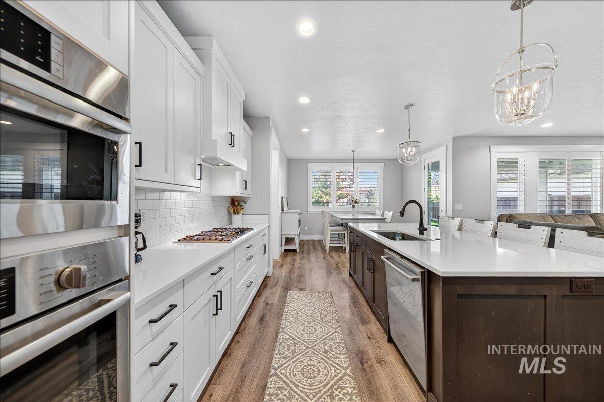 Step inside and feel it, the calm, the confidence, the kind of home that instantly wraps you in warmth and quiet sophistication. Nestled on a private, oversized corner lot in Meridian’s coveted Bainbridge community, this highly upgraded Alturas home was designed for those who crave open spaces, natural light, and intentional detail. The seamless single-level layout flows through expansive gathering spaces anchored by a stunning chef’s kitchen, complete with quartz countertops, soft-close cabinetry, stainless appliances, walk-in pantry, and an oversized island that becomes the heart of every conversation. The primary suite feels like a retreat, with a spa-inspired bath, walk-in shower, and generous dual vanities. Upstairs, a bonus room invites movie nights, workouts, or creative escapes. Outside, unwind under your covered patio, surrounded by raised garden beds and a private backyard powered by your PAID solar system. Even the 2.5-car garage was designed with thought, custom dog run access included. Bainbridge offers pools, parks, and paths that connect community and lifestyle. Every detail here whispers refinement, every corner feels like home.