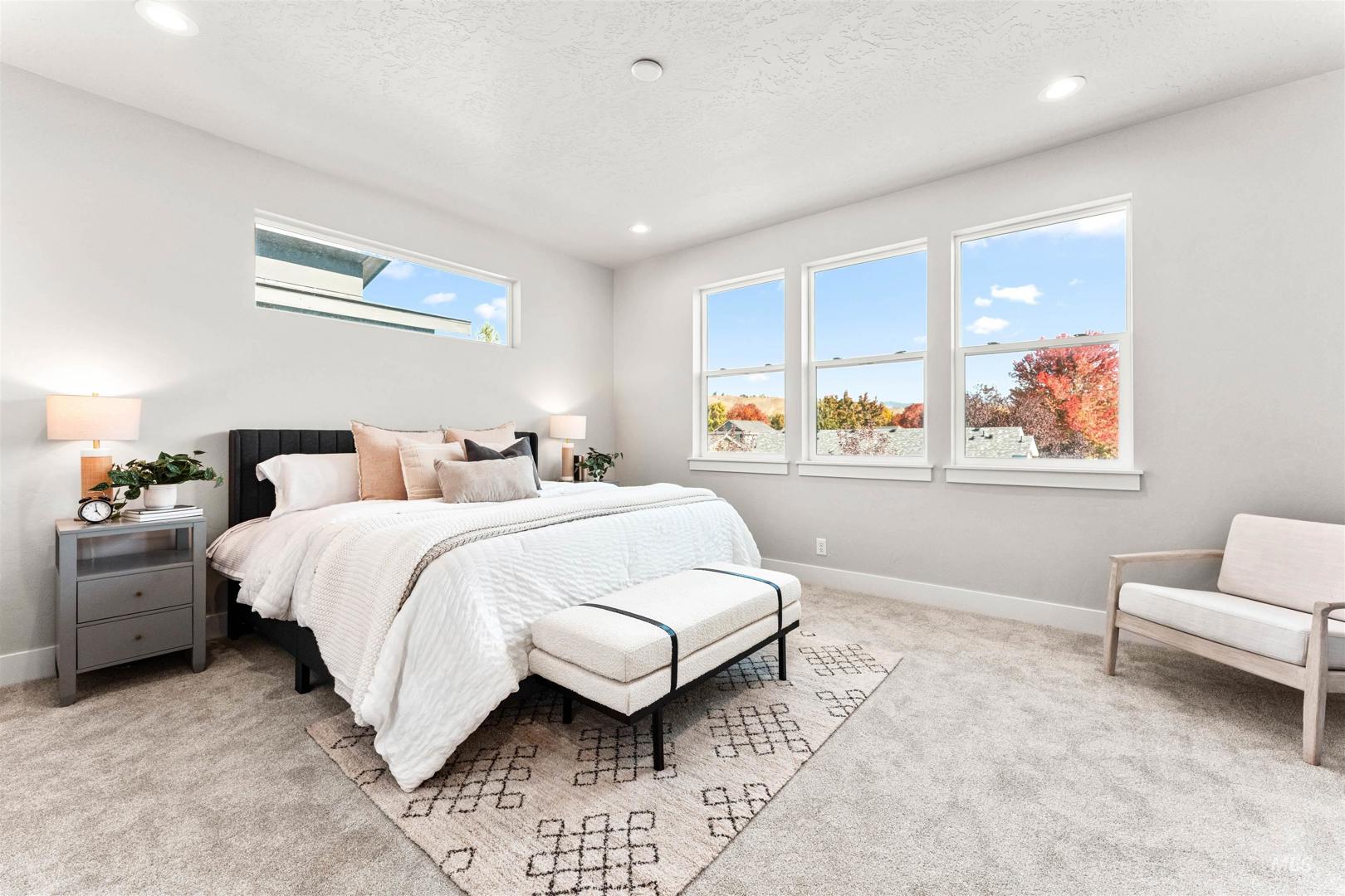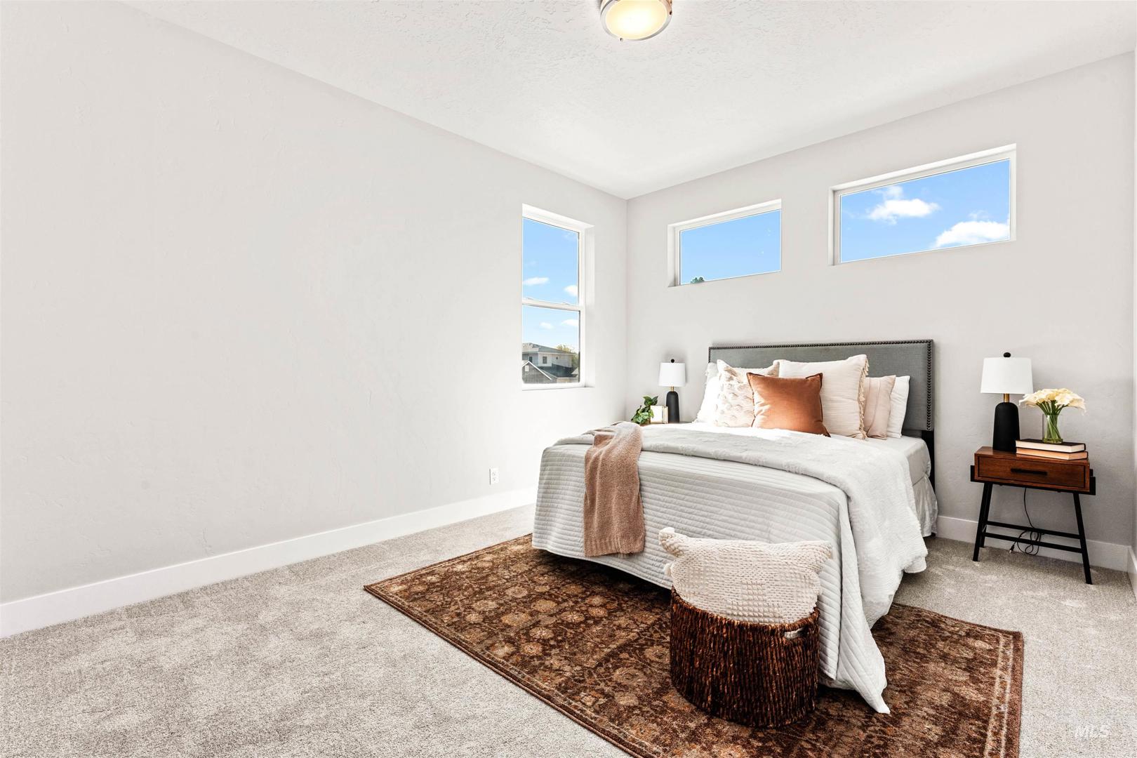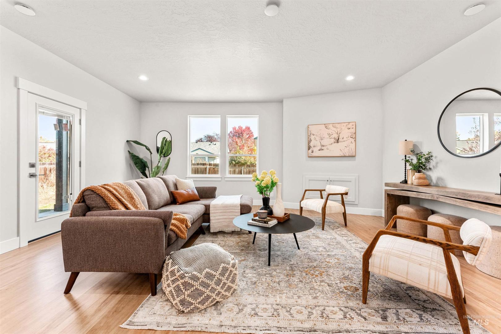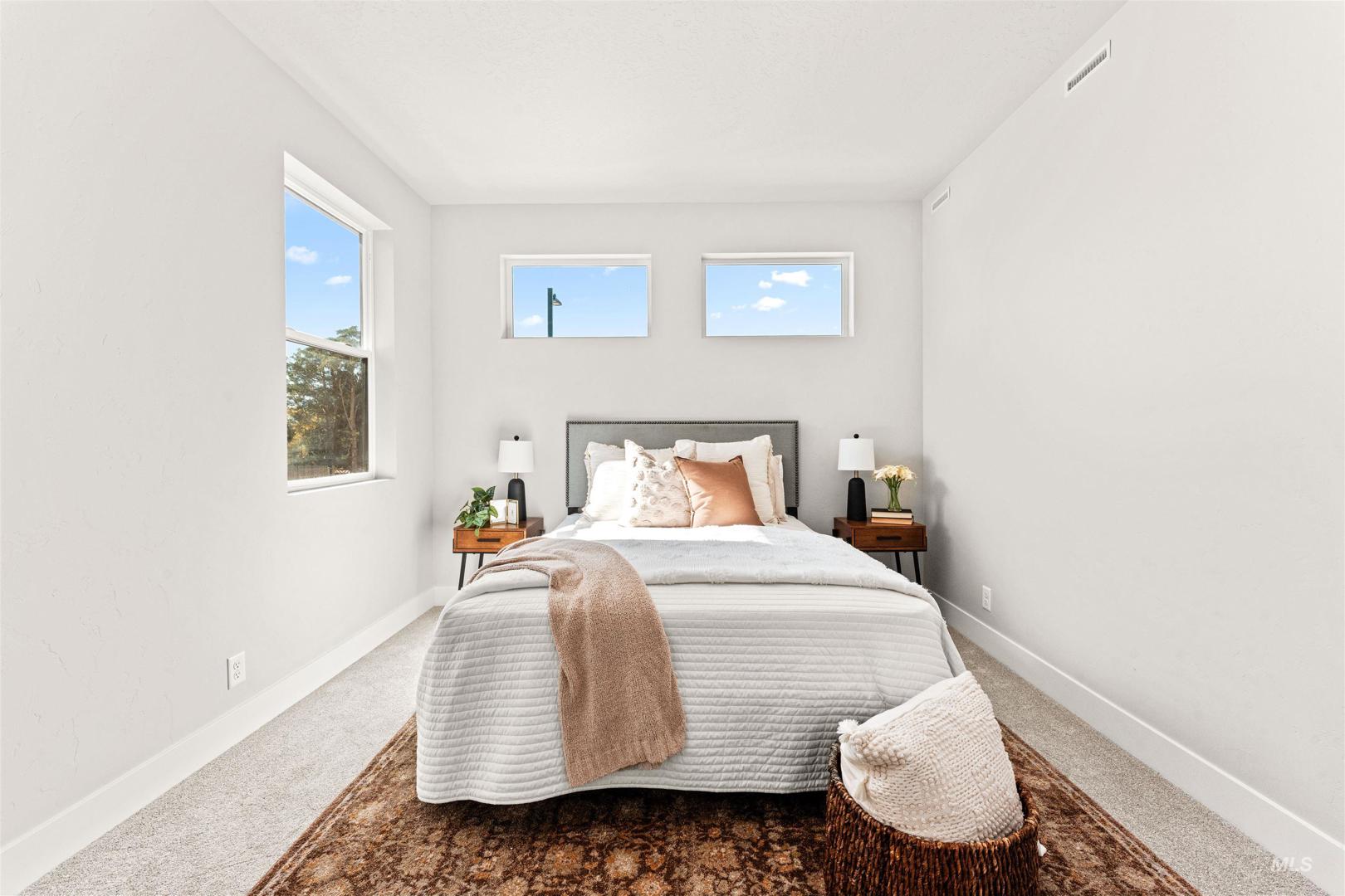 Elegant contemporary new construction in the highly sought-after NW Boise area! Perfectly situated near shopping, HWY 55, downtown Eagle, downtown Boise, the Greenbelt, and endless foothill trails. Step inside to discover an inviting open-concept floor plan designed for effortless living and entertaining. The sleek kitchen features a built-in stove with range cooktop, chic finishes, and an expansive pantry with room for a tech desk—ideal for organization or meal prep. Stylish countertops, modern hardware, and designer lighting flow throughout, creating a cohesive and elevated feel. The primary suite offers a serene retreat with an oversized, beautifully tiled walk-in shower and dual vanity space. Secondary bedrooms are generously sized with abundant closet space, providing comfort and versatility for guests, family, or a home office. A perfect blend of function, elegance, and location—your NW Boise dream home awaits!