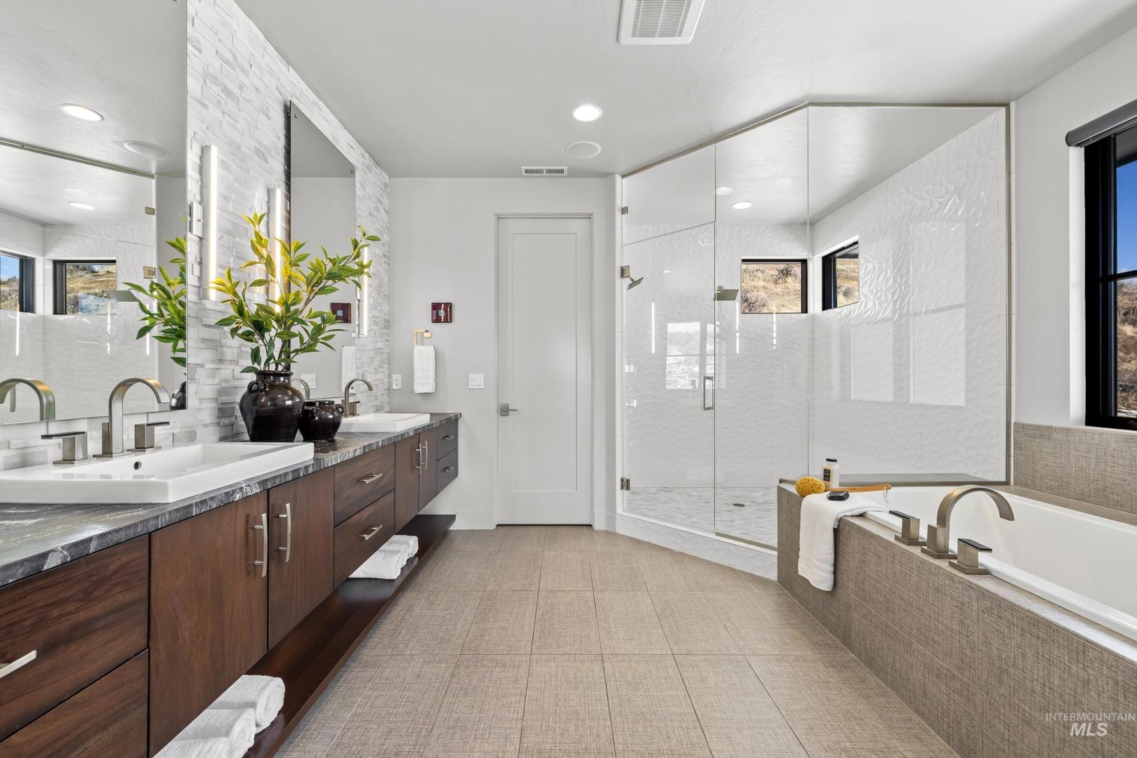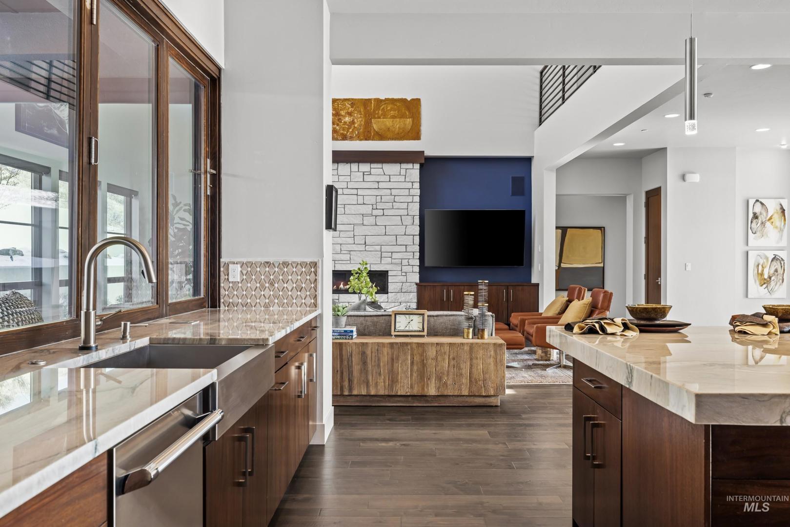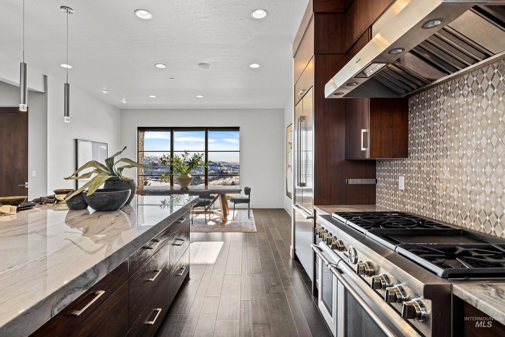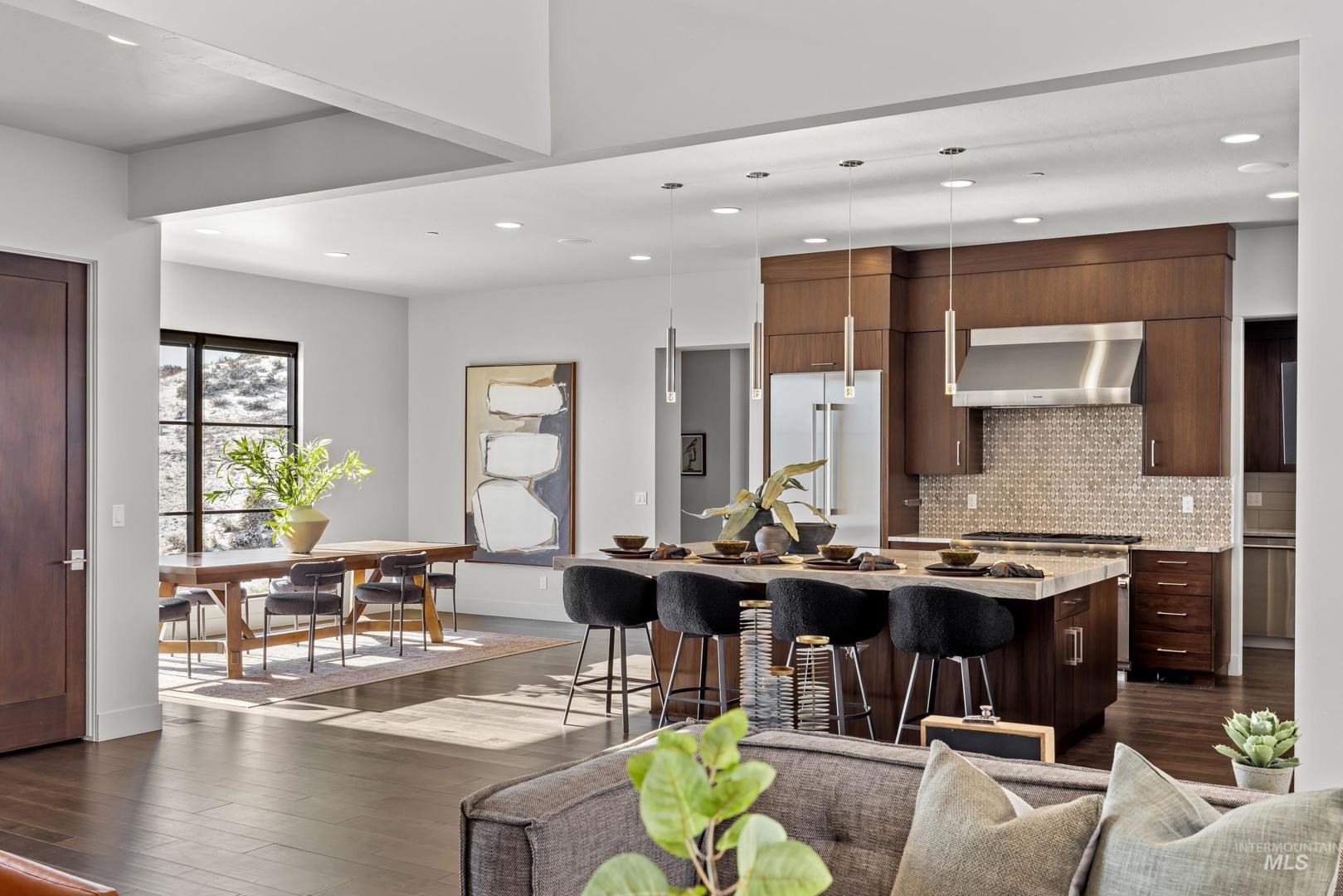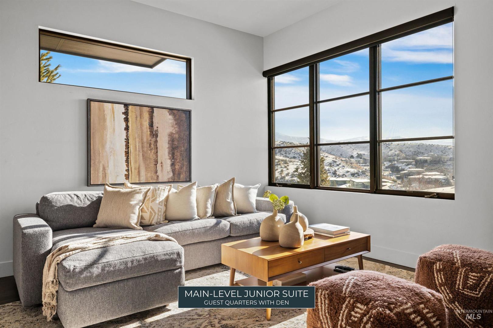 An unrivaled private setting tucked into the rolling foothills overlooking the entire Boise Valley. This luxury estate, with timeless design & endless views, is an incredibly rare opportunity with unmatched quality by respected Seidl Custom Homes.The home features 7,387 square feet of artfully curated living space that is perfect for entertaining guests and ensuring an irresistible haven. Indoor/outdoor living is blurred by the accordion-stacking picture windows & doors that lead out to the patio- which is complete with an outdoor kitchen & surrounded by a low-maintenance yard. A gourmet kitchen marries luxury with functionality & is brilliantly designed as the ideal chef`s workspace. The Main-level ensuite & TV room is perfect for guests and the upstairs primary suite offers city views & spa-like amenities. Don`t miss the secret room, currently used as a private getaway office space. Set apart on its own wing, the kids` quarters feature 4 ensuite bedrooms. Minutes to the CO-OP, hospital
