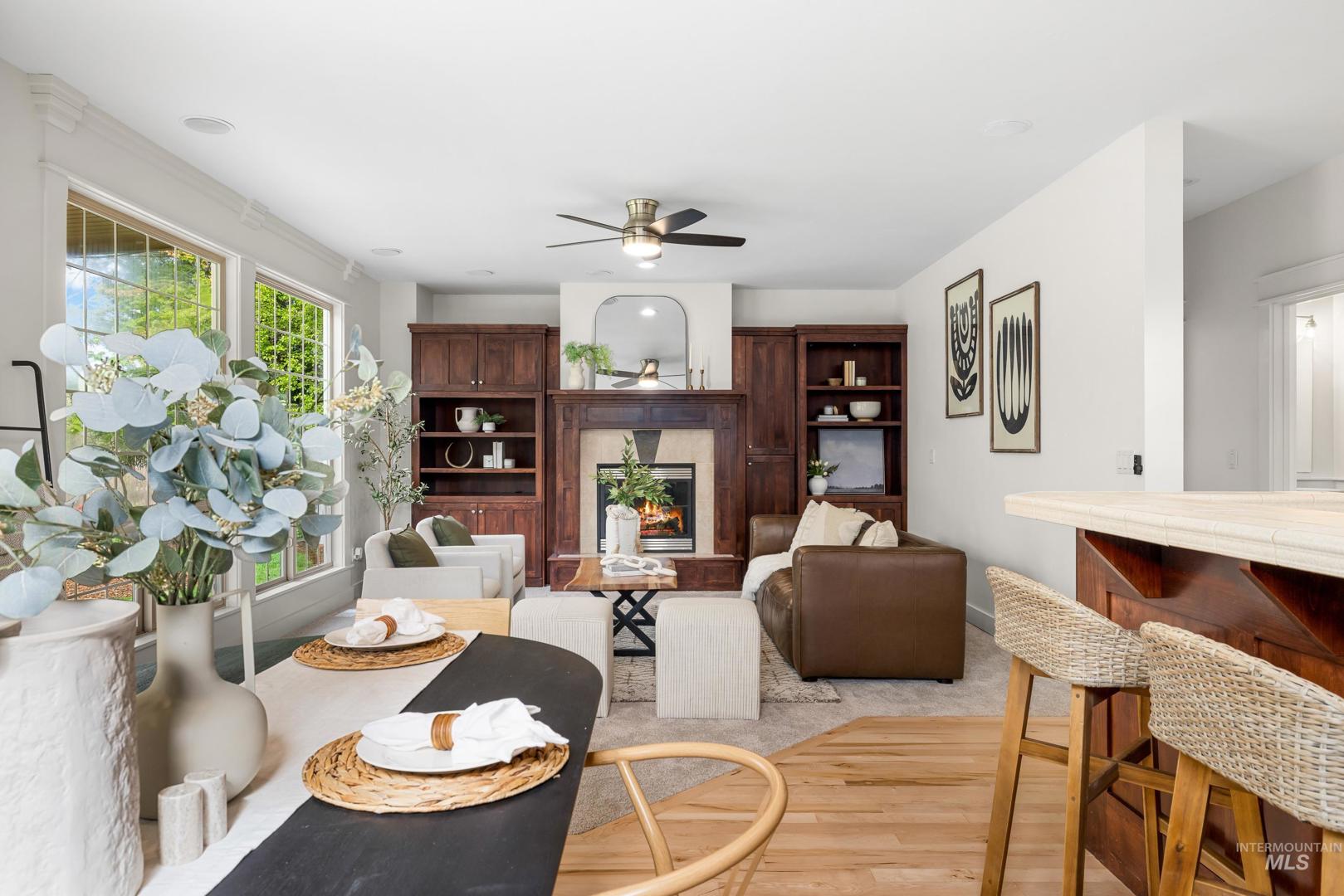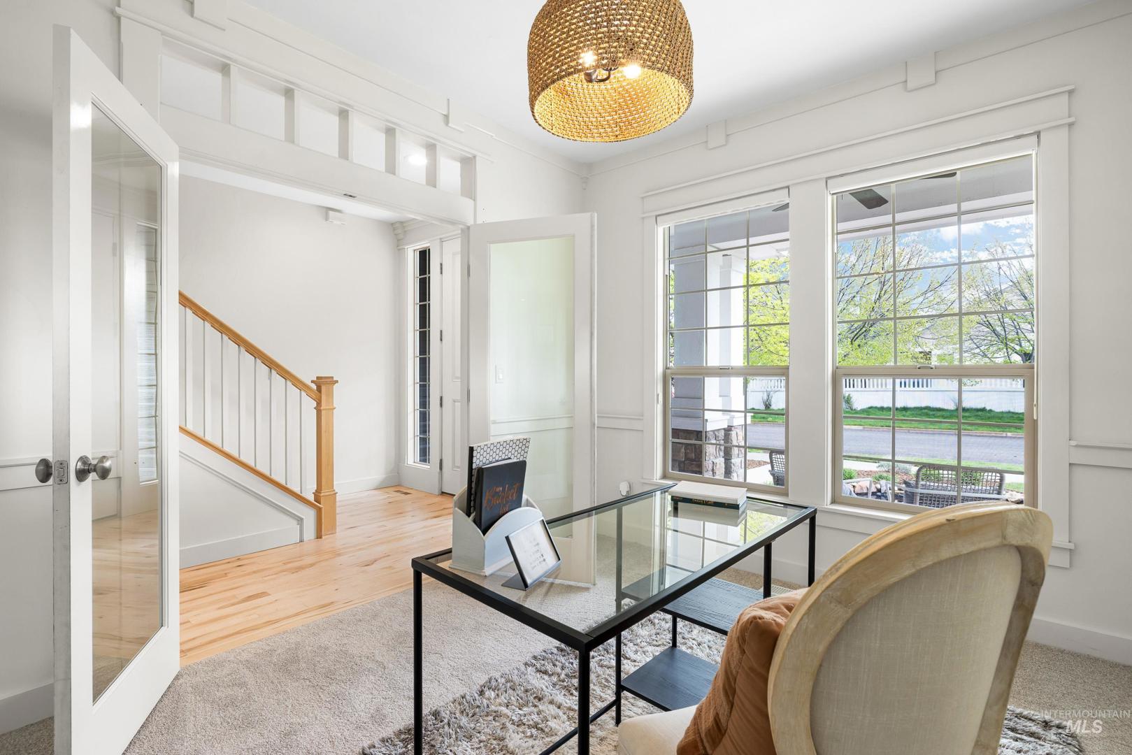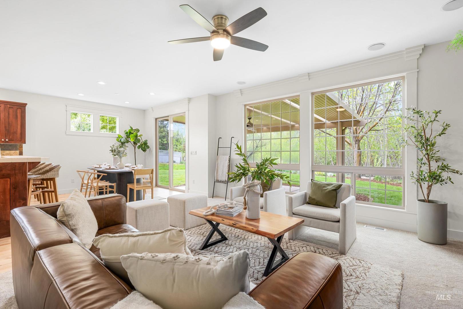 Located in Hidden Springs, a superb and elegant sub in the Foothills of Boise. This Craftsman charmer offers 4 bedrooms & 2.5 baths with an abundance of square footage for entertaining, storage and a true office. Brand new carpeting throughout, re-finished natural hardwoods, fresh paint and an updated appliance package makes this the ideal move-in-ready property. Featuring an upstairs spacious loft complete with its own kitchen set-up/wet-bar, massive and bright primary suite with a thoughtfully planned reading/sitting nook and a large walk-in closet w/ custom built-ins! The three-car tandem garage is currently set-up for your shop or storage needs. Enjoy serenity & privacy while entertaining on a covered back patio on your ~.25 acre lot surrounded by protected land and no rear neighbors. Just walking distance to the “Merc” (Town Square), community pool, Spring House Café, elementary school and the community farm!