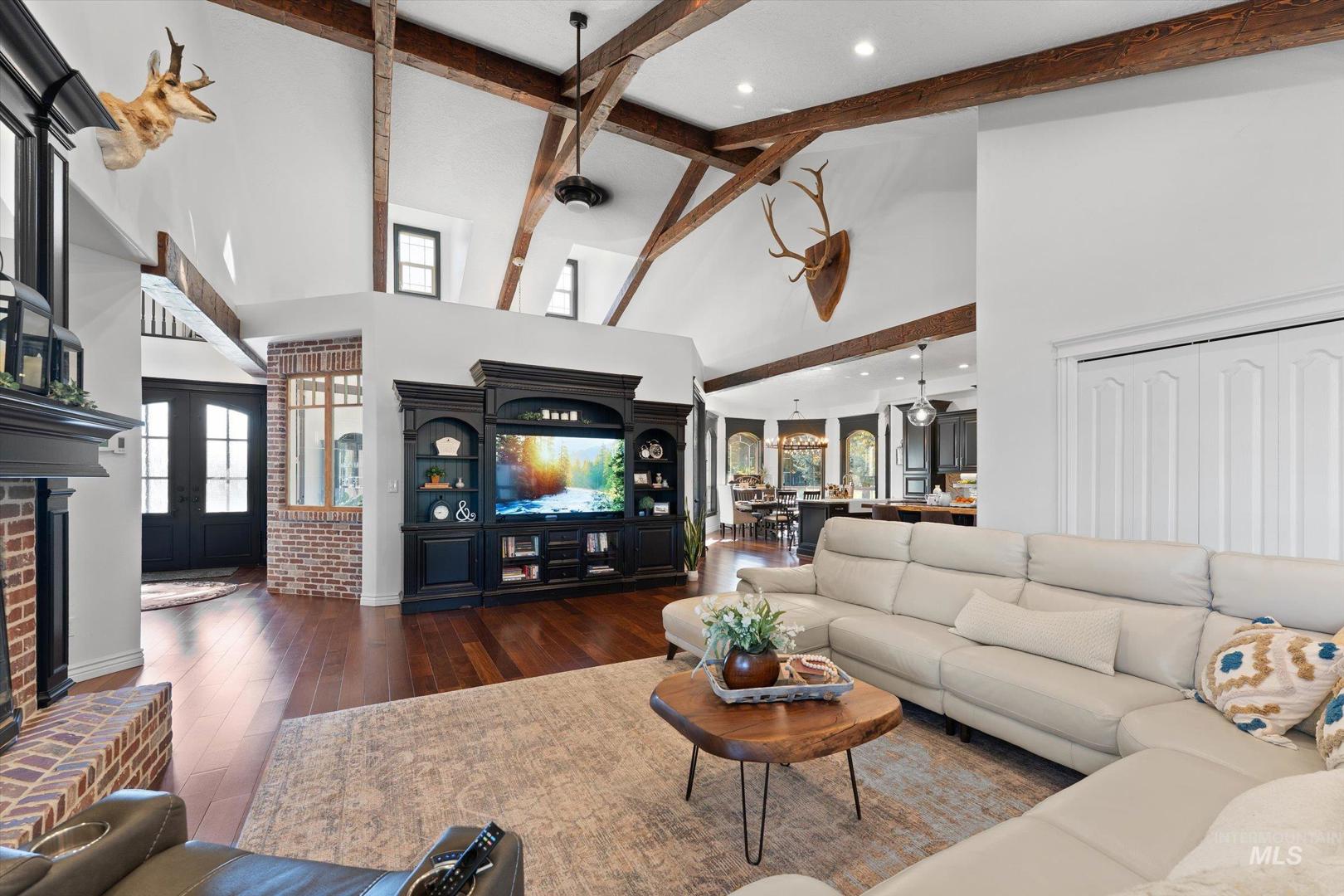 Experience timeless elegance in this beautifully updated French Country home with a modern twist, nestled in the desirable Carriage Hill Subdivision. Offering 4,647 sq. ft. of living space on an expansive .55-acre lot, this residence includes 4 bedrooms, 3 full baths, and 2 half baths — featuring two expansive master suites with private en-suite bathrooms. The home showcases granite countertops, rich chestnut hardwood floors, and exposed wooden ceiling beams that bring warmth and character throughout. An additional family room provides the ideal space for gatherings, relaxation, or a home media setup. Enjoy modern amenities such as solar panels, dual Tesla Power-walls, and a dramatic backyard waterfall. The property also includes an orchard, garden, and grape vineyard — creating a serene and sustainable retreat that perfectly blends comfort, style, and sophistication.