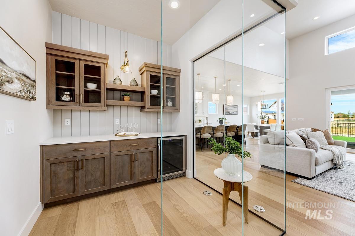 Single-story home located on exceptional waterfront homesite with its own private beach! Beyond its stunning curb appeal, this home boasts a split garage with dual entry points: one door opens to an ensuite guest room with a luxurious bath and nearby flex room, the other leads into the expansive great room—featuring soaring ceilings and a glass-enclosed wine cellar. The chef’s kitchen, centered around a large island, overlooks the fireplace in the great room and offers ample counter space and handsome cabinetry. The corner primary impresses with massive 8’ windows and a spa-inspired bath complete with a freestanding tub, tiled shower, and an enormous walk-in closet. Now open, the River Park Estates Clubhouse offers endless opportunities for activity and relaxation. Enjoy pickleball, swimming, lounge areas, and more, all presented in a beautiful modern aesthetic. Home is to-be-built. Photos similar.