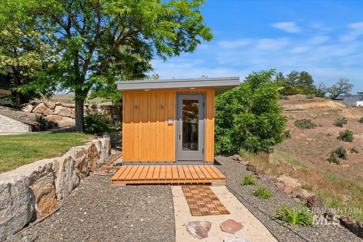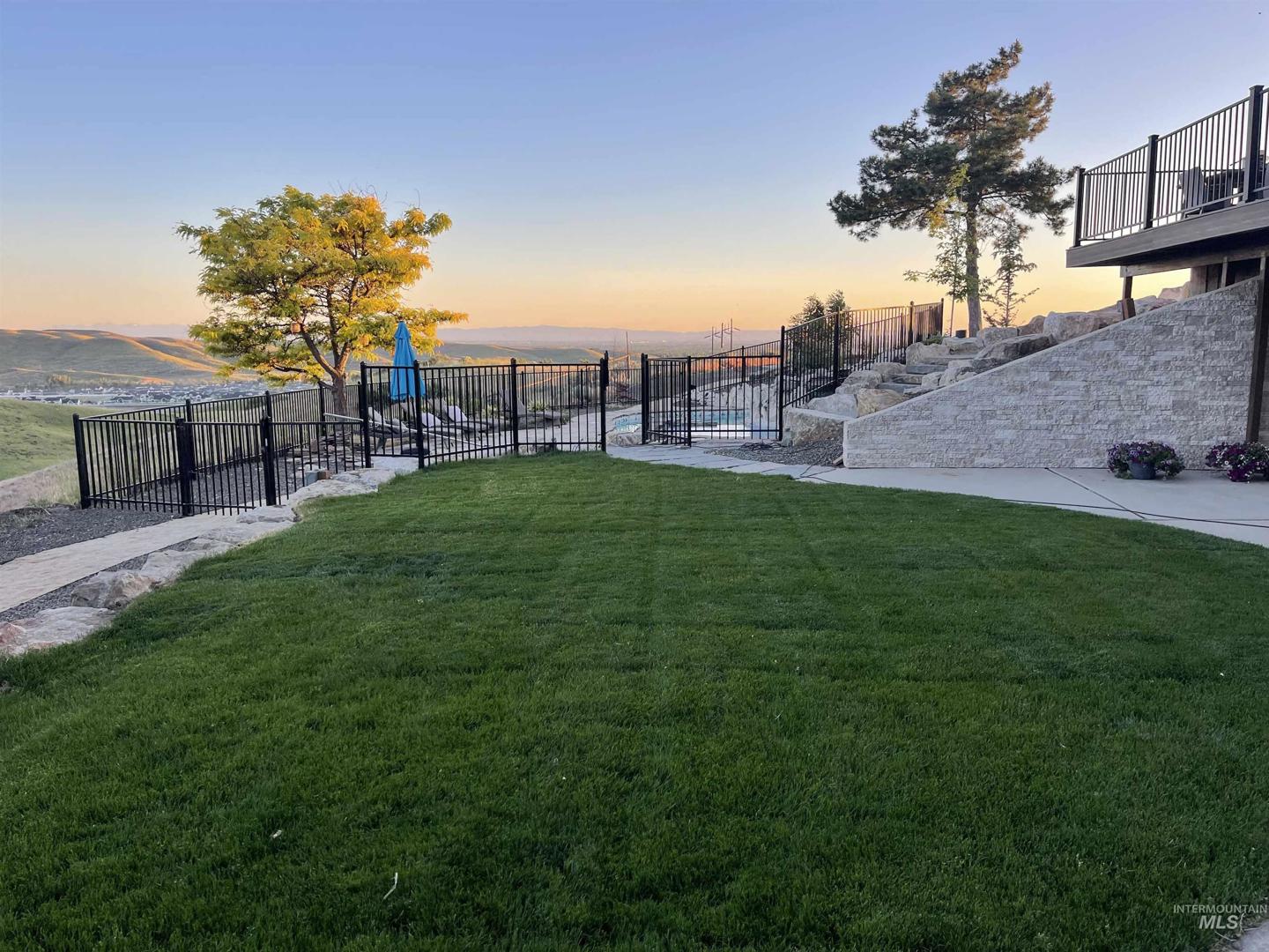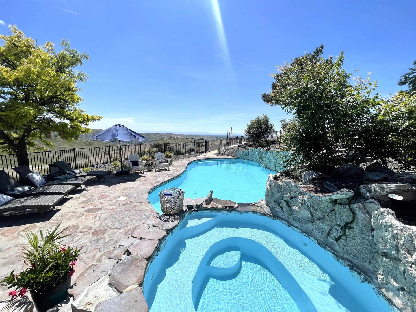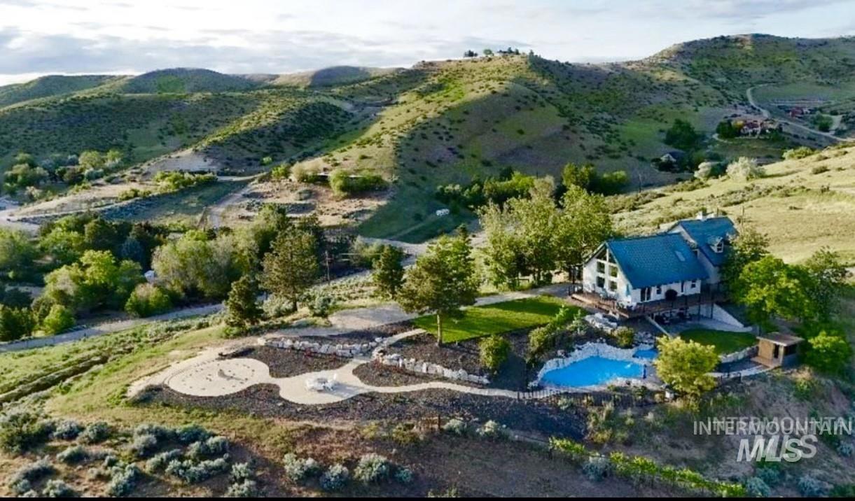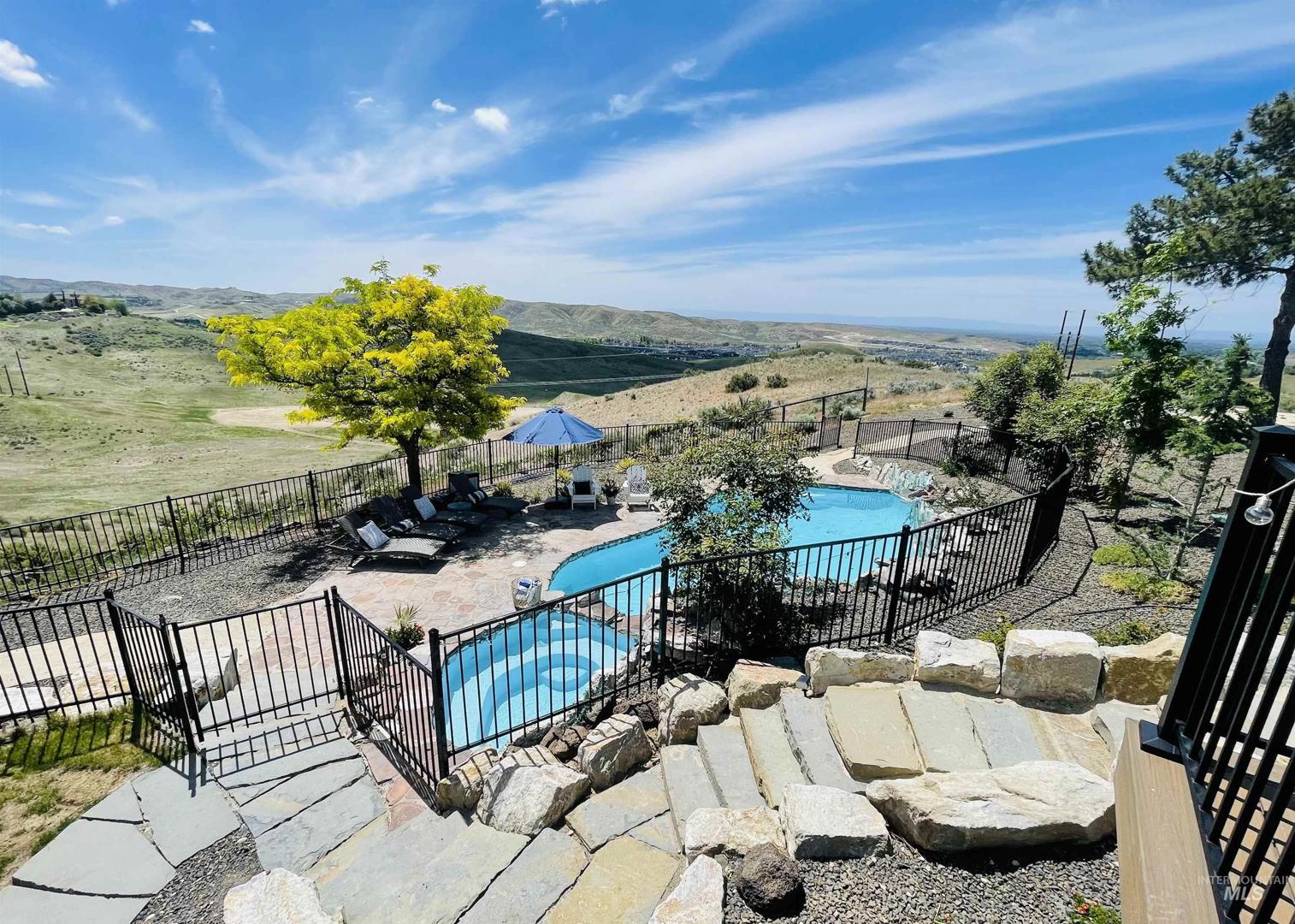 Private Mountain Retreat in the city. Perched above Shadow Valley Golf Course, this one of a kind 5-acre property boasts panoramic 360 degree views. Complete Privacy that comes with resort like amenities that include inground custom pool and spa with waterfalls and custom sauna. Home was taken down to the studs in 2022 and completely remodeled. All new pool equipment, heater & wrought iron safety fence & pool brought up to code. Pool is connected to wifi for convenience. Driveway extended to allow for more parking. Bring your horses! Several horse shelters currently on property! Extensive landscaping completed to double the size of the flat yard area and entertaining spaces. Over 200 feet of boulders and rock work on the property. Well has brand new motor, pump, and pressure tank Unwind in the spacious owner`s suite w/dual vanities, soaker tub, roomy walk-in shower & walk-in closet. Private estate 7-10 minutes from downtown Eagle and 25 minutes from downtown Boise.