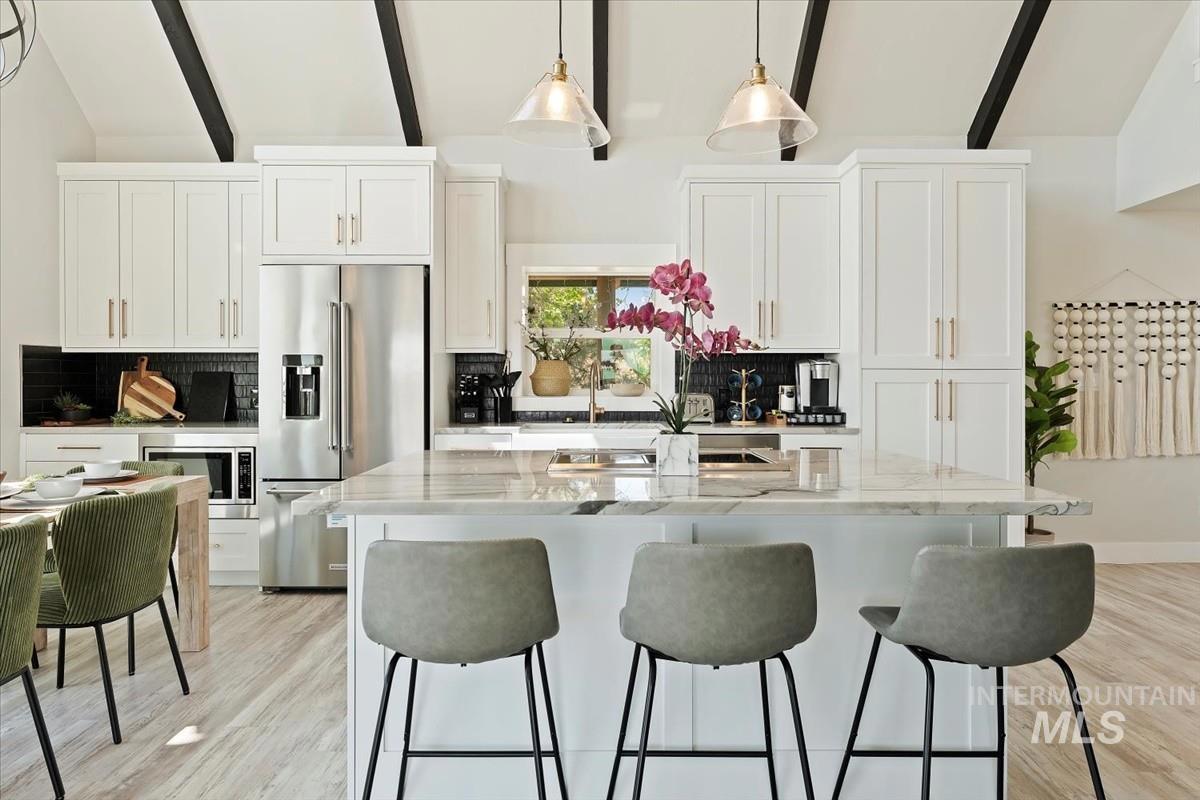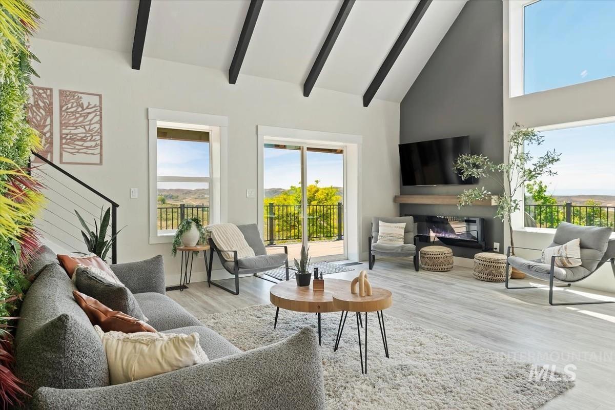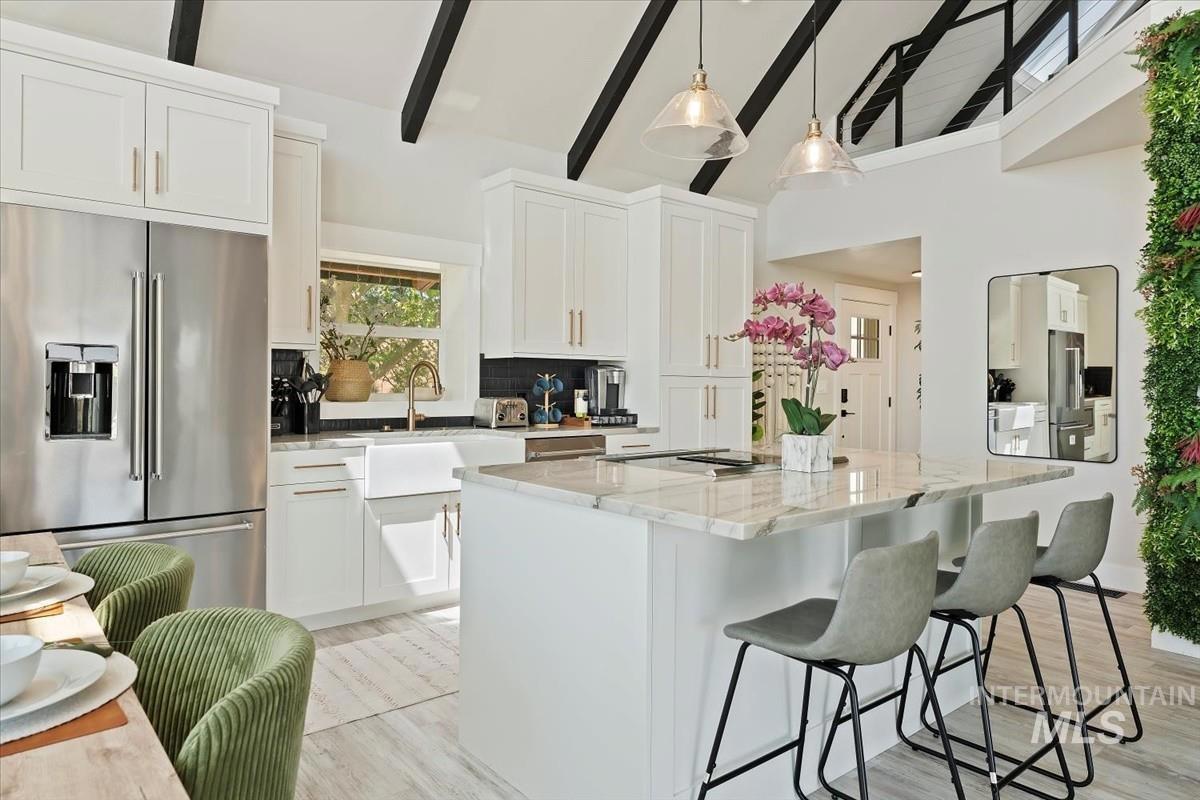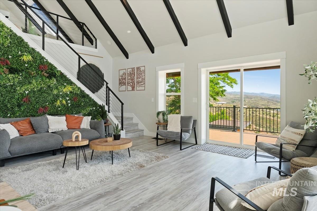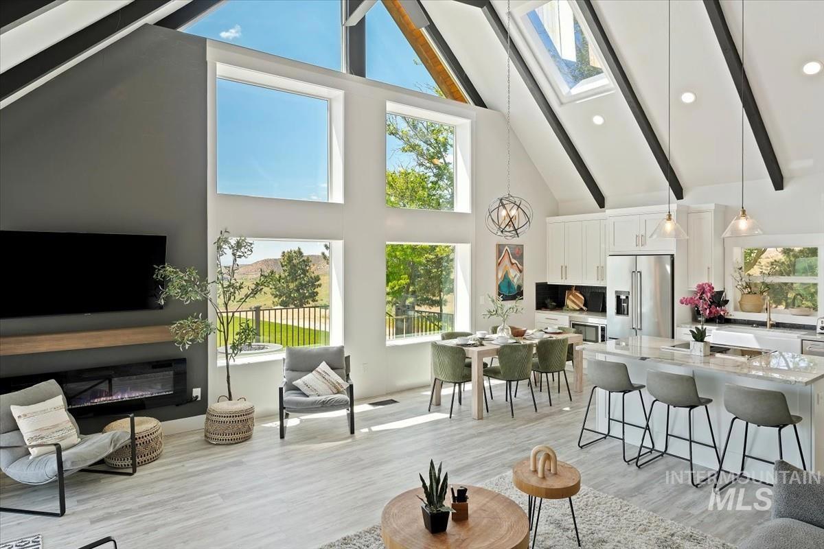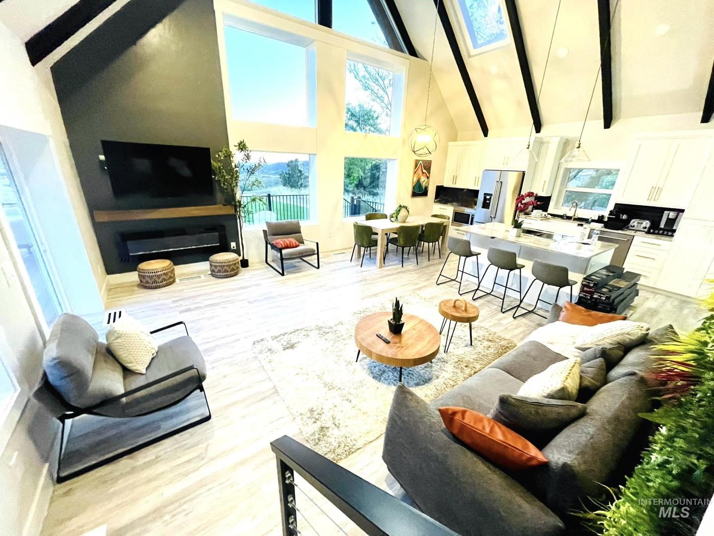 Private Mountain Retreat in the city. Perched above Shadow Valley Golf Course, this one of a kind 5-acre property boasts panoramic 360 degree views. Complete Privacy that comes with resort like amenities that include inground custom pool and spa with waterfalls and custom sauna. Home was taken down to the studs in 2022 and completely remodeled. All new pool equipment, heater & wrought iron safety fence & pool brought up to code. Pool is connected to wifi for convenience. Driveway extended to allow for more parking. Bring your horses! Several horse shelters currently on property! Extensive landscaping completed to double the size of the flat yard area and entertaining spaces. Over 200 feet of boulders and rock work on the property. Well has brand new motor, pump, and pressure tank Unwind in the spacious owner`s suite w/dual vanities, soaker tub, roomy walk-in shower & walk-in closet. Private estate 7-10 minutes from downtown Eagle and 25 minutes from downtown Boise.