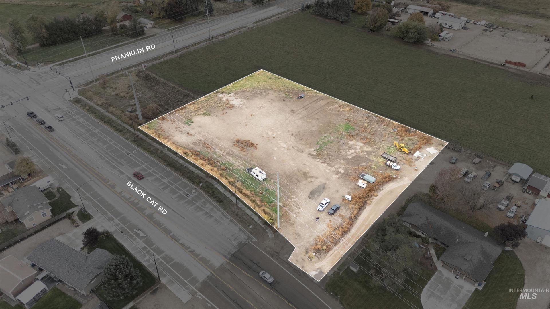 Vacant industrial development site offering a prime position at Black Cat Rd and Franklin Rd, a key intersection in one of Meridian’s fastest growing corridors. This parcel sits just minutes from the rapidly expanding Ten Mile Crossing development, The Idaho Center, Amazon, Pepsi Co, and other major employment and retail hubs. The parcel currently sits within the County allowing for future annexation into Meridian City if desired, but currently zoned M-1 light industrial within Ada County. With future direct access from Franklin road to the new SH-16 interchange, the property will benefit from superior connectivity across the Treasure Valley. With the continued surge of surrounding construction in the immediate area, this location is poised for strong demand. Perfect parcel for flex / warehouse development, storage, etc.