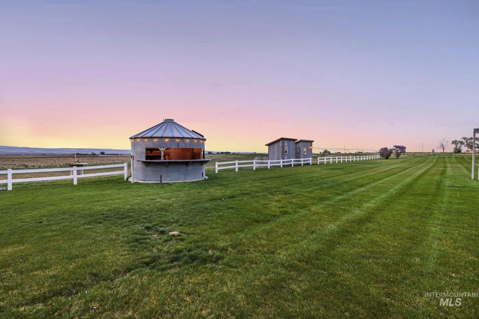Generating $14,250 in monthly gross rent, this 80 acre Idaho estate is a prime opportunity for investors or developers seeking both luxury and lasting income. The 6,282 sq ft main home features 4 bedrooms and 5.5 bathrooms, each with a private ensuite. Enjoy a gourmet kitchen with top of the line appliances, a grand great room with 12-ft ceilings, wet bar, and a 1,036 sq ft recreation room. The backyard is built for entertaining with a lit dance floor, outdoor bar, and two silo bathrooms. A 40x60 shop/RV storage with 14-ft door and dog kennel complete the main residence area, currently leased for 5 years at $13,250/month on approx. 5 acres. The property also includes a 2,804 sq ft 4-bed, 2-bath rental home with a 2-car garage and 59x39 shop leased for $1,000/month. Approx. 66± acres are farmable with three pivots. Approved for a minor land division (subject to CAFO waiver). A rare, fully equipped estate ideal for entertaining, multigenerational living, or investment income. Call for inquiries.
