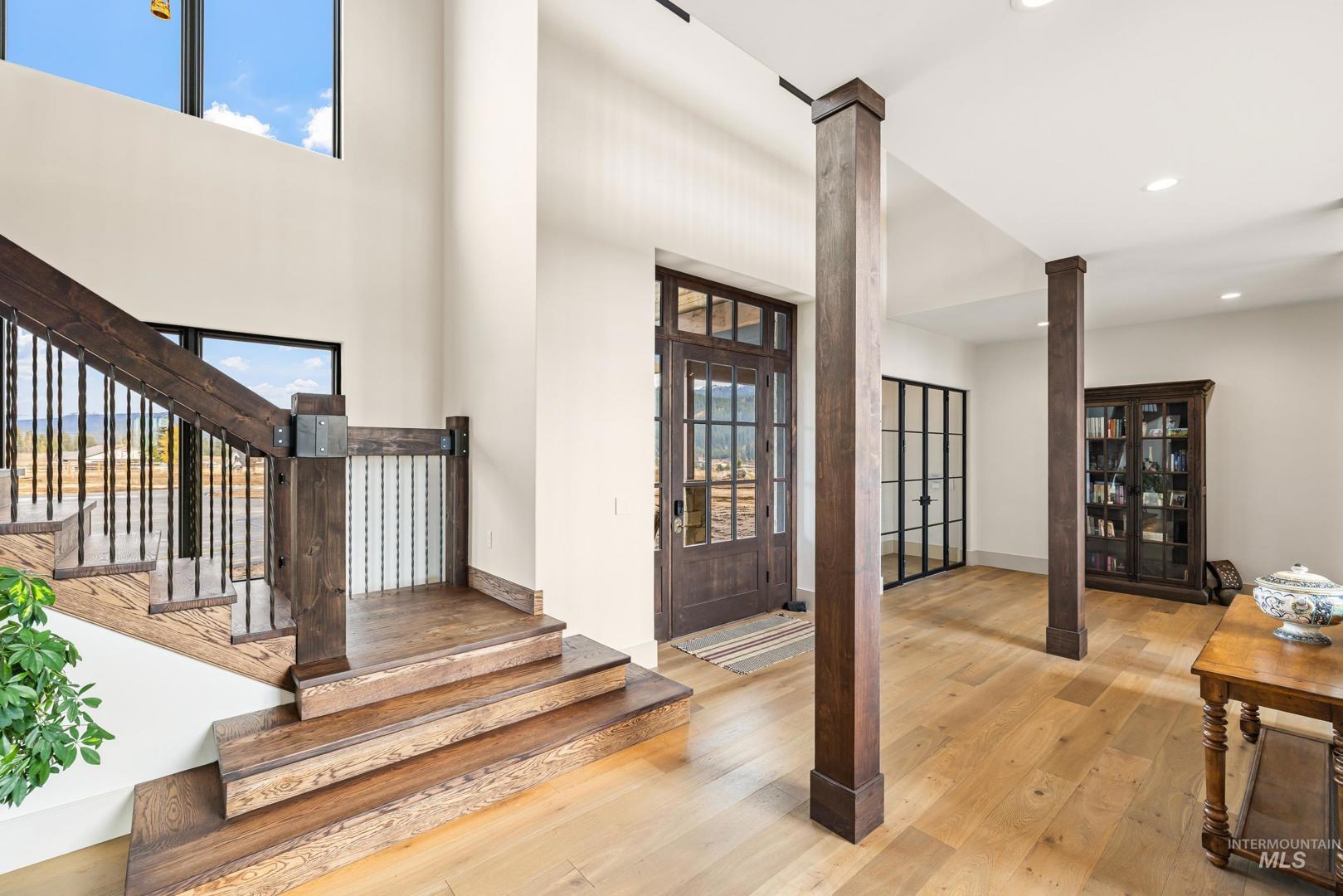 Exquisite in every detail, this home is a true work of art. Set on 6.59 breathtaking acres, it captures stunning natural views that create a serene, private retreat. From radiant floor heating and temperature-controlled wine storage to fully integrated smart-home technology, every feature reflects thoughtful design and exceptional craftsmanship. Custom details are found throughout, continually reminding you that this is no ordinary residence. With 5 bedrooms, 4 bathrooms, a private office, and a dedicated movie/game room, the home balances luxury and livability. The 5,600+ sqft main house lives openly and comfortably, creating warm, welcoming spaces ideal for gathering, entertaining, or simply relaxing. Car enthusiasts and hobbyists will appreciate the expansive shop with bonus room and ½ bath and the attached 4-car garage, offering abundant storage and workspace. This one-of-a-kind treasure is the kind of place that makes you want to stay forever..