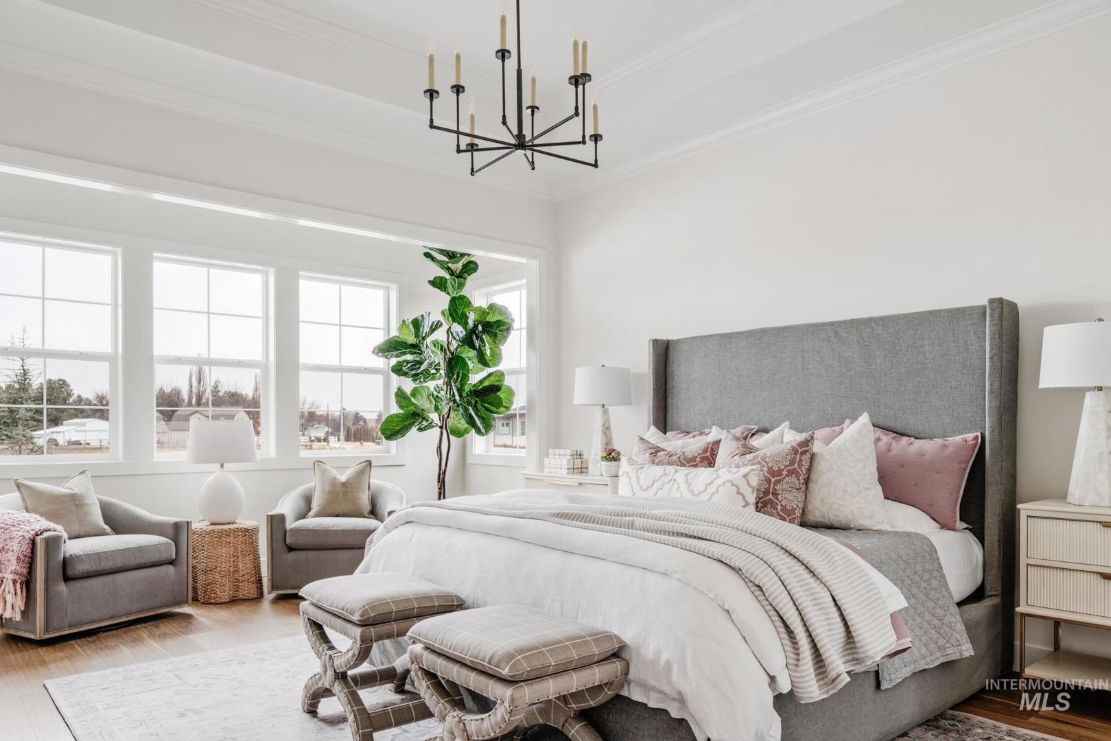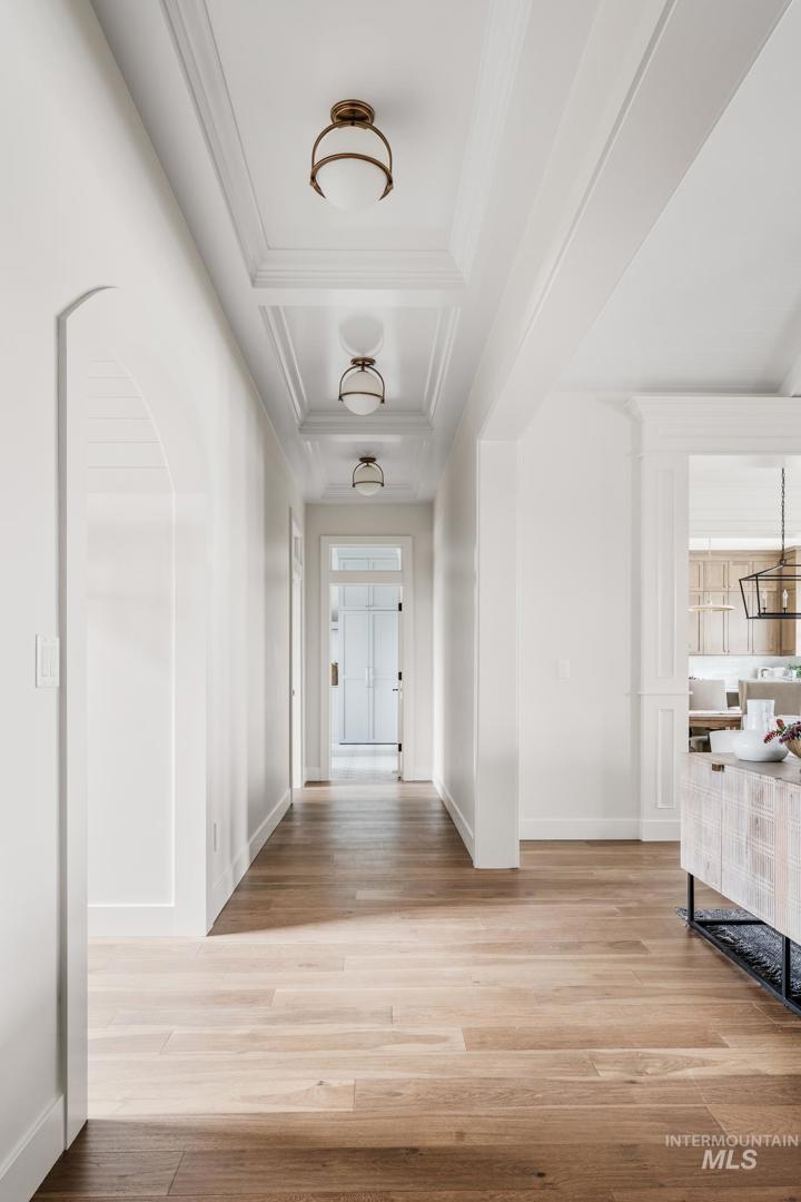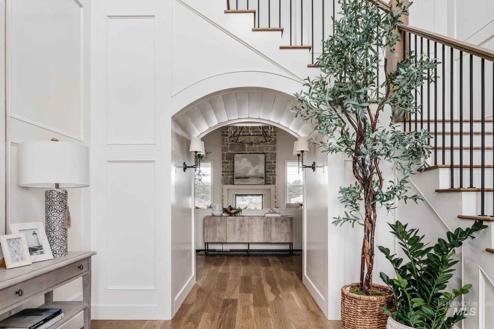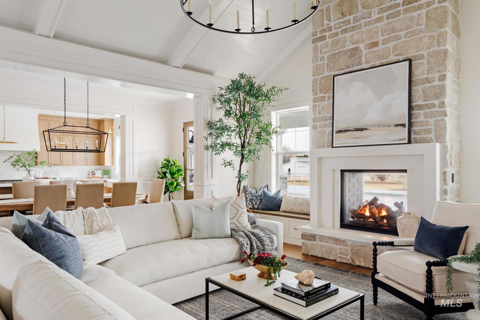 Welcome to this stunning new home situated on a desirable one-acre lot in a private gated Cavea community in North Meridian. As you enter through the arched front door, the elegant foyer with its extensive wall paneling graciously draws you into the great room with its soaring vaulted ceiling and stone fireplace. The gourmet kitchen is equipped with Thermador appliances, warm white oak custom cabinetry and a spacious center island, perfect for family gatherings or entertaining guests. The dining room is the heart of the home, creating a feeling of connection between spaces while offering stunning views of the surrounding landscape. The luxurious master suite features a spa-like bathroom and custom closet. Five additional well-appointed bedrooms boast high-end millwork finishes and fixtures throughout. The expansive yard and patio area, complete with a sparkling pool, spa, outdoor fireplace, fire pit, and BBQ kitchen, provide the perfect setting to relax and unwind in the warm Idaho sunshine. Exterior pictures are similar to the finishes, interior finishes represent the actual finishes. Feel free to check out Clark and Co`s newest showroom just across the street located at 1748 W Island Green Drive, Meridian ID 83646.