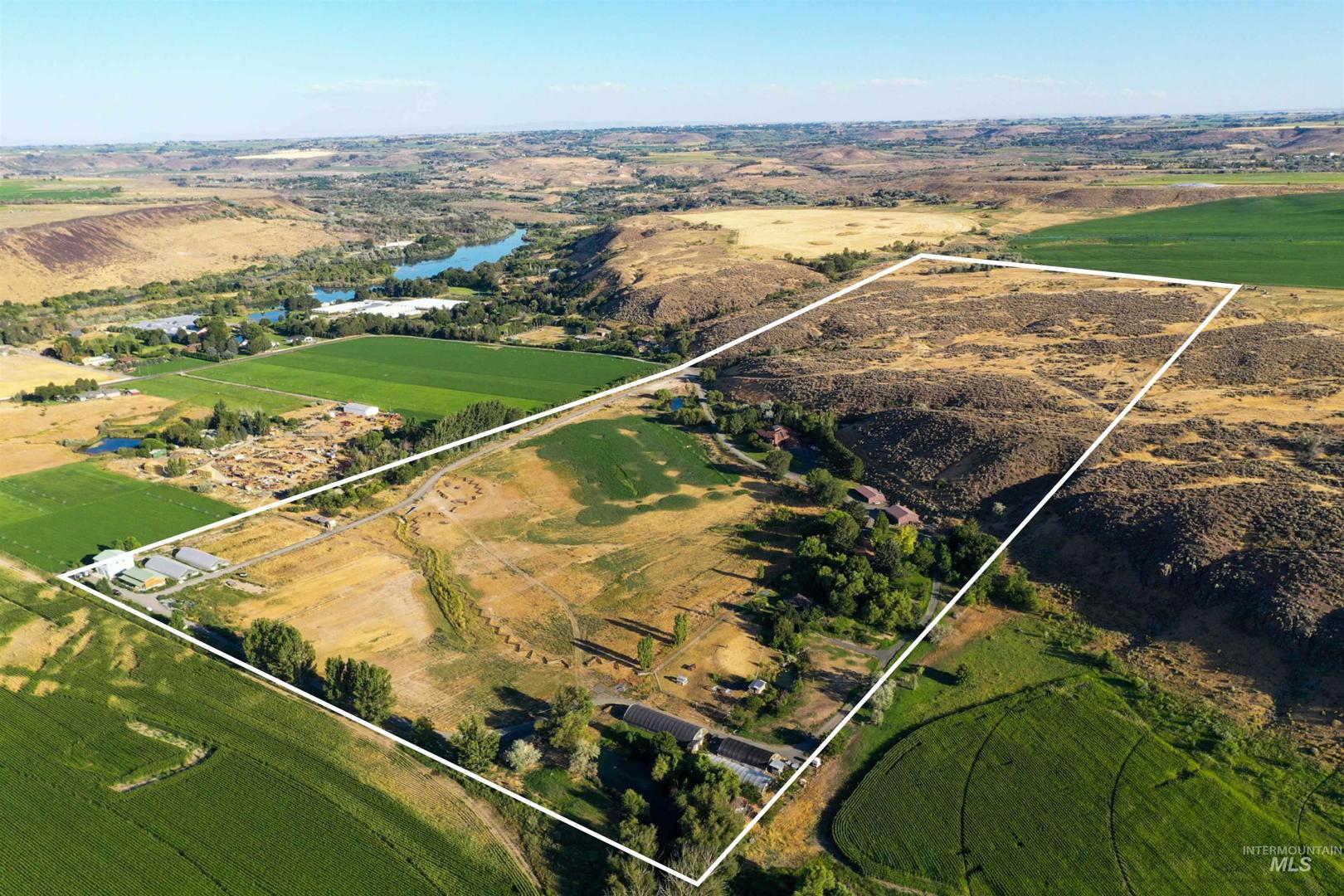 Discover 77 acres in the magical Hagerman Snake River Valley, with geothermal hot water rights and Banbury Pipe Company shares. This property features a 7,627-sf residence, five greenhouses, geothermal wells, natural hot spring pools, three additional geothermal serviced homes, a wash pack facility, and shops. Opportunities for sustainable farming, upland game, and waterfowl development await you. Ideal for serene living and a thriving personal agricultural operation.