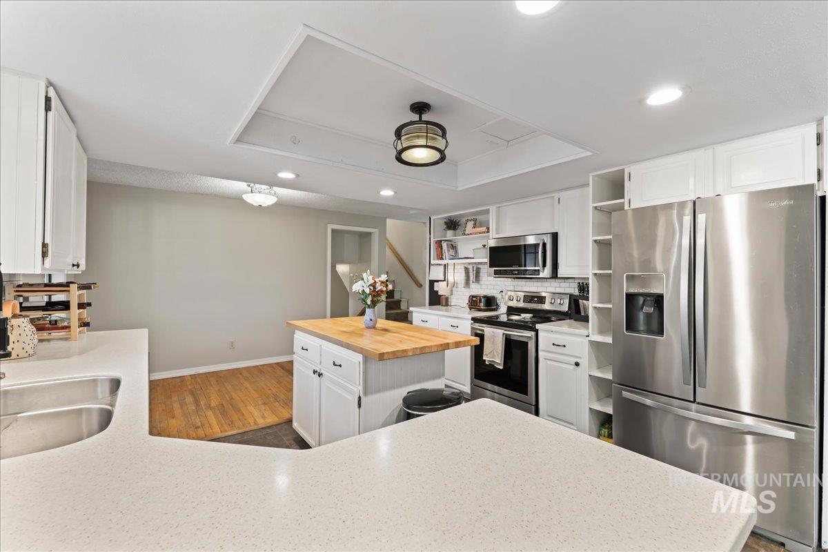 Experience comfort, character, and space in this beautifully appointed home. The inviting living room features a gas fireplace, an elegant mantel, and striking exposed wood trusses that create a warm and timeless atmosphere. The kitchen offers generous cabinetry and an ideal layout for the home chef who enjoys cooking and entertaining. All bedrooms are spacious, with the primary suite offering a standout retreat complete with a wood-burning fireplace and a private ensuite bathroom. The outdoor space is just as impressive, featuring mature landscaping, thoughtful shading, and a large patio centered around a built-in fire pit—perfect for hosting and relaxing. Additional features include a two-car garage with a dedicated storage room and convenient RV parking along the side of the property. This home blends comfort and functionality in a way that’s hard to find. Schedule your private showing today.
