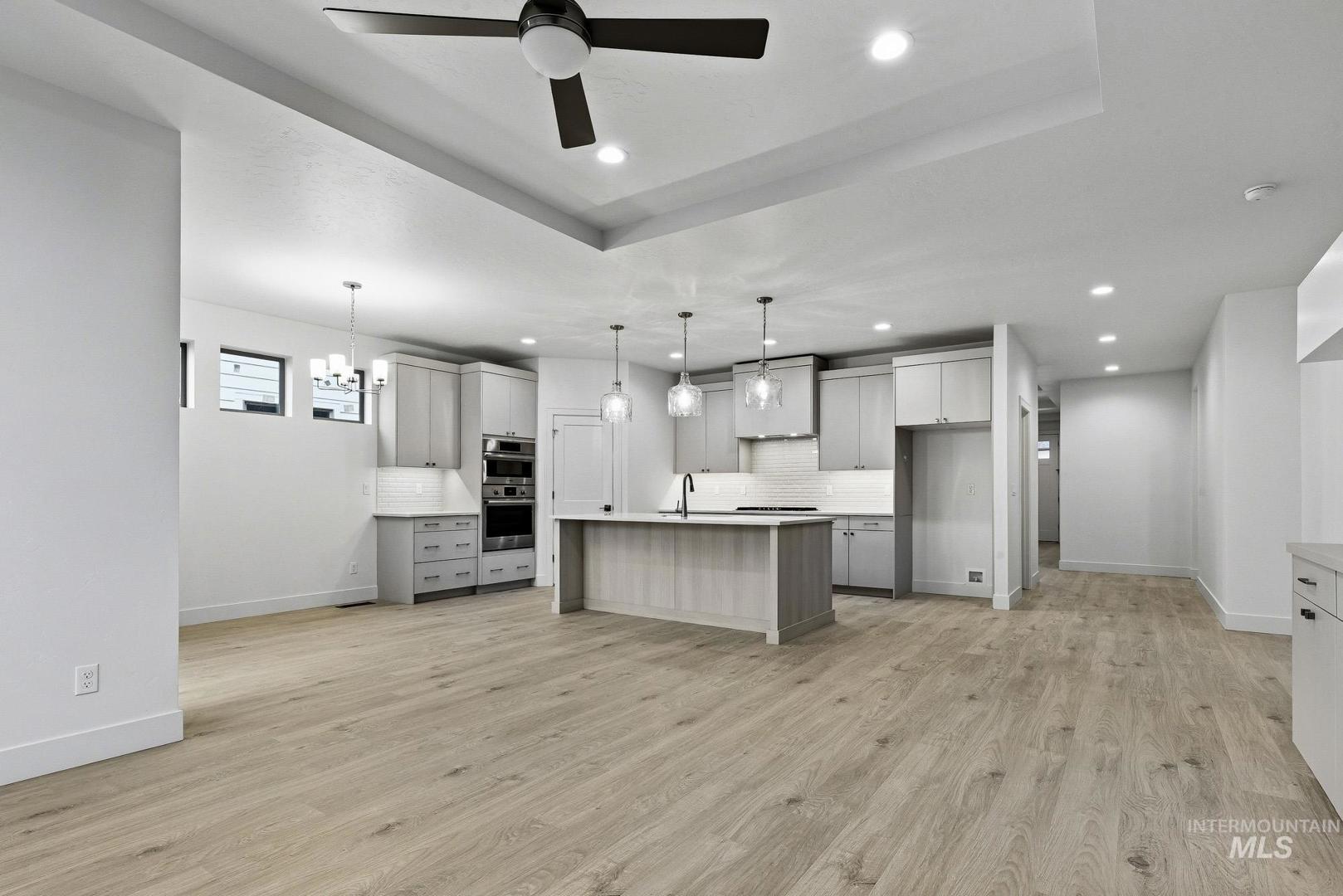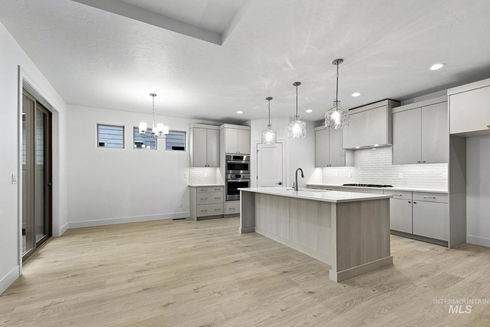 Glacier model located in the newest gated community in Star, offering resort-style amenities including pickleball courts, community pool, and scenic walking paths. This thoughtfully designed single-story home spans 2,064 sqft with 4 bedrooms and 2.5 baths. The gourmet kitchen is outfitted with Bosch appliances, quartz counters, a butler’s pantry, and high-end finishes. Soaring 9-ft ceilings, an open floor plan, and adjacent dining and living areas make this home ideal for both entertaining and everyday living. Enjoy the covered patio, full landscaping with sprinklers, and a deep three-car garage. Modern elegance meets functionality seamlessly throughout this residence. Builder Incentive up to 20k, call for more details! *Photos Similar MODEL HOME open Fri-Sun 1-5pm 9675 Snow Wolf - Zoned for new Elementary School opening Fall 2026
