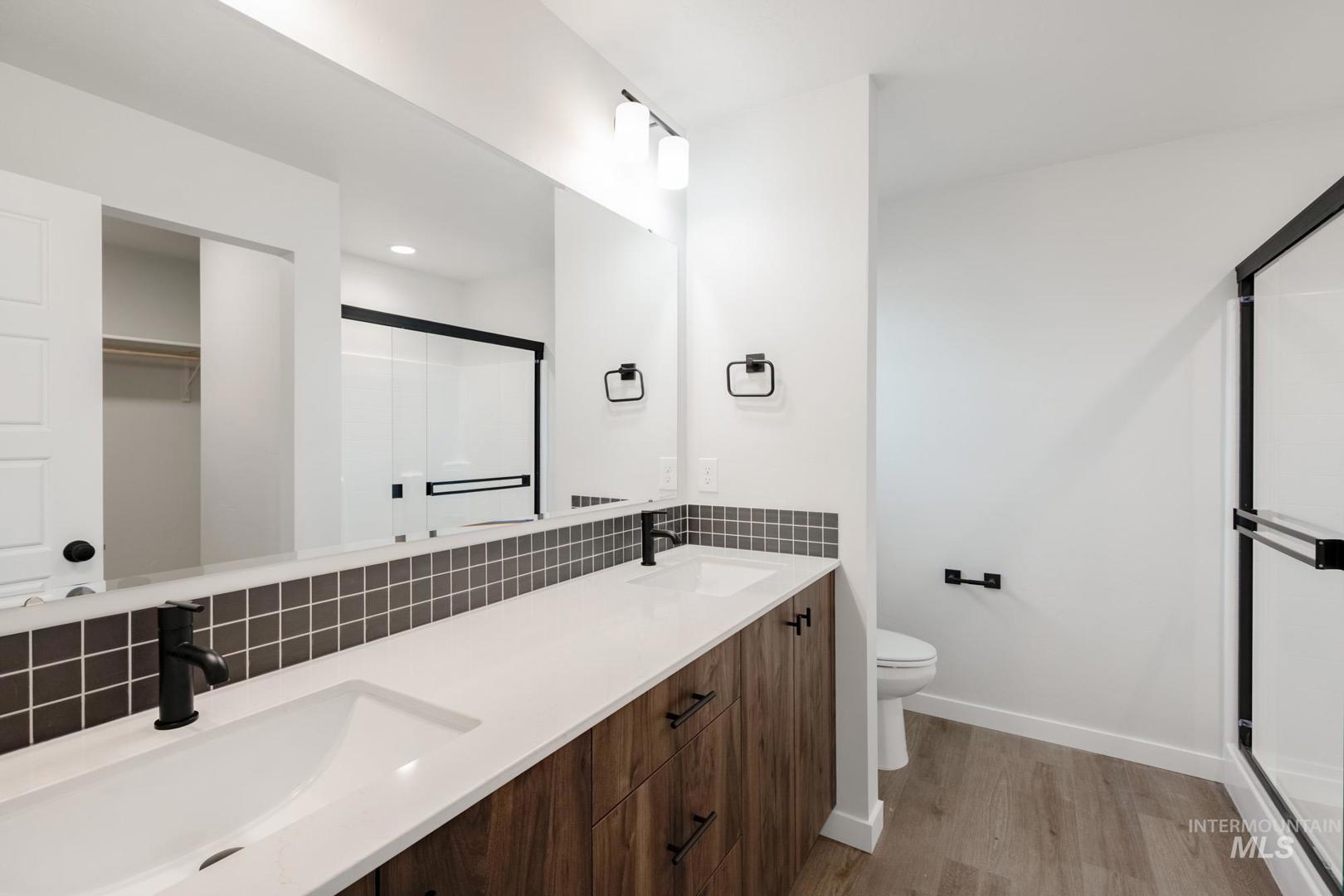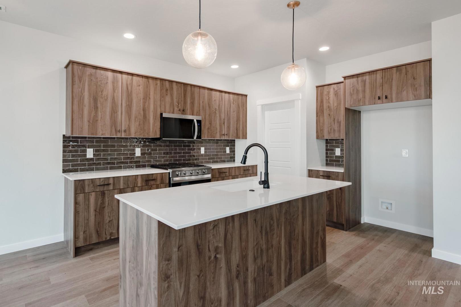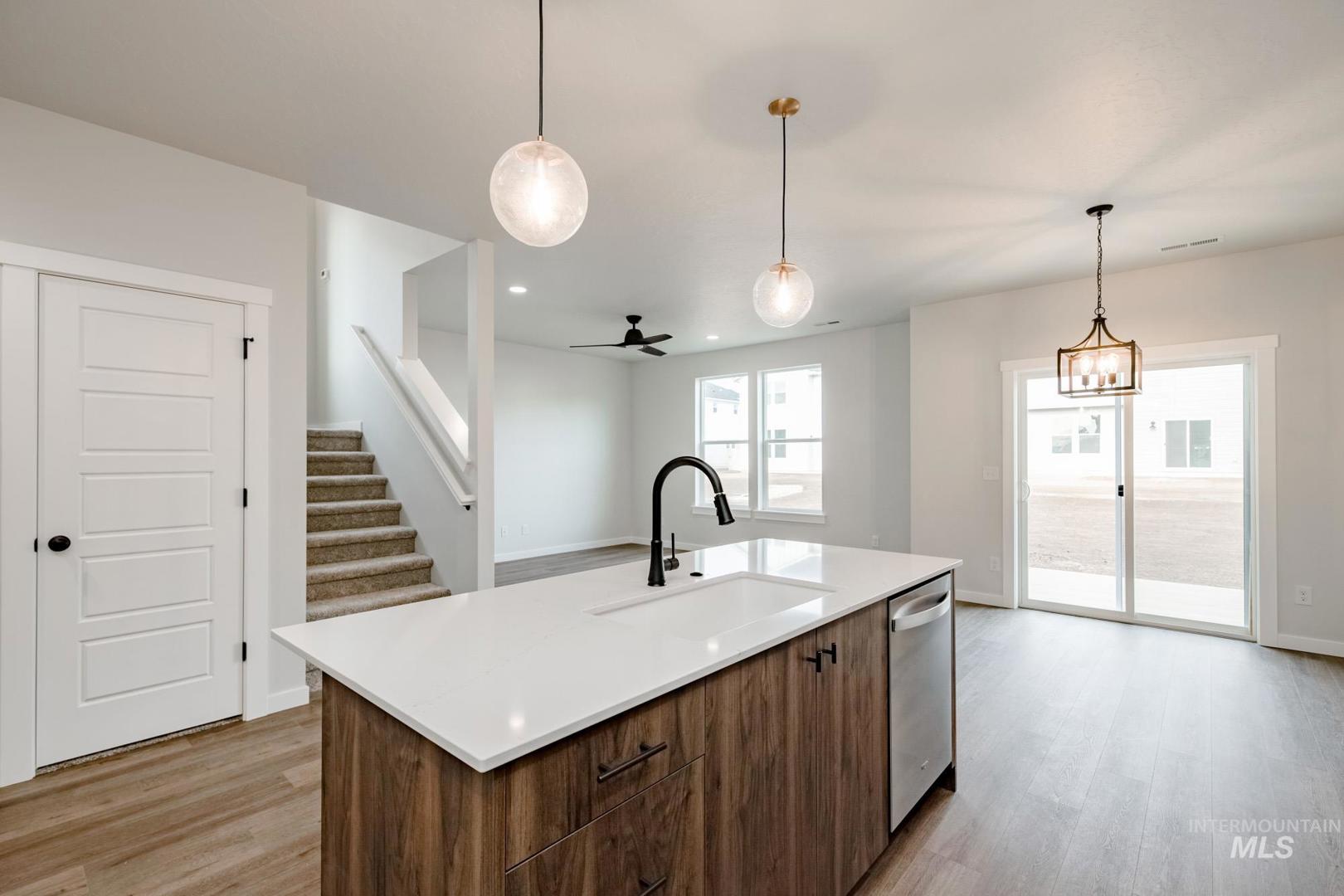 Get up to $30K now thru 12/31/2025 with the Festival of Homes Promo! This brand new home located in vibrant Star, Idaho welcomes you with open arms. The Hugo 1650 is endearingly charming and reassuringly practical. The main level welcomes occupants and guests alike with open and friendly living spaces. The kitchen boasts upgraded finishes, including stainless steel appliances, a gas range, and stylish solid surface countertops. Easy access to the yard is just right outside of the dining room. Head upstairs where a primary suite spans the entire rear of the home and contains a walk-in closet and spacious en suite bathroom. The two other bedrooms and the laundry room are also situated upstairs along with a full bathroom. The garage offers plenty of space to park cars and toys or use as storage. A versatile layout provides endless possibilities for customizing the home to suit your needs. With thoughtful touches throughout, the Hugo is designed to enhance your lifestyle. You`ll quickly feel right at home. Potential RV parking available. Photos are of the actual home!