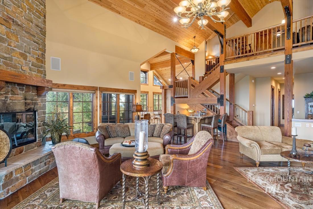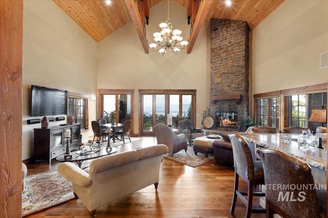 Luxury ski in-ski out mountain estate in Tamarack`s Whitewater Estates. The natural interior design includes antler light fixtures, stunning great room with rock fireplace, & tile floors. The gourmet kitchen highlights stainless Wolf appliances, granite counters, an overlay built-in fridge, & wet bar. Master suite has a corner fireplace, jetted tub, & walk-in shower. Home also features a ski-gear room, elevator, & rec room. Relax on the outdoor covered patio in the hot tub or next to the outdoor fireplace.