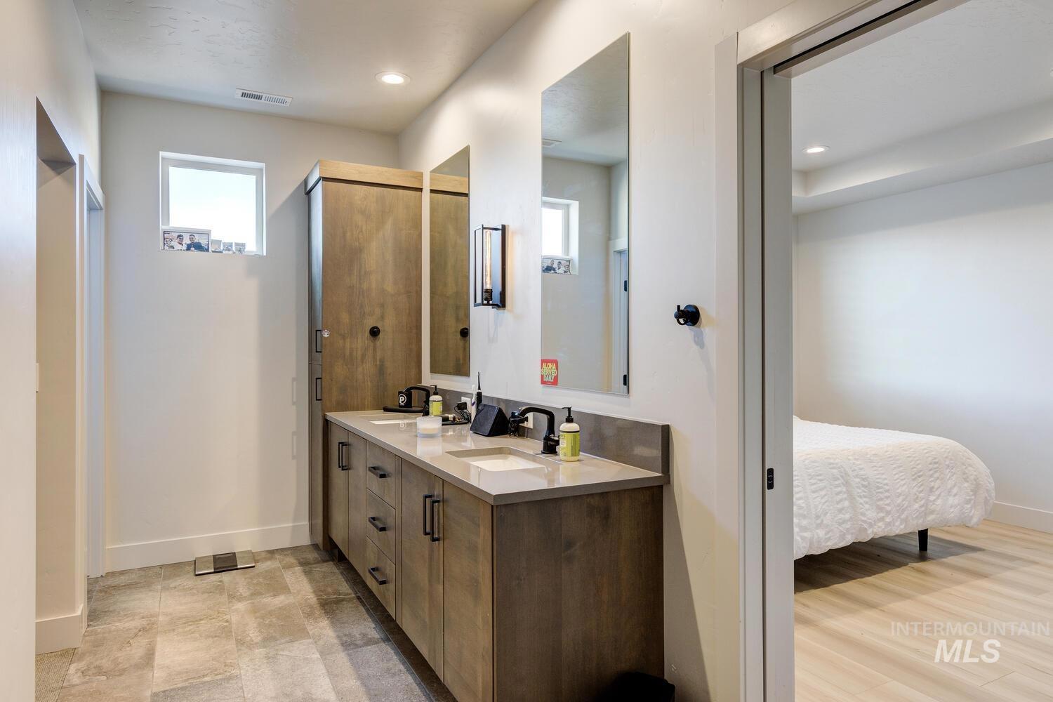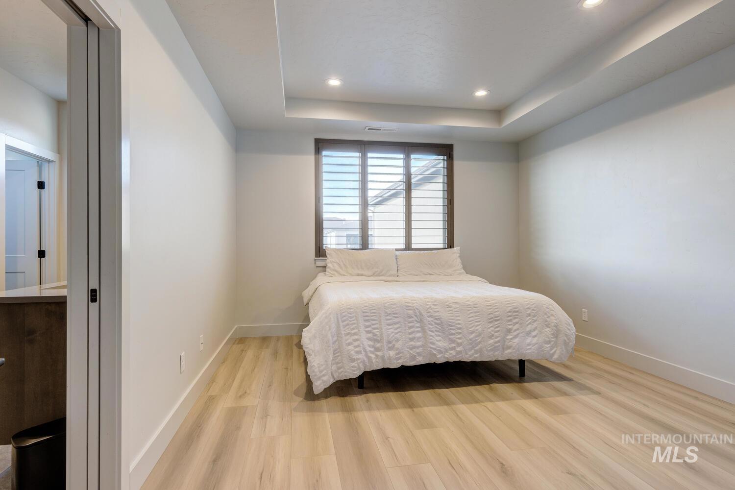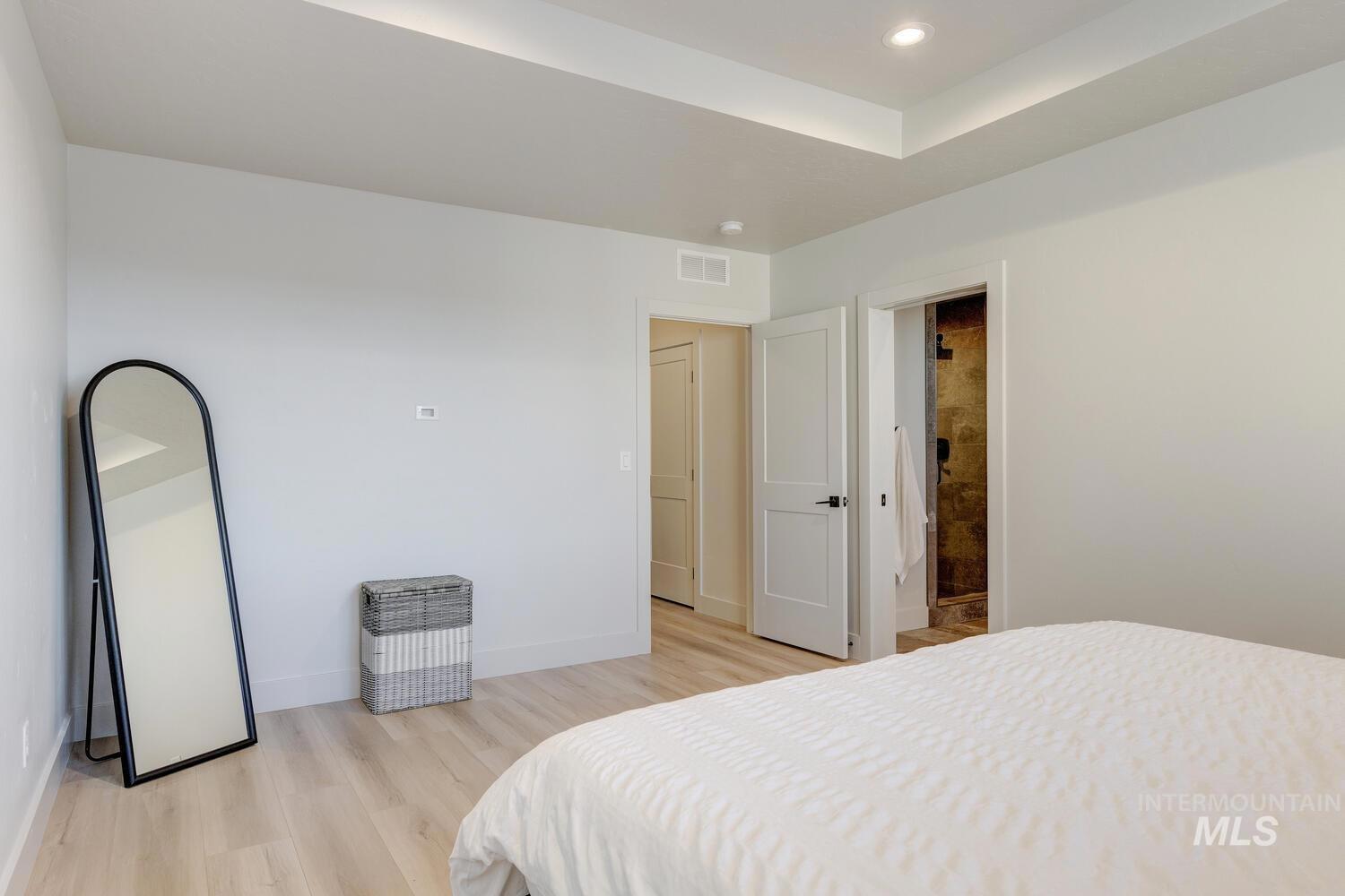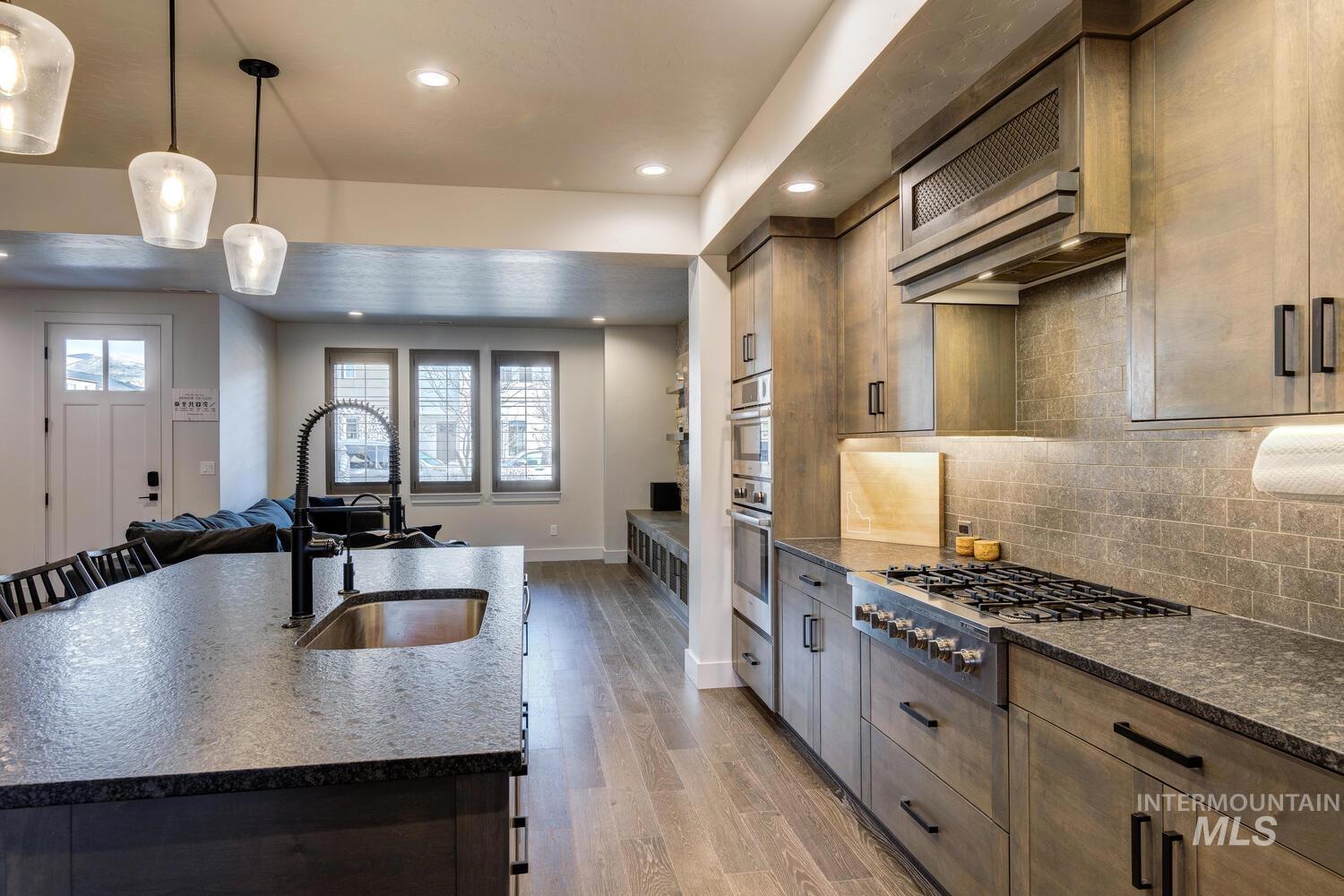 Welcome to this stunning 3-bedroom, 2.5-bath home in the heart of Harris Ranch, one of East Boise’s most desirable communities. With quick access to downtown Boise, shopping, wildlife, the Boise River, Greenbelt, and miles of walking and biking paths, this location perfectly blends convenience with the outdoor lifestyle. This light and bright 2-story home offers an open 2,100 sq. ft. layout with large picture windows flooding the space with natural light. The spacious living area features a striking stone accent wall with built-in cabinetry and floating shelves, plus a built-in tech center/office is ideal for work, hobbies, or extra storage. The beautifully designed kitchen includes granite countertops, a full tile backsplash, stainless steel appliances, and a 6-burner industrial range. The powder bath also features a stylish stone wall. Upstairs, the generous primary suite includes quartz countertops, tile flooring, a full tile shower with built-in bench, and a Euro-glass door. Two additional bedrooms and a full bath complete the upper level. Enjoy the outdoors on your spacious private courtyard or relax on the inviting front patio. The 2 car garage includes an attached 10X10 shop space for storage or projects. A true East Boise gem with modern style, natural light, and unbeatable access to the Treasure Valley’s best amenities.