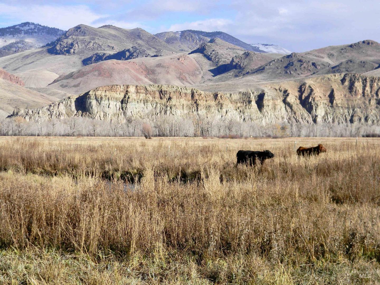 Located in the heart of Idaho, this remarkable 1,480-acre ranch offers an unparalleled production opportunities, along with a private hunting mecca. The ranch has with 899.6 acres of water rights, with 1,242 acres of water shares with gravity flow irrigation. The land boasts abundant natural resources and scenic beauty, bordering the Salmon river with two spring creeks flowing through the ranch. Wildlife is a constant presence, with elk, deer, big horn sheep, turkey, and the fall brings large flights of ducks and geese. The topography and meadows are ideal for cattle grazing and hay production, which makes this such a unique ranch. Currently running approx. 500 head. Three homes and all the ranch facilities needed to operate one of the most productive ranches for the size. The landscape is a picturesque mix of meadows, cottonwood river ground with the Frank Church Wilderness looming in the distance to the northwest.