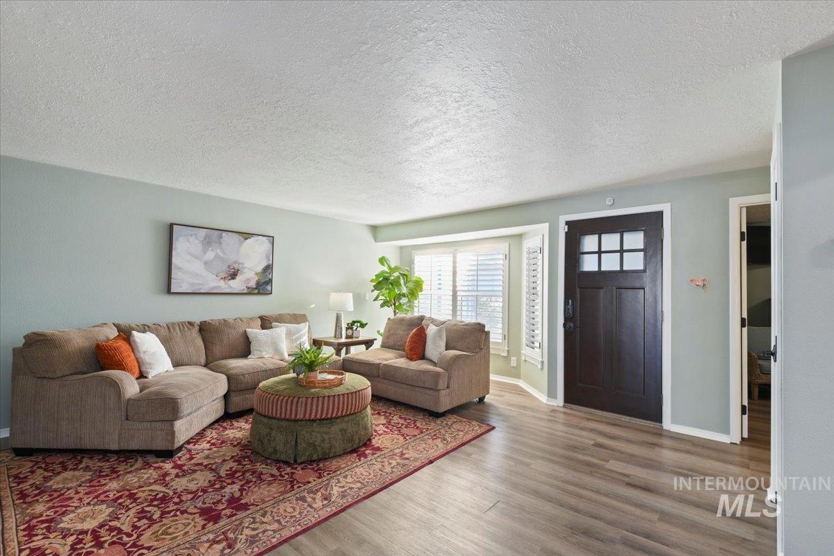 This inviting single-level townhome offers an easy, low-maintenance lifestyle in a quiet Meridian pocket where golf carts are a common sight — and there’s no HOA. Inside, the layout feels bright and functional, centered around an updated kitchen featuring quartz counters, custom tile work, and a distinctive hammered copper hood. The kitchen opens to the main living and dining areas, creating a comfortable flow for daily living. Throughout the home you’ll find hard-surface flooring, plantation shutters, and freshly updated interior paint. The primary bedroom includes marble countertops and a walk-in tile shower for a refined touch. The third bedroom offers versatility and can serve well as an office or guest space. The backyard is fully fenced and provides a private outdoor setting with a refinished deck and a gas line ready for grilling. A new A/C unit installed in 2022 adds convenience and peace of mind. Located just a short drive from Lakeview Golf Course, plus nearby shopping, dining, and highly rated schools, this property works beautifully as a full-time home, an easy lock-and-leave option, or even a potential short-term rental. It’s a simple, comfortable, move-in-ready place to enjoy everything Meridian has to offer.