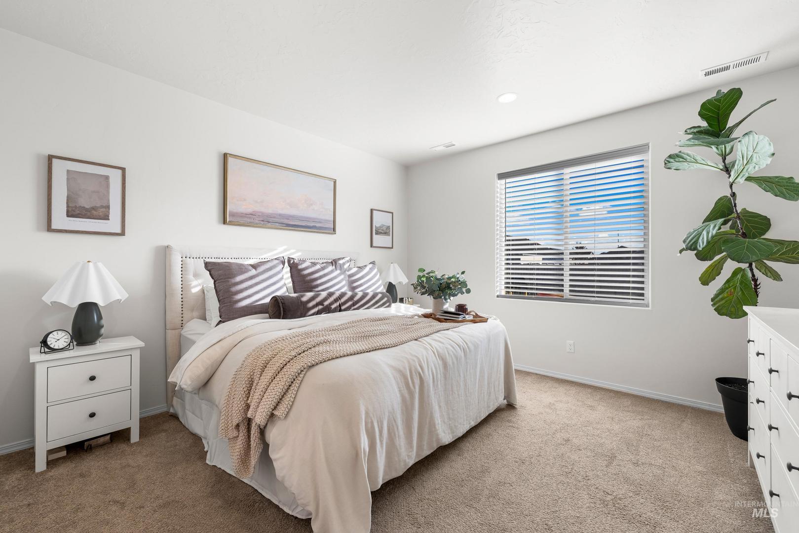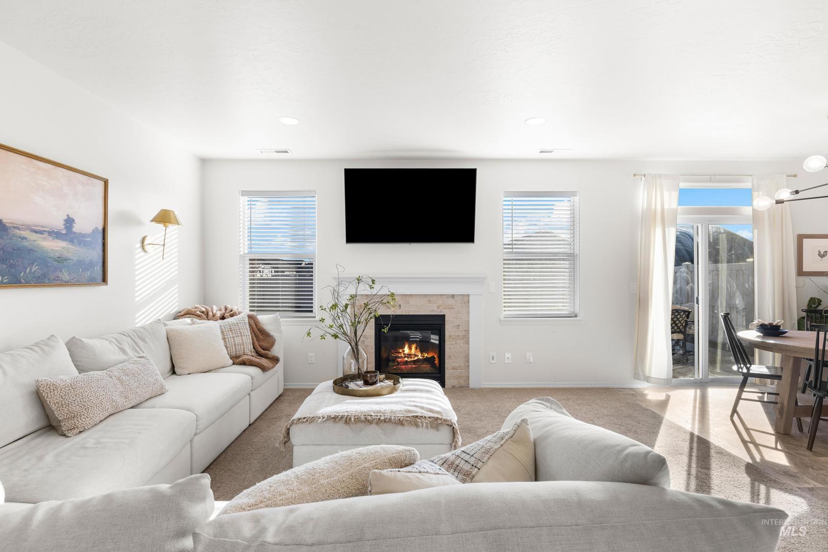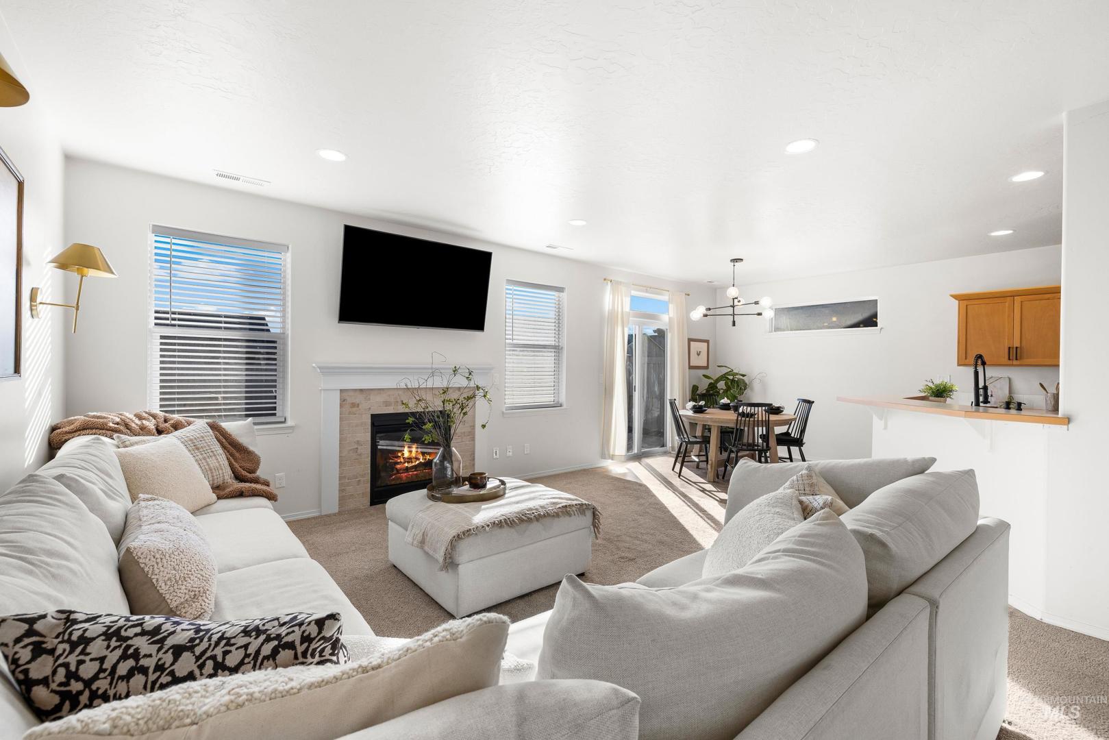 Nestled in a quiet and friendly Nampa neighborhood, this well-kept 3 bed, 2 bath home offers comfort, convenience, and charm. Enjoy an ideal location within walking distance to a school and park, and just minutes from Lake Lowell, local markets, restaurants, wineries, and Nampa`s quaint and walkable downtown area. A welcoming front porch leads into an airy, light-filled interior with neutral tones, upgraded lighting and hardware, a spacious great room, and a beautifully framed gas fireplace. The highly sought-after split-bedroom layout provides added privacy, while the Primary Suite features ample space, dual vanities, extra shelving for additional storage, a water closet, walk-in shower, and generous walk-in closet. Designed for connection, relaxation, & recreation, the spacious backyard offers a double gate opening to a concrete RV parking pad, a large fire pit area, planter boxes for gardening, and even space for chickens. A concrete patio invites outdoor meals, gatherings, slow evenings at home. This home is an incredible opportunity for the savvy homeowner and investor alike.