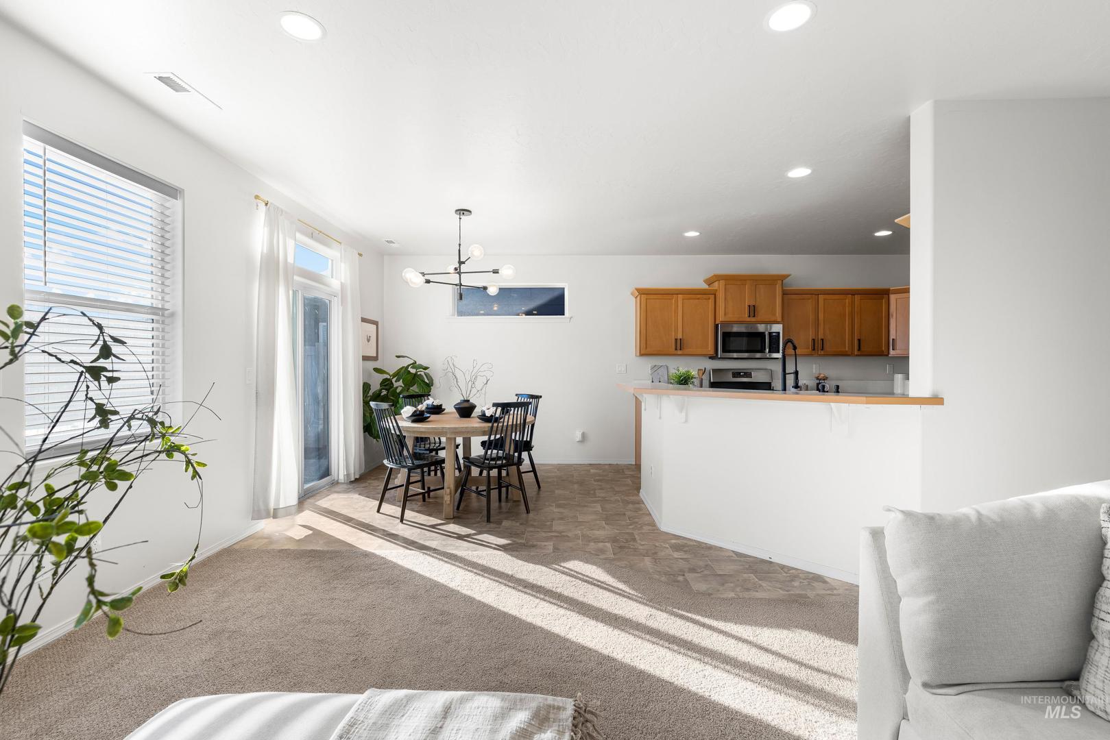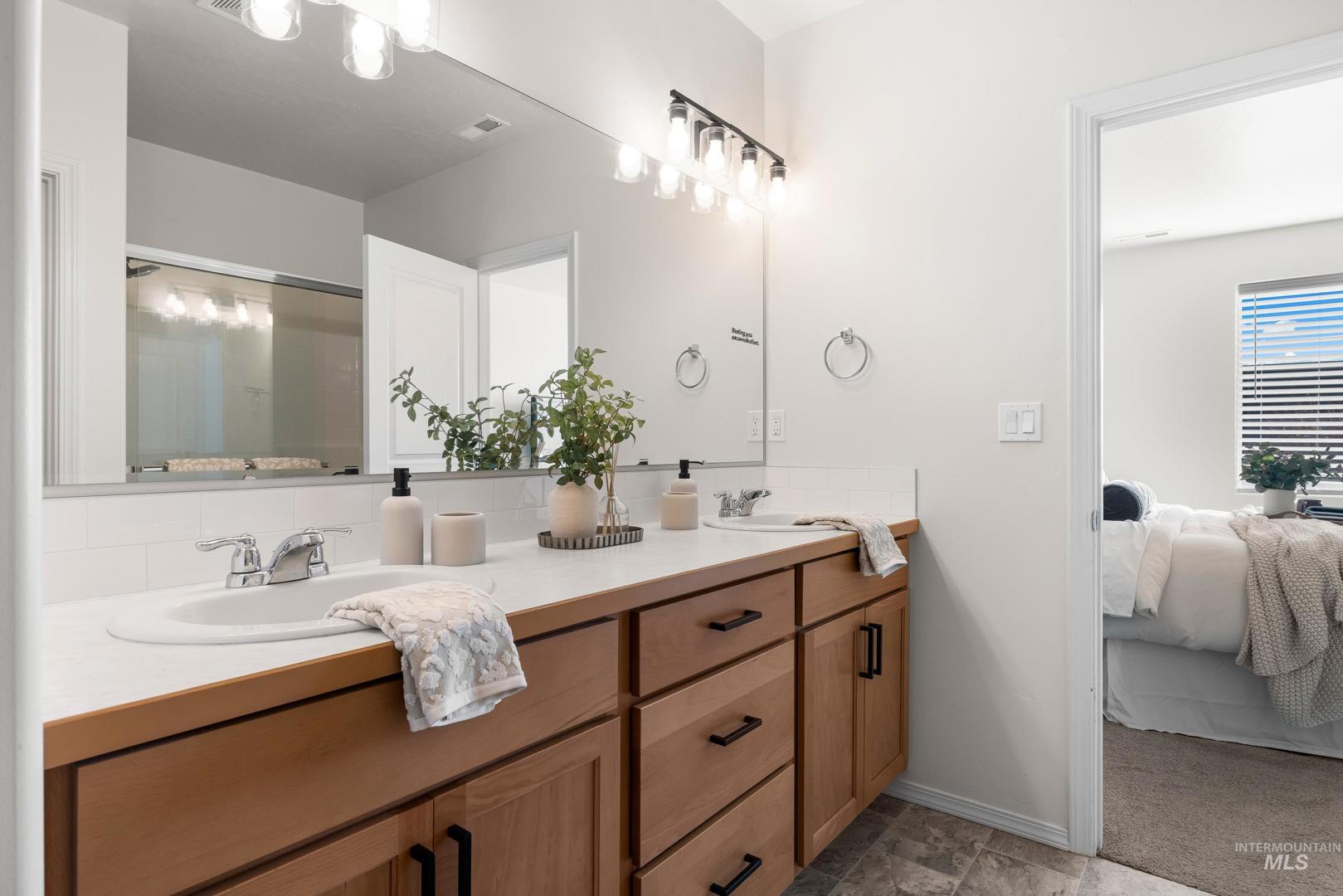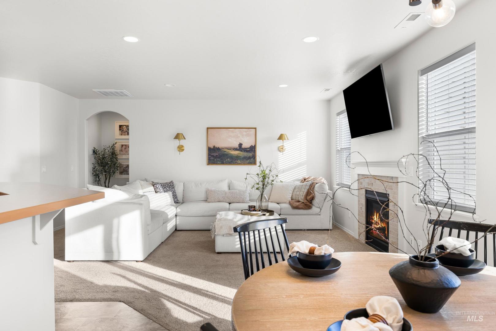 Nestled in a quiet and friendly Nampa neighborhood, this well-kept 3 bed, 2 bath home offers comfort, convenience, and charm. Enjoy an ideal location within walking distance to a school and park, and just minutes from Lake Lowell, local markets, restaurants, wineries, and Nampa`s quaint and walkable downtown area. A welcoming front porch leads into an airy, light-filled interior with neutral tones, upgraded lighting and hardware, a spacious great room, and a beautifully framed gas fireplace. The highly sought-after split-bedroom layout provides added privacy, while the Primary Suite features ample space, dual vanities, extra shelving for additional storage, a water closet, walk-in shower, and generous walk-in closet. Designed for connection, relaxation, & recreation, the spacious backyard offers a double gate opening to a concrete RV parking pad, a large fire pit area, planter boxes for gardening, and even space for chickens. A concrete patio invites outdoor meals, gatherings, slow evenings at home. This home is an incredible opportunity for the savvy homeowner and investor alike.