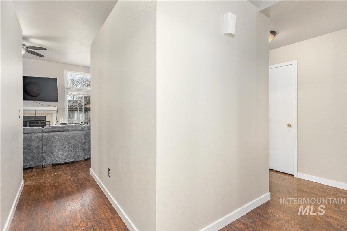 Welcome to this charming single-level home, beautifully updated & centrally located in one of Boise’s most convenient pockets. Fresh interior paint on doors, trim, walls & ceilings gives the home a crisp, move-in–ready feel. Designed for flexibility, the home features 3 bedrooms plus a dedicated office w/ stunning floor-to-ceiling windows that flood the space w/ natural light. Cathedral-style ceilings enhance the living & family rooms, while the vaulted great room w/ fireplace offers a warm gathering space. The kitchen includes a breakfast bar, tile floors & stainless appliances. The primary suite features dual vanities & a walk-in closet. Enjoy peace of mind w/ the speed of fiber internet. Set on a rare .23-acre pie-shaped corner lot, the backyard offers mature landscaping, extended patio & ample room to play, garden or entertain. Nestled in a quiet cul-de-sac near walking paths, parks, schools, shopping & The Village, this home delivers comfort, charm & an ideal Boise lifestyle.