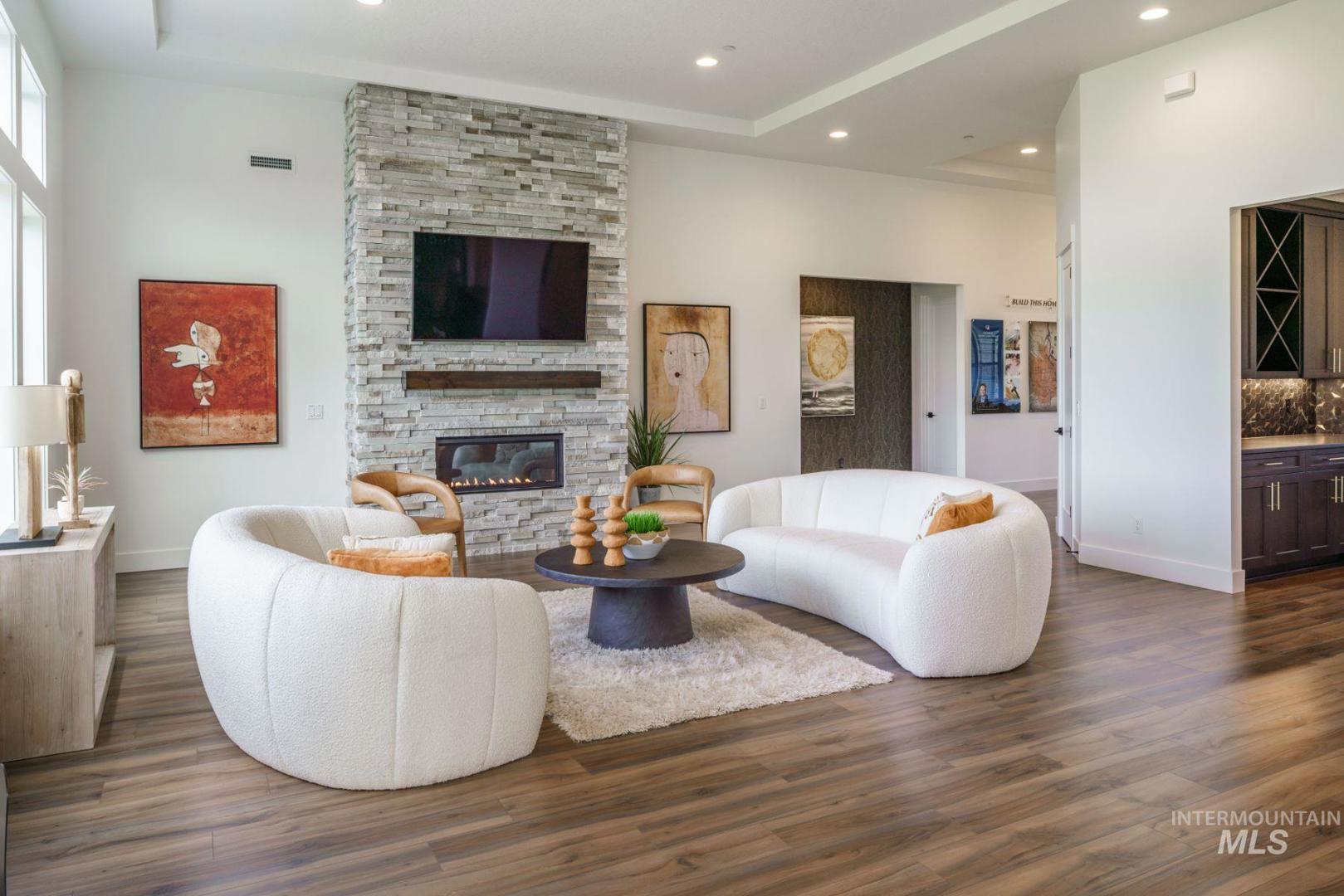Get a 4.99% (5.76% APR) on a 10/10 ARM or other financing available with Builder`s preferred lender. Call listing agent for more details. To Be Built- 6- 7 months from contract to keys. Welcome to the Shasta XXL with separate Multigenerational living quarters, impressively built by Pacific Lifestyle Homes. Thoughtfully designed, this luxury home is nestled on a Half Acre lot in the highly desirable Estates at Eagle Ridge. Boasting an impressive 4390 sqft, the main house features 4 bedrooms, 3.5 bathrooms, an formal dining room, office/den and bonus/media room. The striking great room with coffered ceilings and stunning fireplace flows effortlessly into the gourmet kitchen. Full-height cabinetry, sleek quartz countertops, large island, Bosch appliances, a walk-in pantry and butler`s pantry to connects to the formal dining room making it ideal for entertaining. The separate living quarters feature a large living room, kitchenette, bedroom, full bathroom and its own private separate entrance, garage and optional patio. Front landscaping and fencing are included in the base price. Fully personalize your home at PLH`s Design Studio with our amazing Interior Designer. ** Photos similar** Amenities are completed and include Community offers pool, clubhouse, walking paths, pickle ball court, playground. Model Home is the Shasta XXL plan- 7875 W Flathead Lake, Eagle. Open Wed-Sun 11-5PM.