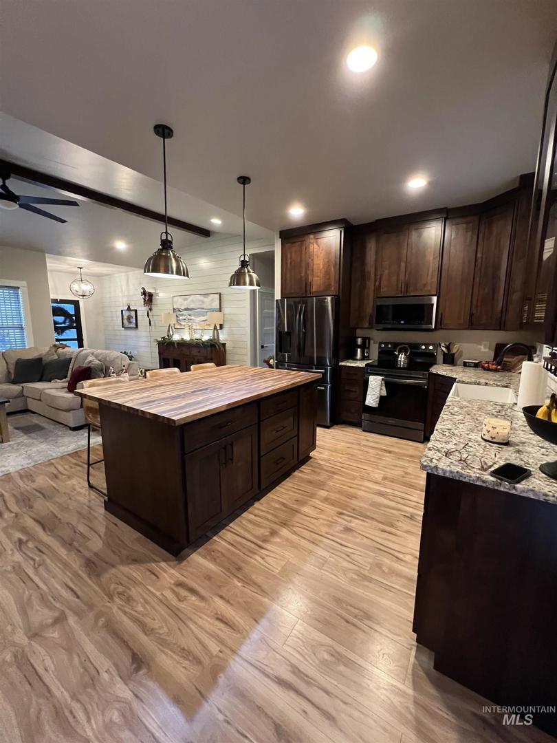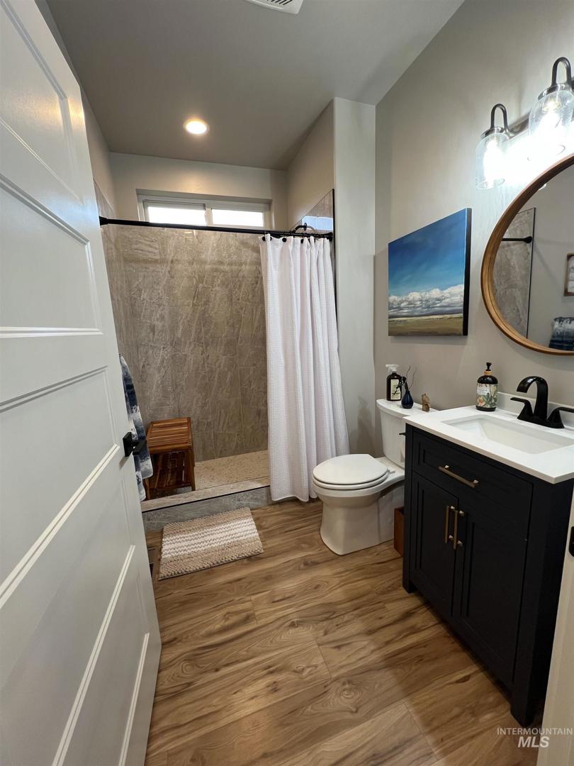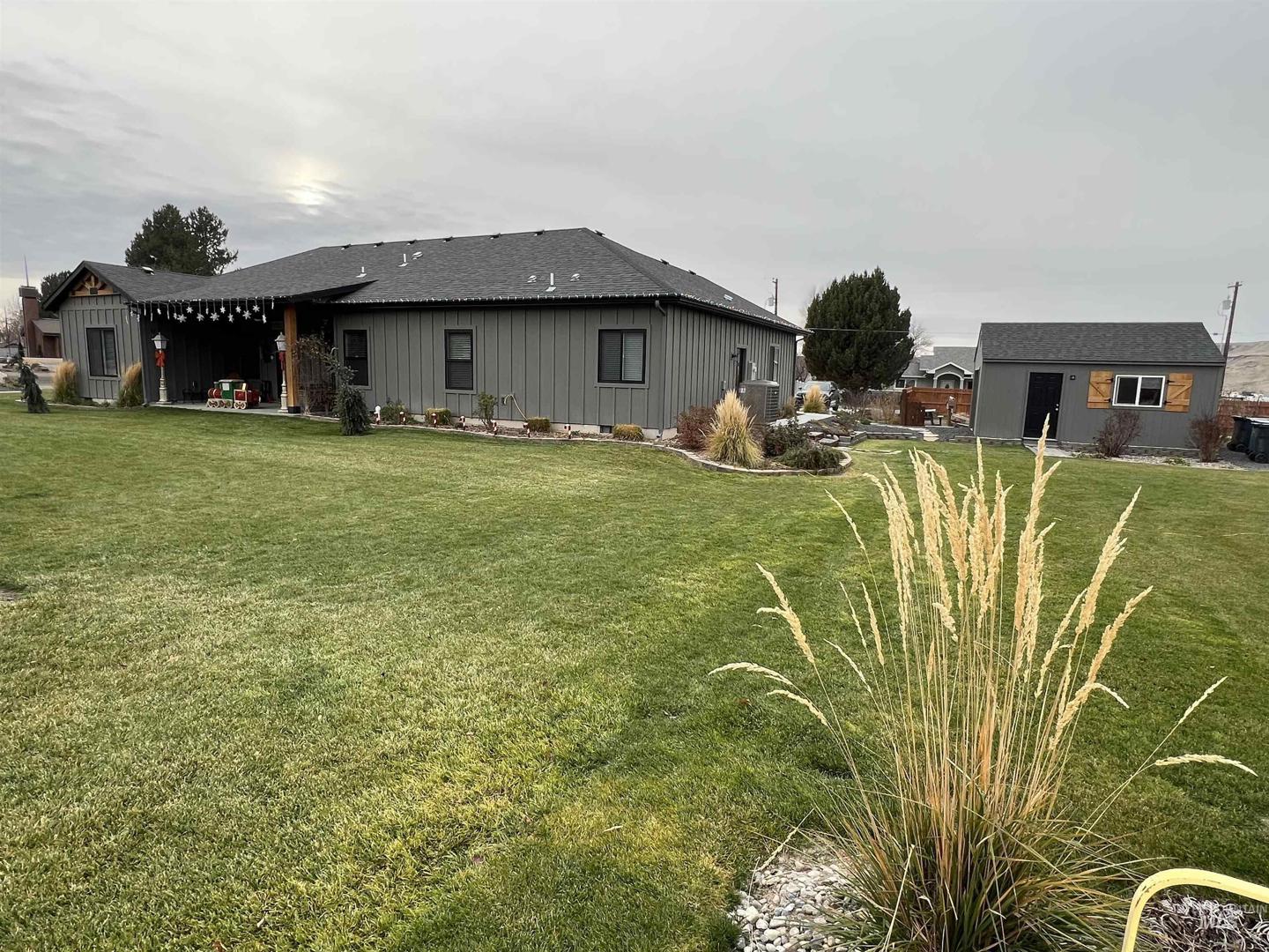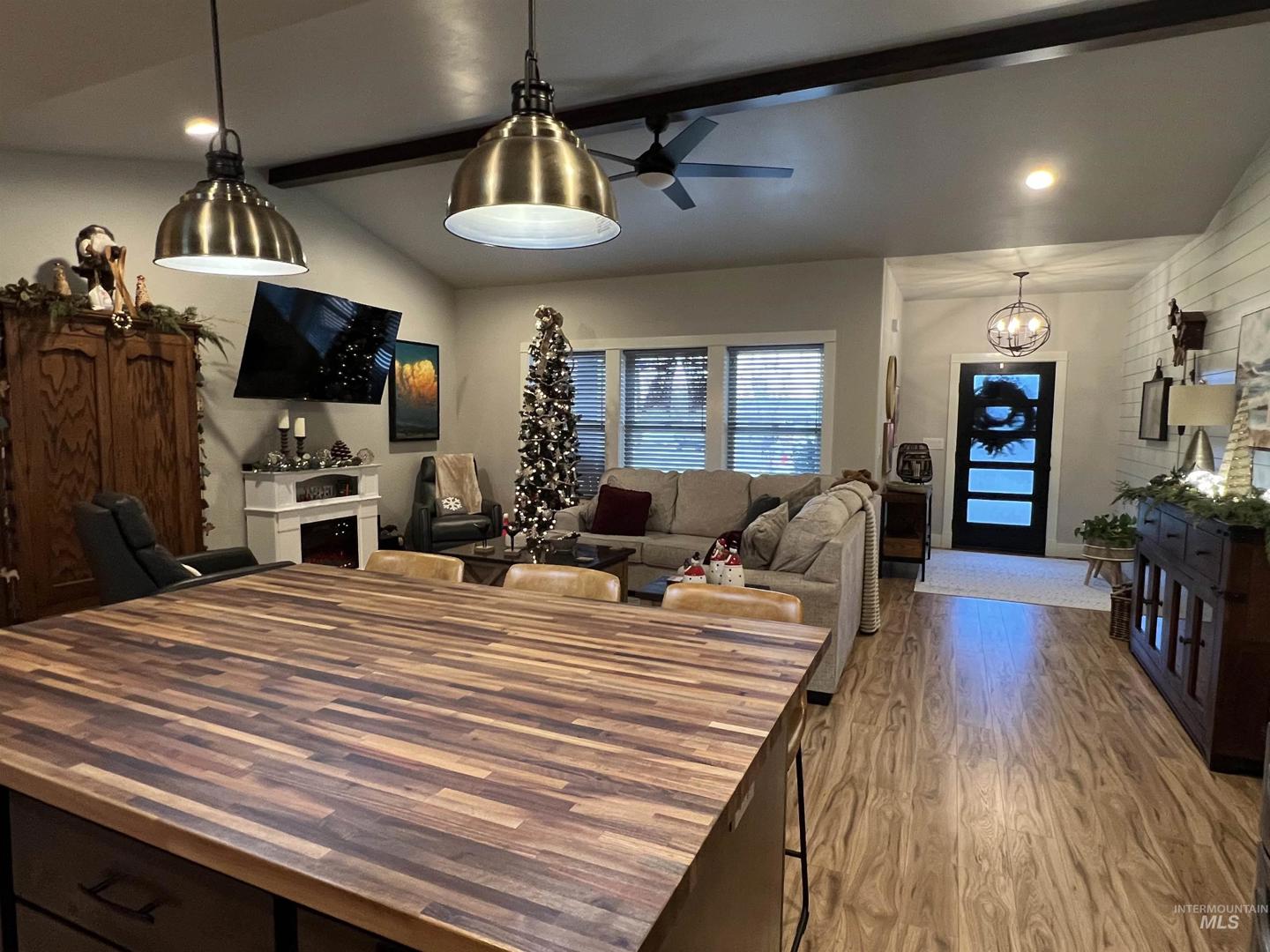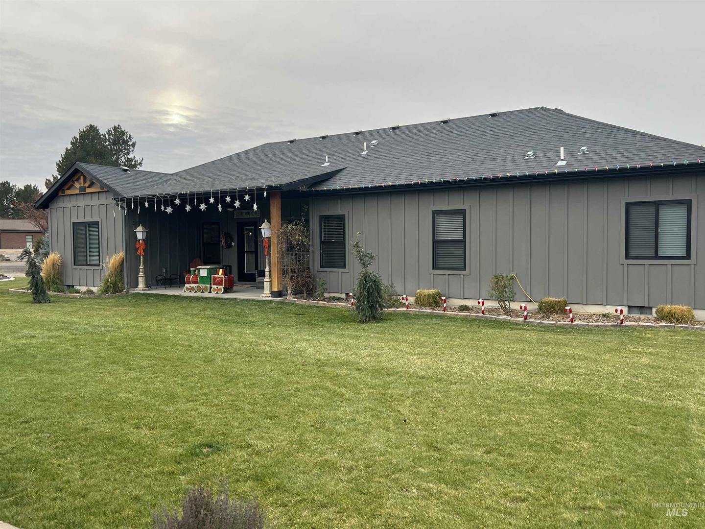 Stunning Home on 1 acre located in the heart of the Beautiful Hagerman Valley! This 2022 beautifully custom built 1724 sqft. spacious single level 3 bedroom/2 bath home offers so many welcoming features. Beginning with an Open living concept, 20` vaulted beamed ceiling in living room, Custom Built Butcher Block Island with additional under counter storage, Granite counter with rough edge, upgraded to the ceiling kitchen cabinetry with glass accents. Trey ceiling in Master Bedroom, 36" door ways & LVP flooring throughout, EXTRA storage closets/cabinets. Large Master suite with office/study or 2nd walk in closet. Master Bathroom features claw-foot bath, double vanity with black fixtures, walk in tiled shower, extra shelving in walk in closet. All bedrooms are equipped with media set up, and ceiling fans. 12 X 20 finished hobby shop/ 3rd car garage with 20-amp power. Huge RV parking area, established garden space with fruit tress and grapevines, 8 X 8 Greenhouse with power & water, 12 X 10 Garden Shed. Custom curbing with mature landscape, auto sprinkler system, extra power service avail., fencing. The home has a private community shared well, the water is provides delicious water to the home and water to pressurize irrigate the 1 acre yard. Large Driveway, front and back patio porches to enjoy the view of the nearby Snake River Canyon. THIS HOME HAS EVERYTHING YOU ARE LOOKING FOR.
