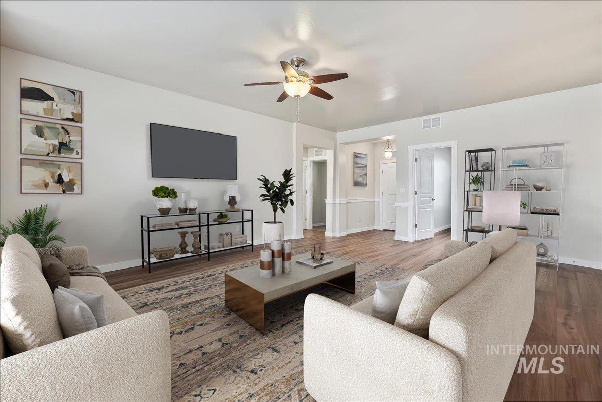 Welcome to this exceptional home offering a unique financial advantage with an assumable VA loan at an incredible 2.25% interest rate. This versatile property features a split bedroom floor plan, spacious great room, & flexible 4th bedroom that can easily serve as a home office or dedicated media room, perfect for today`s work-from-home lifestyle or entertainment needs. Outdoor enthusiasts and RV owners will appreciate the huge backyard and two potential RV parking spaces, providing ample room for your adventures on wheels. The spacious back patio creates an ideal setting for outdoor entertaining, morning coffee, or relaxing summer evenings under the Idaho sky. The location offers the best of both worlds—peaceful residential living with unbeatable convenience to everything Kuna has to offer. Situated just minutes from Downtown Kuna, you`ll enjoy easy access to local shopping and dining. Nature lovers will relish the proximity to Indian Creek and the scenic Kuna Greenbelt, ideal for walking, biking, and enjoying Idaho`s beautiful outdoors. Wine enthusiasts will appreciate being close to local wineries, while families will love the nearby BMX track and skate park. Commuters benefit from quick access to I-84, making travel throughout the Treasure Valley a breeze. Don`t miss this chance to secure both a wonderful home and exceptional financing in one of Kuna`s most convenient locations.