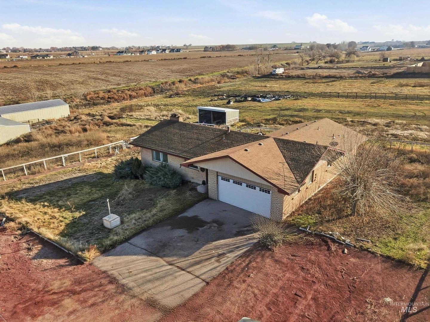 Rare 5-acre corner lot in Caldwell with county-approved land split. Spacious home offers strong upside and needs a little TLC—ideal for renovation or investment. Property features large pasture, gravity irrigation, 22x54 pull-through shop, and 48x34 barn with stalls and tack room. No HOA or CCRs. Excellent opportunity for investors, builders, or buyers seeking acreage with future potential.