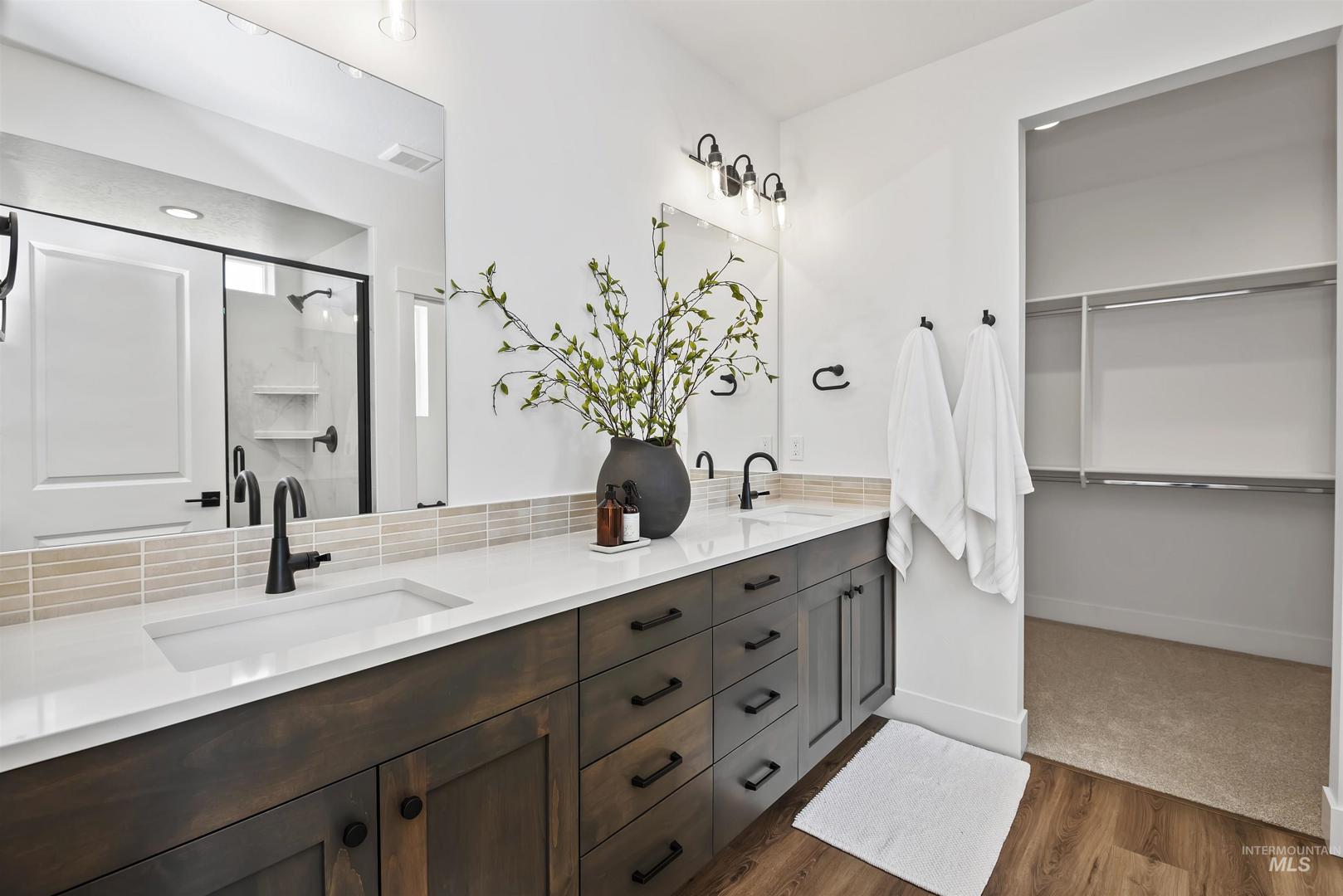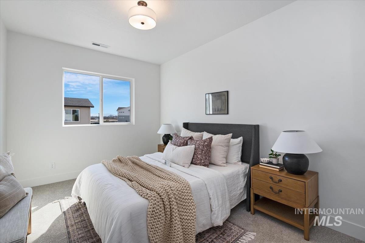 Don`t miss this stunning waterfront townhome by award winning Tresidio Homes. Located in The Villas at Crystal Springs, this peaceful luxury community near the Boise River offers quick access to the HWY 16 connector and RESORT-STYLE amenities, including a clubhouse, gym, indoor pool and hot tub, pickleball courts, and scenic park. This low-maintenance townhome overlooks a tranquil community pond, creating a serene setting from sunrise to sunset. Inside, a thoughtfully designed floorplan features a MAIN-LEVEL primary suite, three upstairs bedrooms, and a spacious bonus loft. Premium finishes shine throughout, including quartz countertops, LVP flooring, a tile walk-in shower, soft-close cabinetry, and upgraded stainless steel appliances. The main level offers 9’ ceilings for a grand, open feel. The great room and dining area captures peaceful pond views. Additional floorplans available from 1,596–2,153 sq ft-where luxury meets effortless. Stop by our Clubhouse to tour and ask about our generous Builder incentive for this home or other Tresidio homes in the area. Happy to help. BTVAI