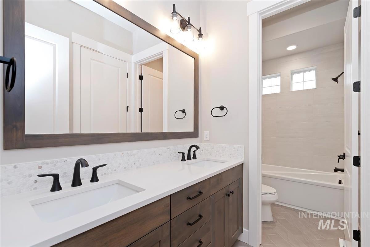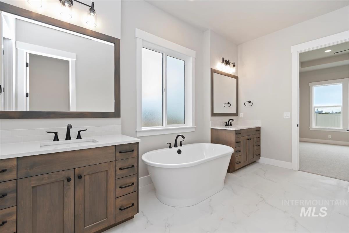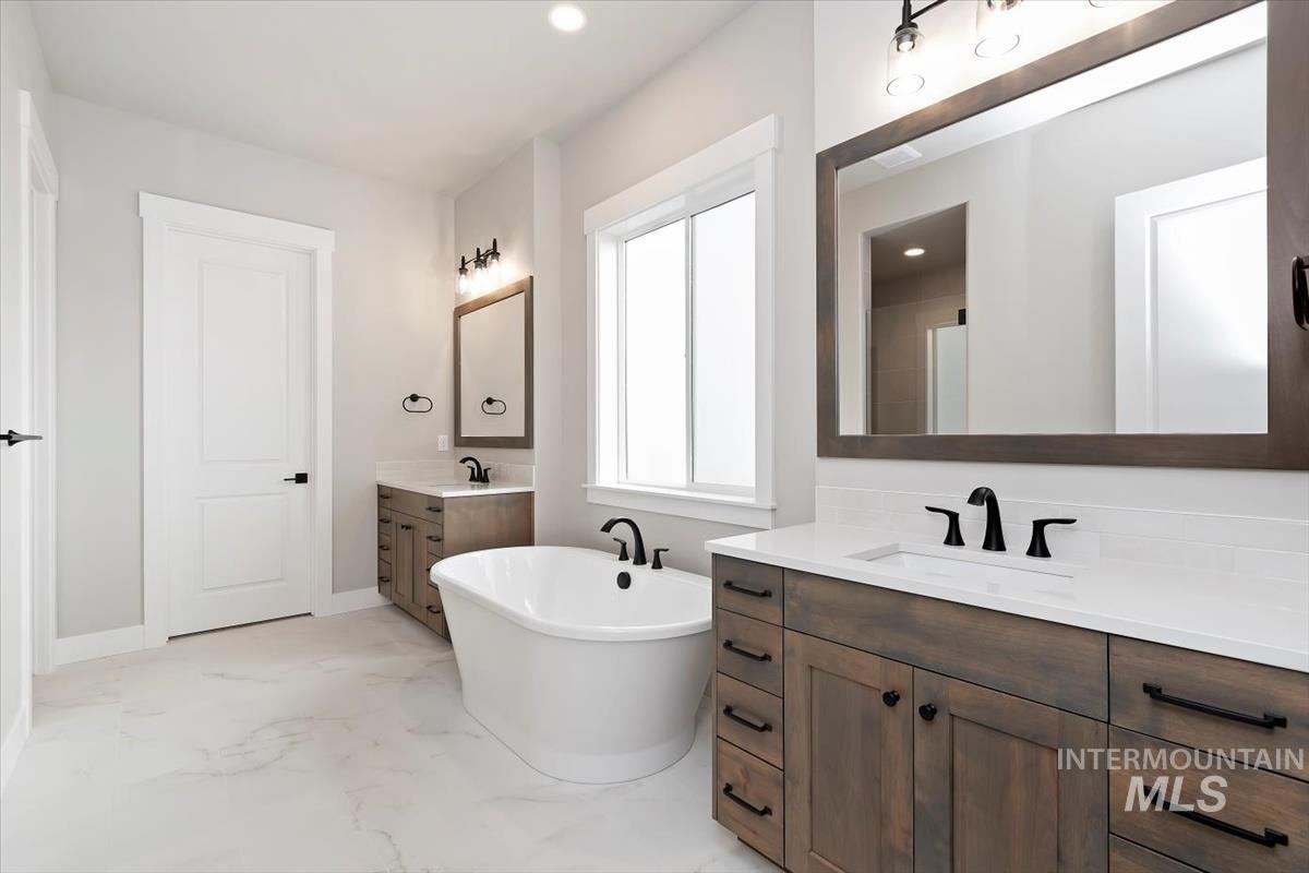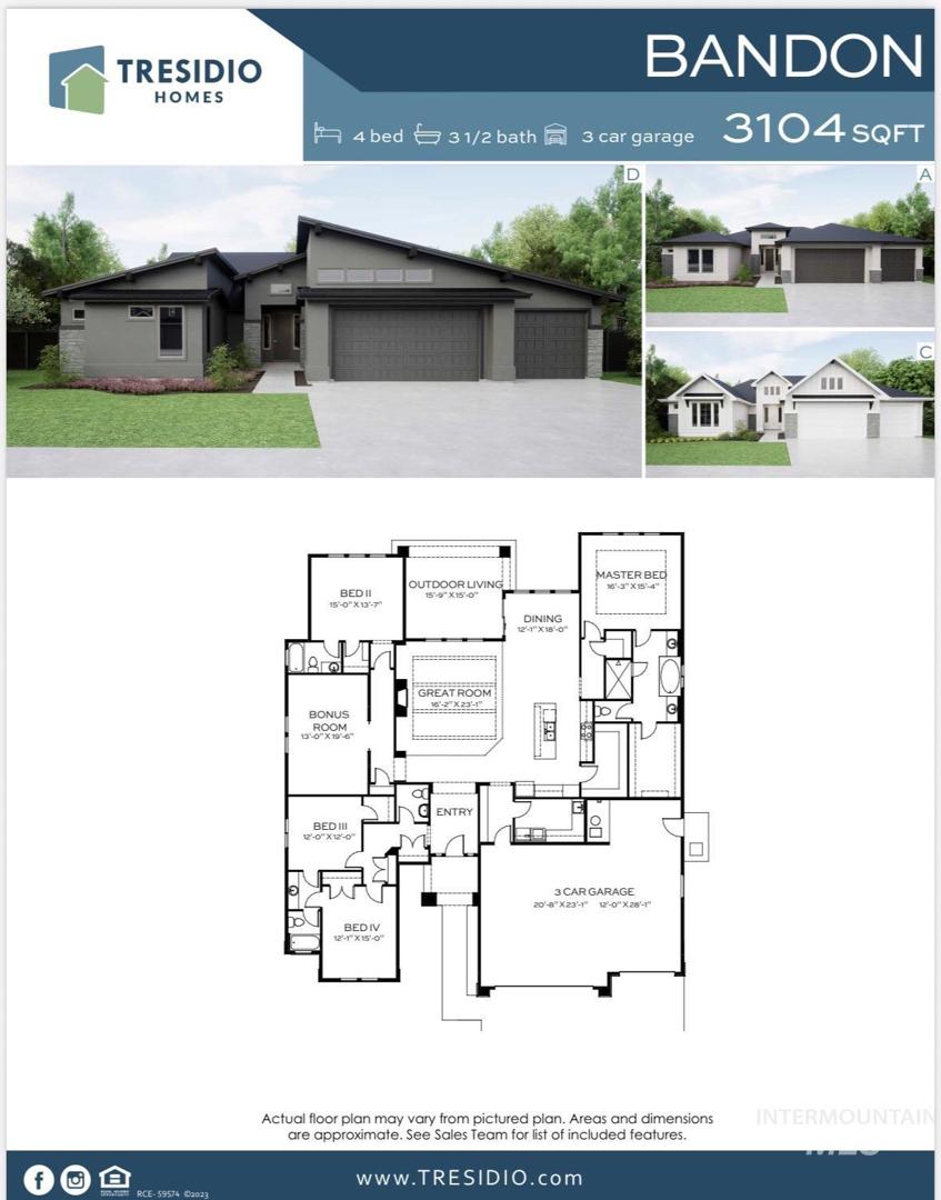 Introducing our newest single-story floor plan, The Bandon. Also featured in the 2025 Spring Parade of Homes. This home is spacious, stylish, and MOVE IN READY! Boasting 4 bedrooms, 3.5 baths, and 3,104 sq ft of thoughtfully designed living space, this home features a stunning fireplace, versatile bonus room, fully landscaped front and backyard, and a 3-car insulated garage. The open-concept design connects the gourmet kitchen, dining, and living areas, making it ideal for everyday living and entertaining. Retreat to the luxurious primary suite with a spa-inspired bath and generous walk-in closet. Secondary bedrooms offer privacy and comfort, with one bedroom featuring an en-suite bath—perfect for guests. 10` ceilings throughout, modern finishes, and abundant natural light elevate every room. Enjoy quiet moments or host gatherings with ease in this beautifully crafted home. Experience the perfect blend of function and luxury—your dream home is almost here! Selection Photos are Actual* BTVAI