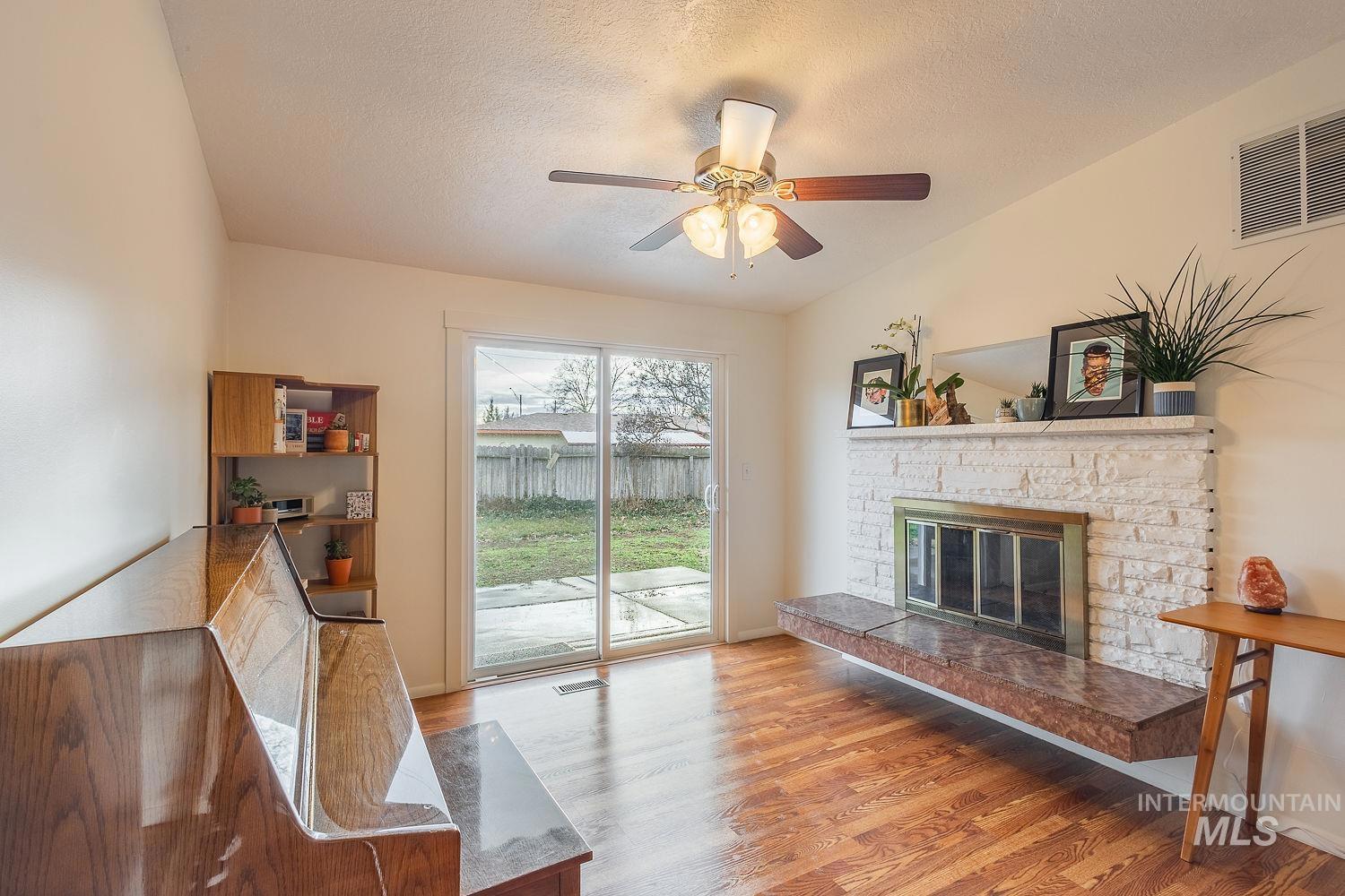 Back on market due to no fault of seller. All major systems have been updated! Must see! Priced to sell Tucked away on a quiet street in the heart of the vibrant Boise Bench, this inviting mid-century modern home offers comfort, character, and convenience in one beautifully maintained package. The spacious living and dining areas are anchored by a striking two-sided wood-burning fireplace, creating a warm focal point while large windows frame views of the private backyard and fill the home with natural light. Featuring three bedrooms, 1..5 baths, wood floors throughout, and fresh interior paint, this home has been thoughtfully cared for with a newer roof and updated systems—truly move-in ready. Enjoy the ease of an attached one-car garage with direct access into the home, adding both convenience and functionality. Ideally located within walking distance to Borah High School, the neighborhood pool, parks, and local shops, and just minutes from the mall, freeway access, and downtown Boise, this home blends neighborhood charm with unbeatable accessibility. A rare find at this price point, it’s sure to impress even the most discerning buyers. Additional parking on side for all your toys or small RV!