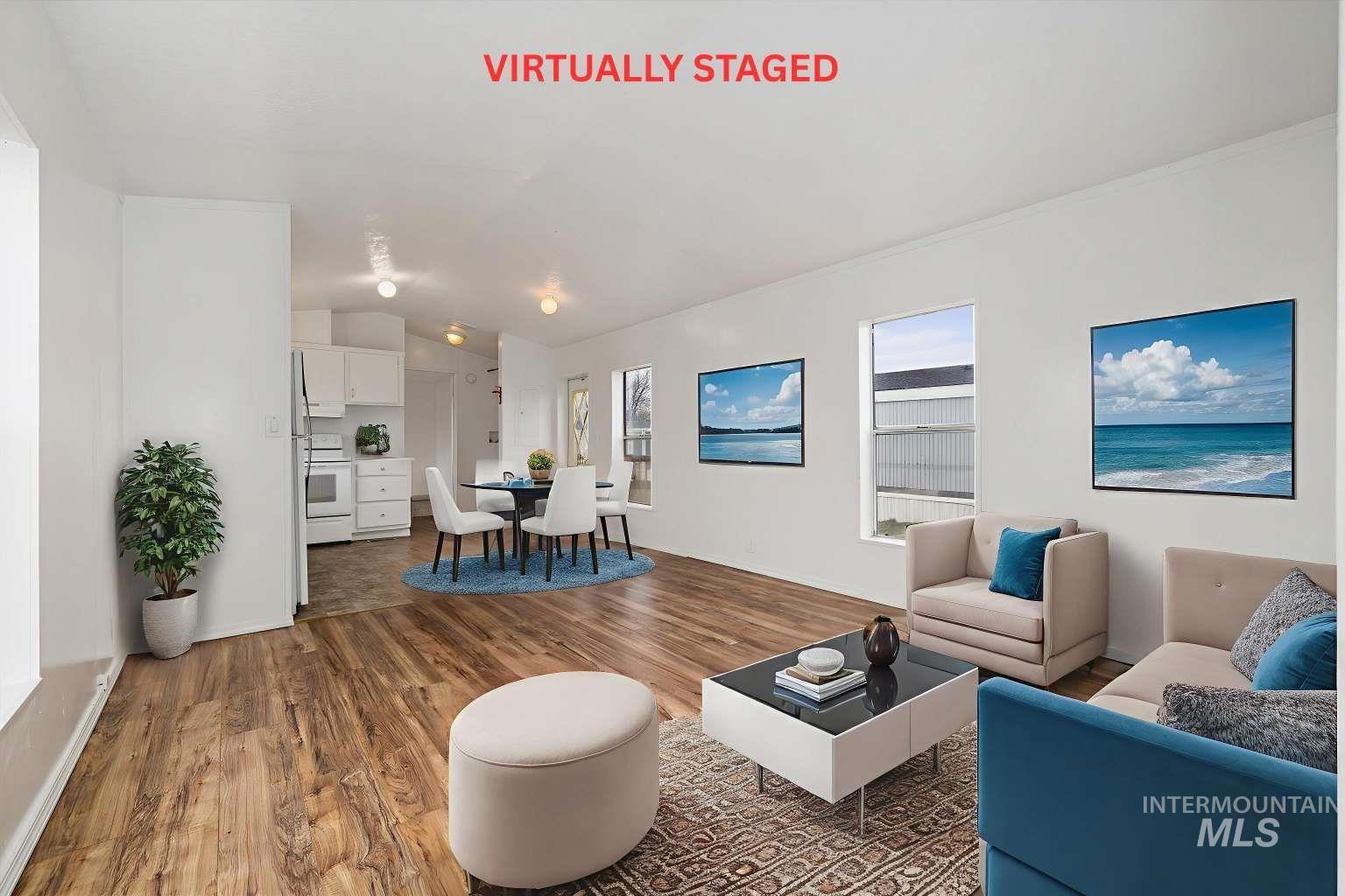 GREAT VALUE! Discover this well-maintained 3-bedroom, 2-bathroom home located in the heart of Mountain Home, Idaho. Priced at just $57,999, this 924 sq. ft. residence offers an incredible opportunity for anyone seeking affordable housing or a smart investment property in Elmore County.HOME FEATURES:Cooling & Heating: Stay comfortable year-round with Central AC and efficient electric forced-air heat.Appliances: Fully equipped with a stove, dishwasher, and refrigerator included.Functional Layout: A spacious 3-bed/2-bath split floor plan provides privacy and convenience.LOCATION & UTILITIES: Situated at 235 W 9th South, this home offers easy access to local amenities. Monthly lot rent is $650.Don`t wait! Affordable homes in this condition are rare in today`s market.