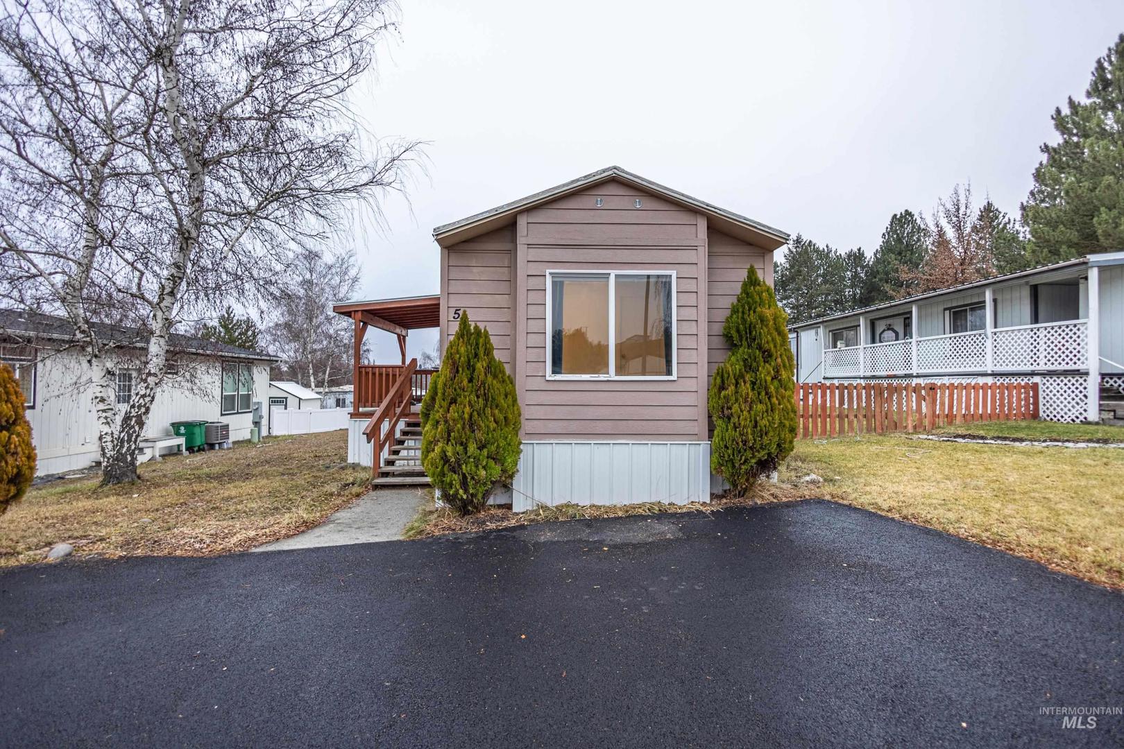 Here`s your opportunity to make a home your own! 3 bed, 2 bath, open living room space. Private primary bedroom with en suite bathroom. Washer & dryer conveniently located with storage. Newly painted kitchen cabinets & back bedroom. New siding & exterior paint & deck 2020. Refrigerator 2025. Furnace serviced summer 2025. Well maintained MH Park within walking distance to shopping. Two storage sheds and off-street parking included!
