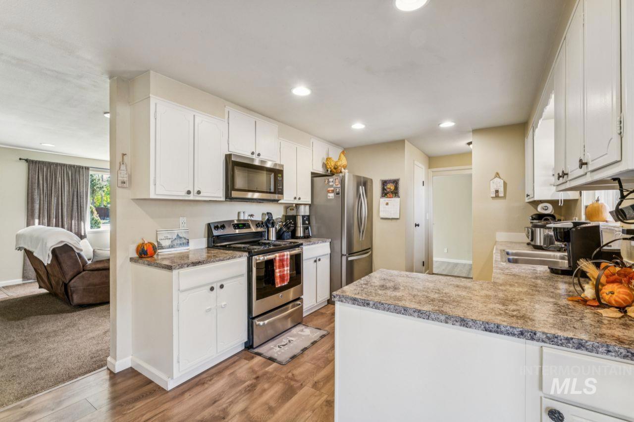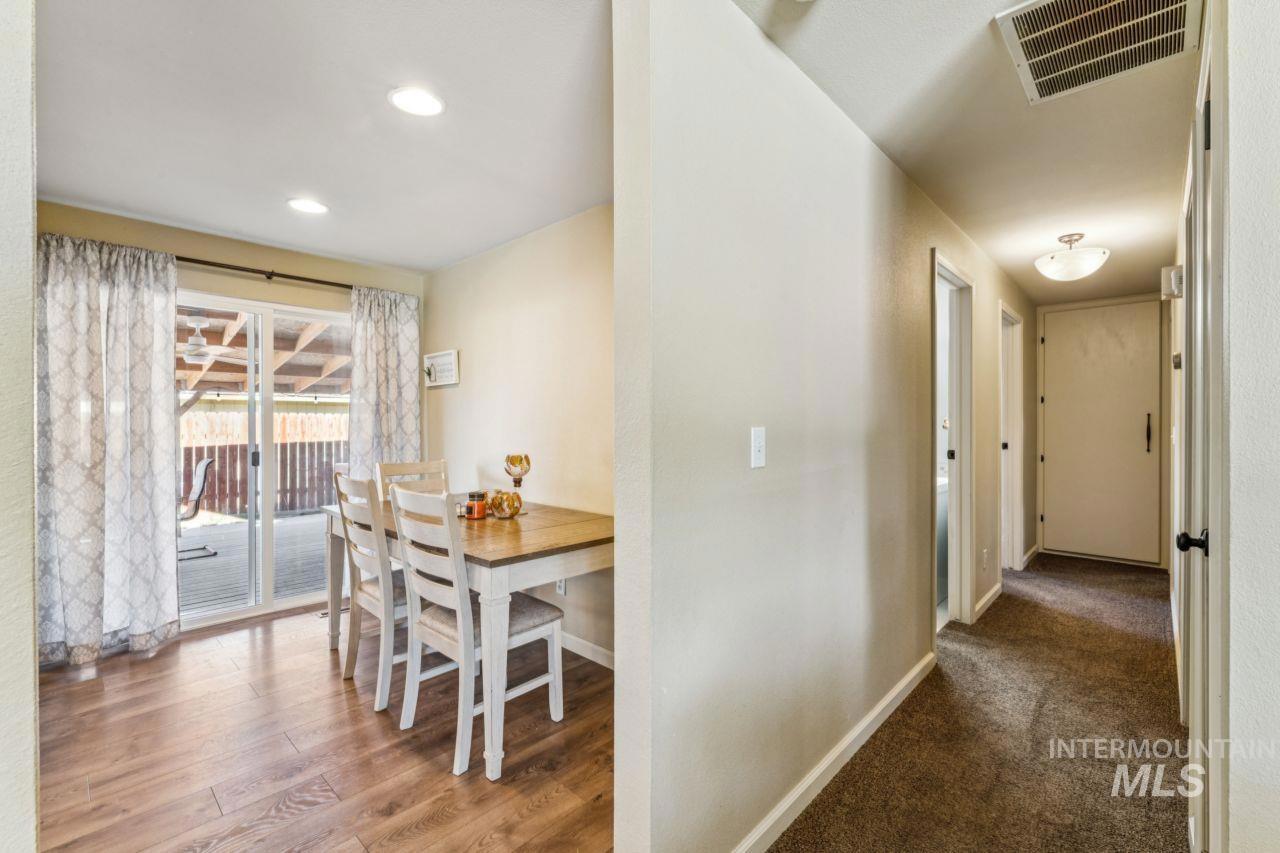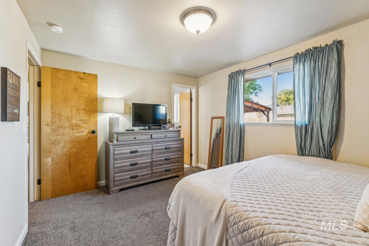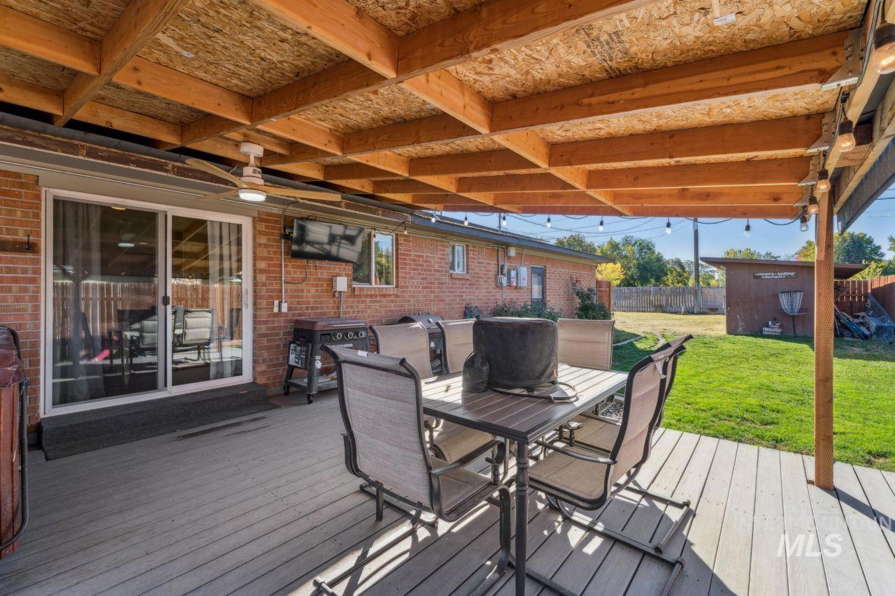 Welcome to Indiana Avenue. This charming brick home sits on a spacious corner lot in Caldwell, only a 5 minute drive from Indian Creek Plaza. Step inside this beautiful home to find that it features 3 bedrooms, 2 full bathrooms, and a versatile flex space that has potential to be used for an exercise space, dog area (it even has a built in dog door), or extra storage space. This home has a wood burning fireplace in the living room, for a cozy winter! Updated kitchen with white cabinetry. Updated bathroom tile. No HOA, attached chicken coop space. Access to back and side yards, for potential RV parking space, fully fenced backyard which provides plenty of outdoor space. A covered patio with brand new trex decking! Solar panels on the home are paid off. Come see this beautiful home in person! Call or text to schedule a showing.