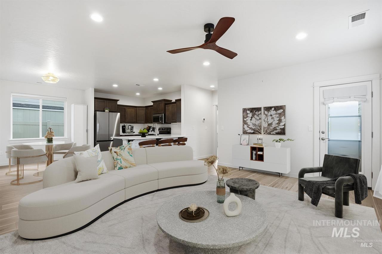 Welcome home to this like-new, completely turnkey property with quick and convenient access to I-84, making commuting and travel a breeze. Meridian’s best restaurants and shopping are minutes away, ensuring you’l never be too far away from last-minute groceries or your latest retail therapy fix. Thoughtfully designed and exceptionally well cared for, this home is truly move-in ready—fridge, washer, and dryer included for added convenience. The master bedroom is located on the main floor and features an ensuite bathroom with dual vanities and a walk-in shower, offering comfort and privacy. A convenient half bath on the main level is perfect for guests. Upstairs, you’l find two additional spacious bedrooms, a full bathroom, and a loft area ideal for a home office, playroom, or bonus room. The upgraded garage provides plenty of room for vehicles, gear, and storage. Please text owner for showing request: 208-908-97one9. Do not requests showings from listing agent. Dog negotiable with pet rent and fee.| Listing info for this property courtesy of Keller Williams Realty Boise Information deemed reliable but not guaranteed. Buyer to verify all information. All properties are subject to prior sale, change or withdrawal. Neither listing broker(s), shall be responsible for any typographical errors, misinformation, misprints and shall be held totally harmless. |