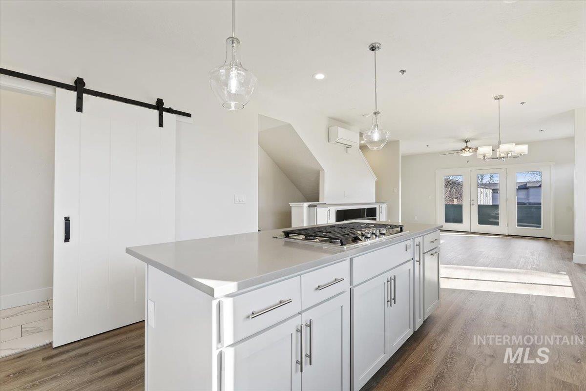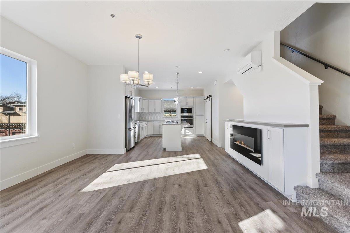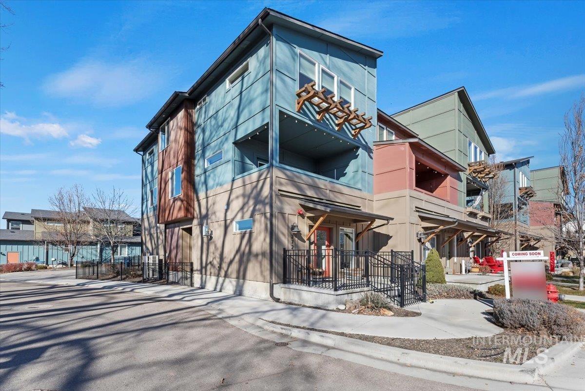 LOCATION, LOCATION, LOCATION. This is just minutes from the greenbelt, the river, downtown Boise, and the infamous LIVE/WORK DISTRICT! This versatile three-story townhome offers a rare and flexible layout designed for modern living. The main level features a fully self-contained office or guest suite with its own living space, two rooms, and a brand-new bathroom—ideal for a private work-from-home setup, multi-generational living, or an income-producing rental completely separate from the main home. The 2ND level is the heart of the home, showcasing an open-concept living room with a cozy fireplace, dining area, and beautifully appointed kitchen. The kitchen features quartz countertops, a large center island with cooktop, brand-new oven, built-in microwave, and ample cabinetry—perfect for entertaining. A convenient half bath and deck complete this level. Upstairs on the 3RD floor, you’ll find a spacious primary suite, a second bedroom with a connecting bathroom, and a generous bonus room offering endless possibilities. The laundry room is also conveniently located on this level. Fresh paint throughout, new flooring on the first and second levels, a commercial-grade sprinkler system for added safety, and energy-efficient mini-split systems in the living spaces make this home truly move-in ready. A unique opportunity combining flexibility, efficiency, and modern comfort.