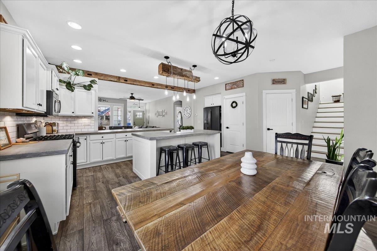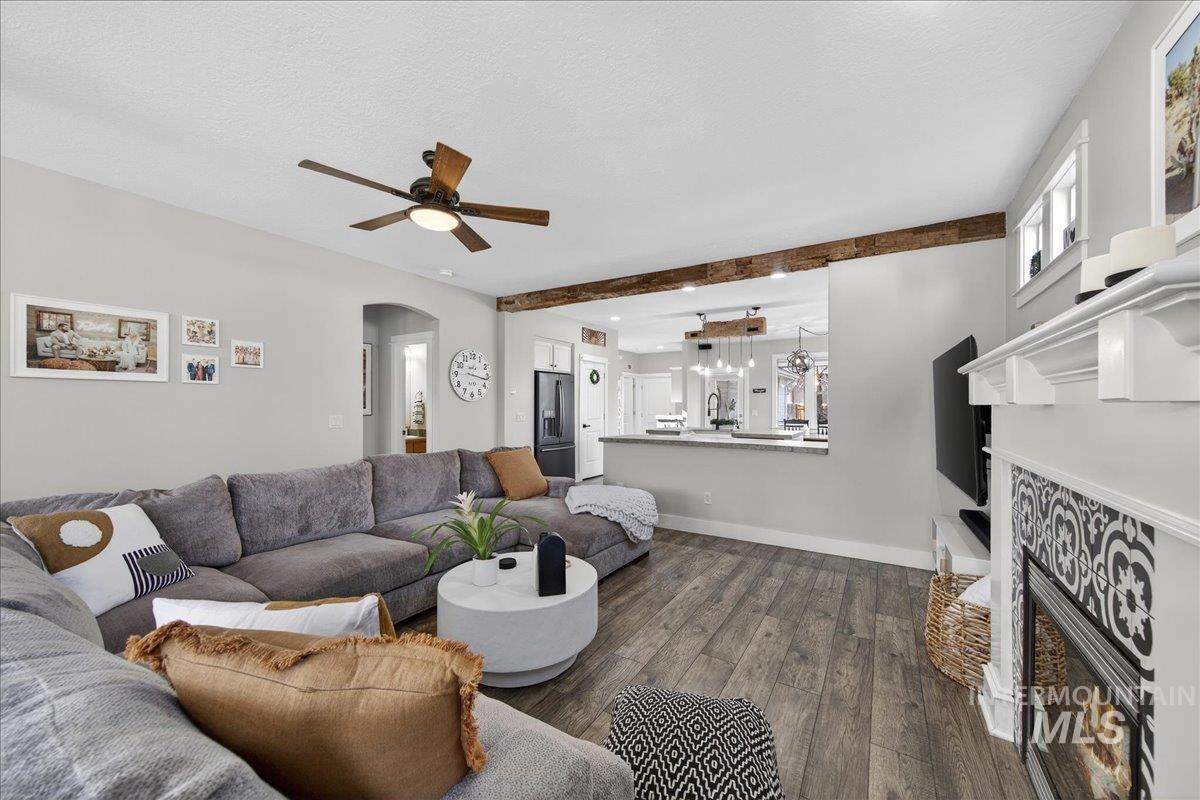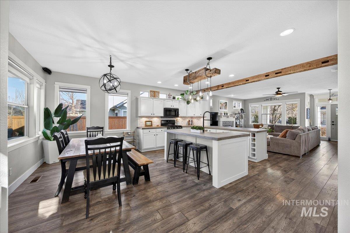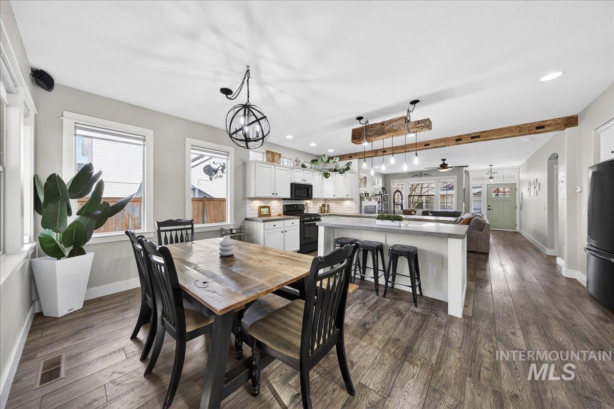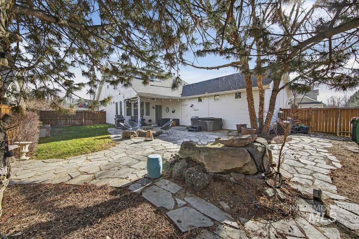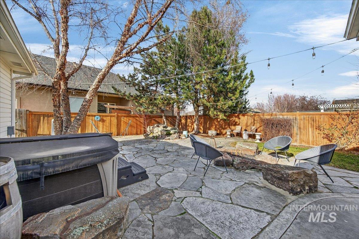 Welcome to this beautifully maintained home situated on a large corner lot in the desirable Heritage Commons subdivision in Meridian! Featuring 3 bedrooms, 2.5 bathrooms, and a layout designed for both comfort and functionality, this home offers the perfect blend of updated style and everyday livability. Step inside to enjoy updated flooring throughout the main living areas, creating a fresh, modern feel from the moment you walk in. The updated kitchen is the heart of the home with contemporary finishes, great workspace, and a layout that flows seamlessly into the dining and living areas—ideal for entertaining or relaxing nights in. The primary suite is conveniently located on the main level, offering a true retreat complete with an updated primary bathroom that adds a clean, elevated touch you’ll appreciate daily. Upstairs, you’ll find additional spacious bedrooms filled with natural light and generous closet space, giving everyone room to spread out. Step outside to your private backyard oasis where a peaceful water feature sets the tone for quiet mornings and relaxing evenings, and a gas fire pit creates the perfect space to gather with friends, roast s’mores, or unwind under the stars. Conveniently located near shopping, dining, parks, and all that Meridian has to offer—this one is a must-see!