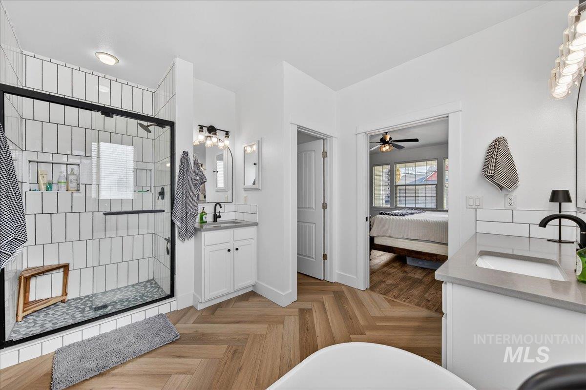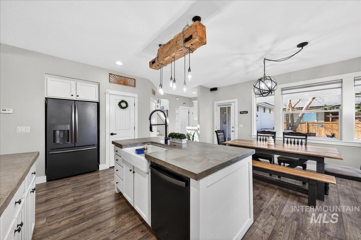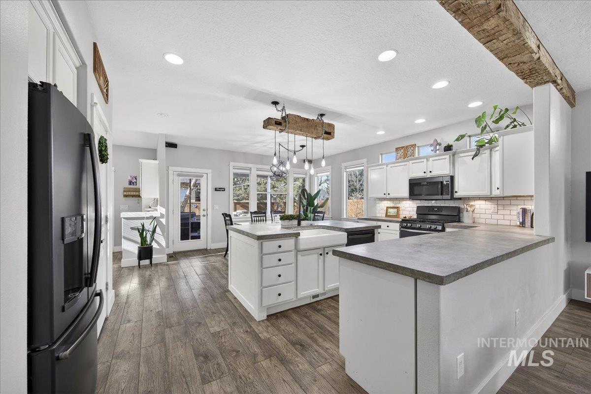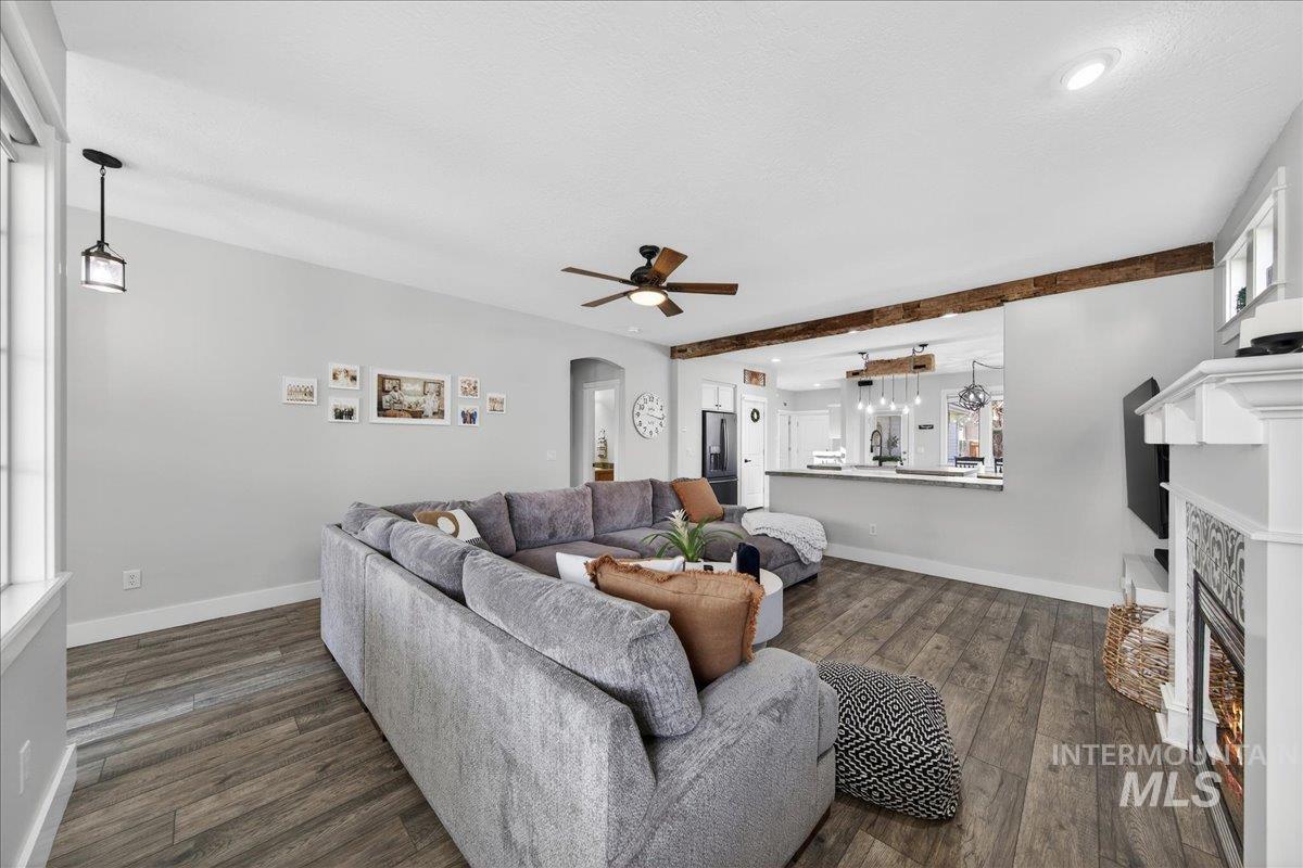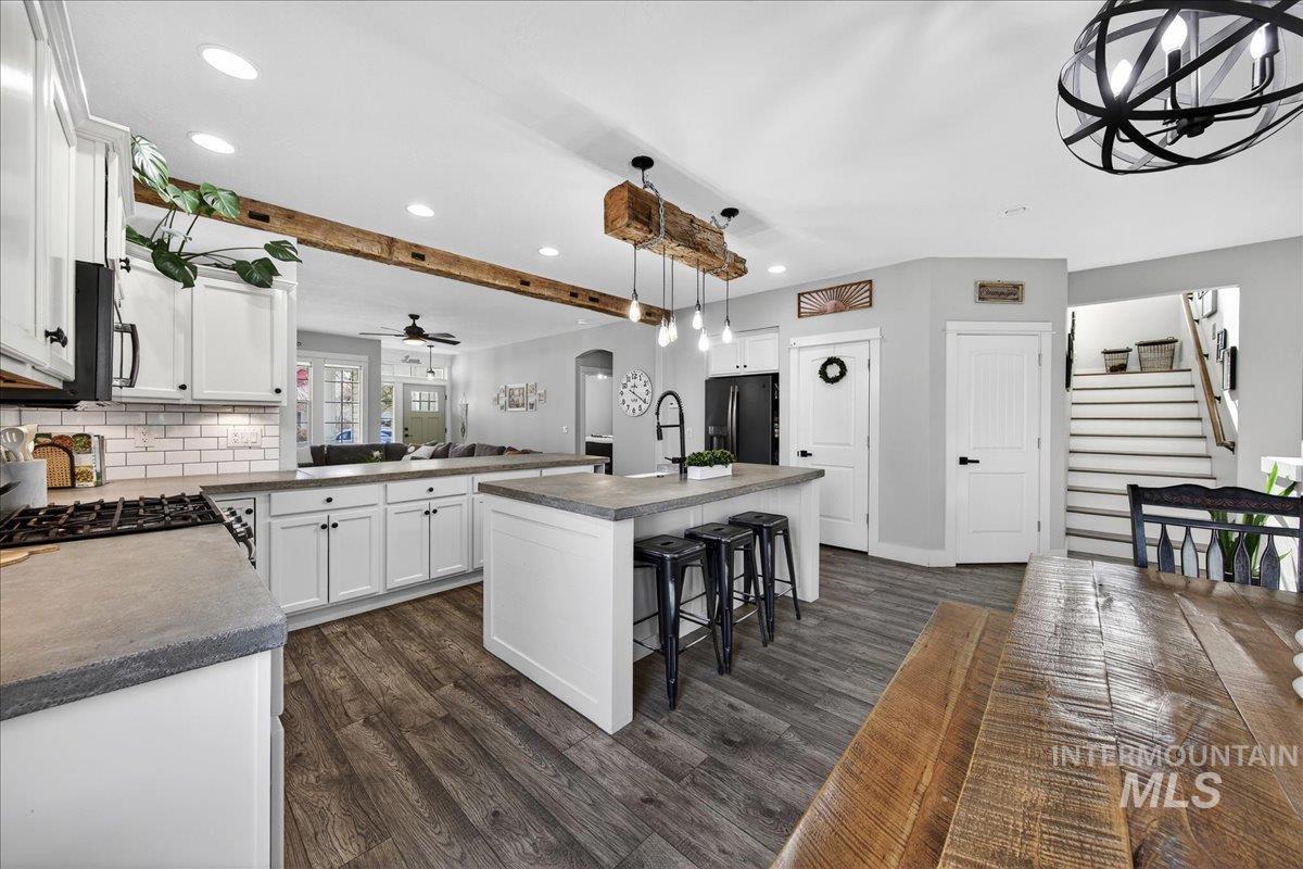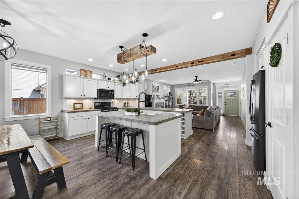 Welcome to this beautifully maintained home situated on a large corner lot in the desirable Heritage Commons subdivision in Meridian! Featuring 3 bedrooms, 2.5 bathrooms, and a layout designed for both comfort and functionality, this home offers the perfect blend of updated style and everyday livability. Step inside to enjoy updated flooring throughout the main living areas, creating a fresh, modern feel from the moment you walk in. The updated kitchen is the heart of the home with contemporary finishes, great workspace, and a layout that flows seamlessly into the dining and living areas—ideal for entertaining or relaxing nights in. The primary suite is conveniently located on the main level, offering a true retreat complete with an updated primary bathroom that adds a clean, elevated touch you’ll appreciate daily. Upstairs, you’ll find additional spacious bedrooms filled with natural light and generous closet space, giving everyone room to spread out. Step outside to your private backyard oasis where a peaceful water feature sets the tone for quiet mornings and relaxing evenings, and a gas fire pit creates the perfect space to gather with friends, roast s’mores, or unwind under the stars. Conveniently located near shopping, dining, parks, and all that Meridian has to offer—this one is a must-see!